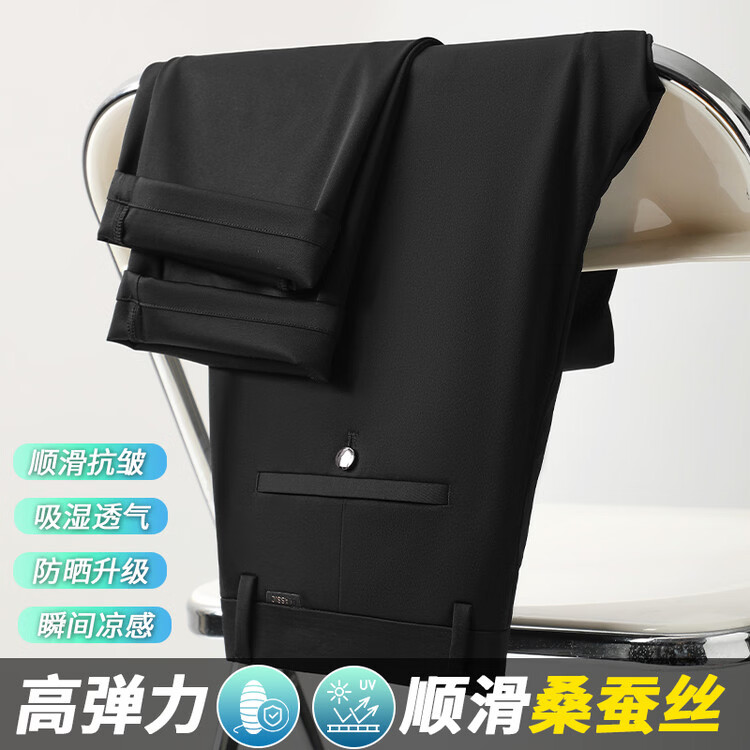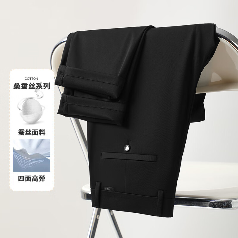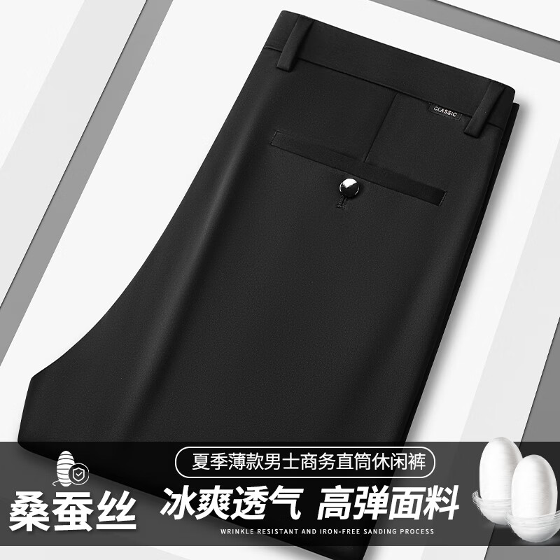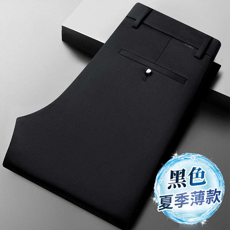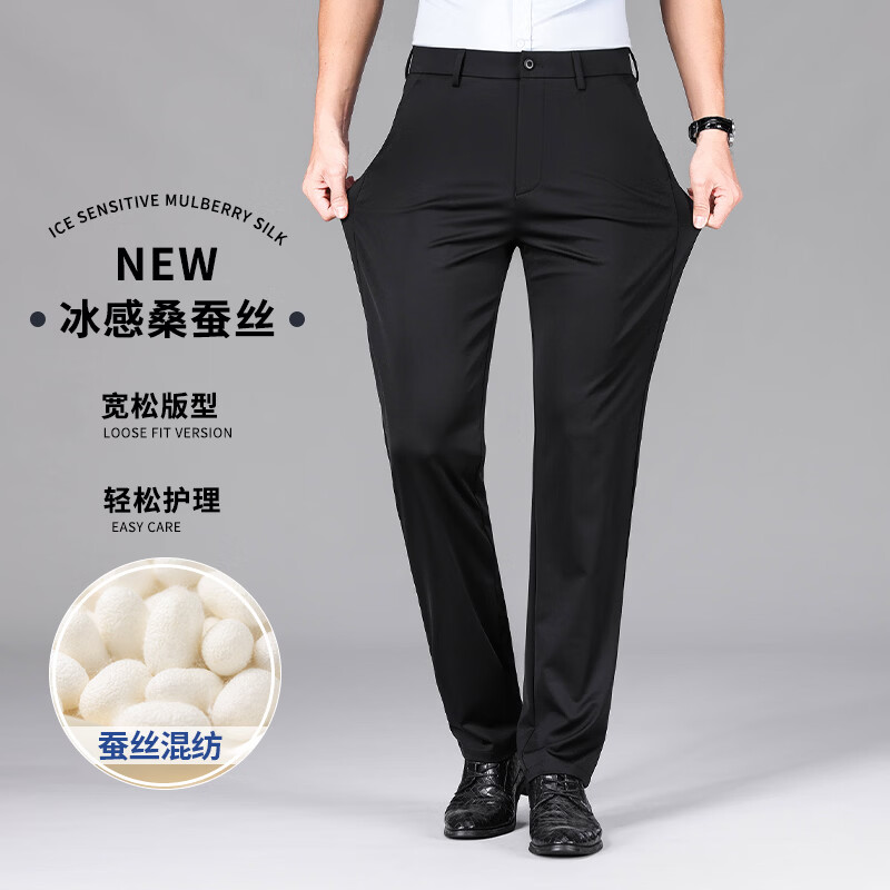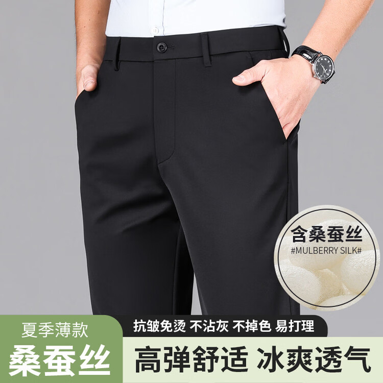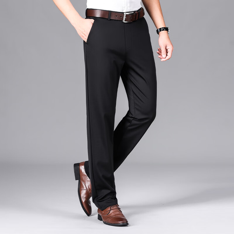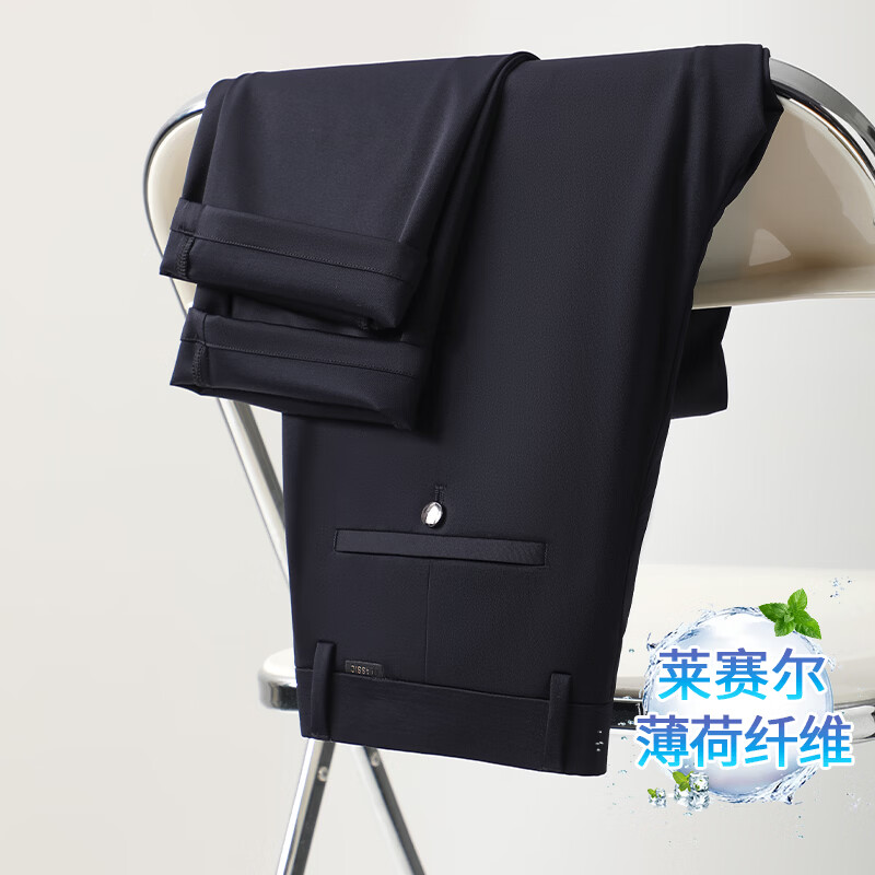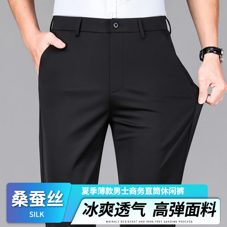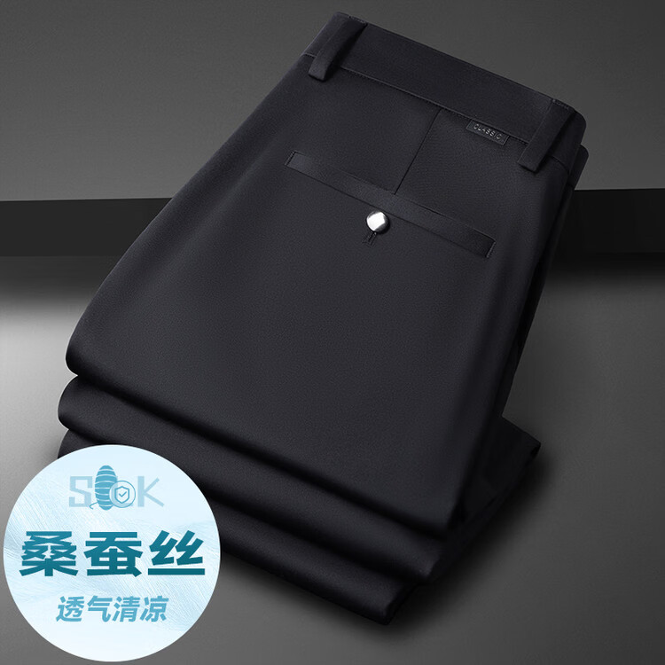九牧王(JOEONE)2026年春夏新款男士高弹冰丝商务休闲西裤舒适透气百搭长裤 黑色 40