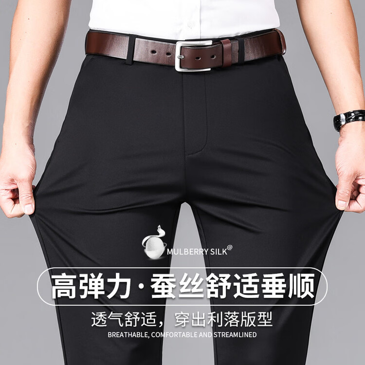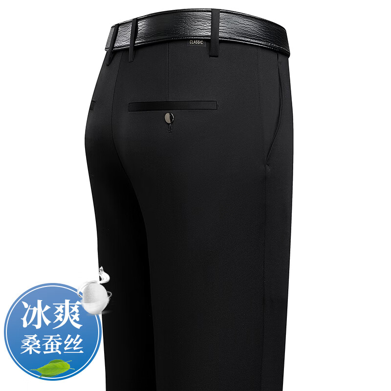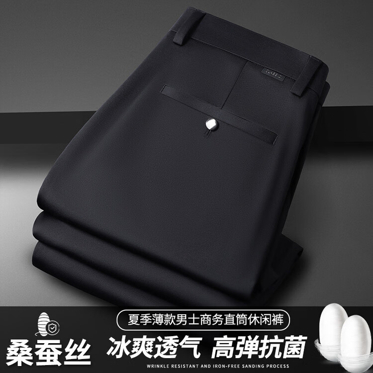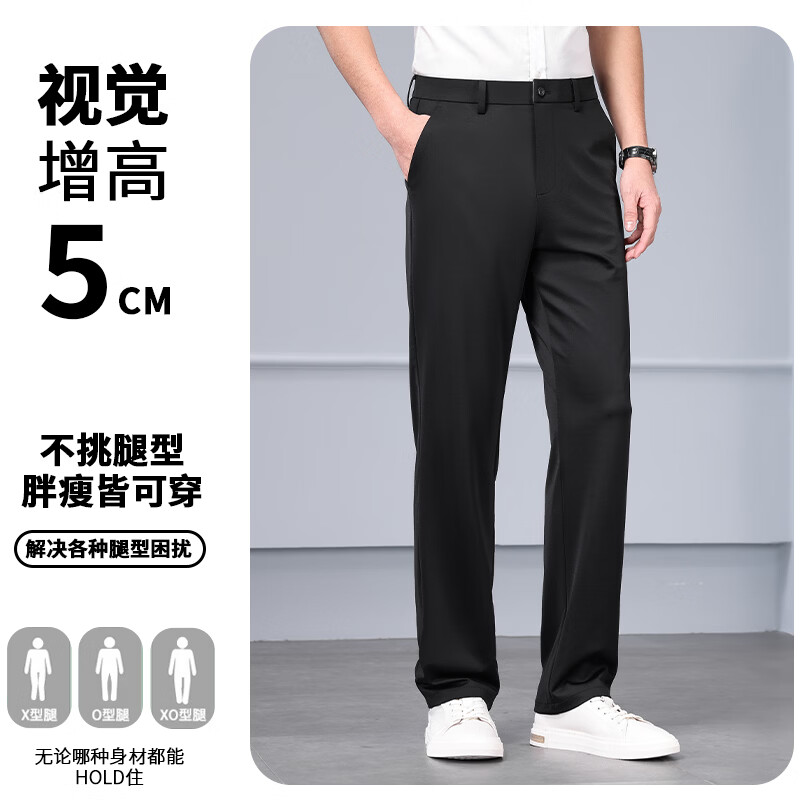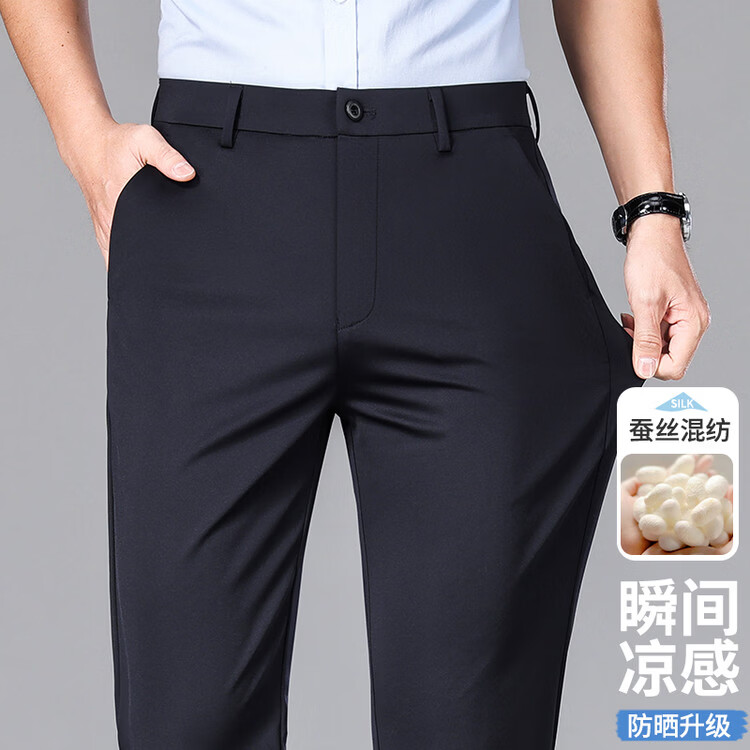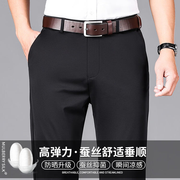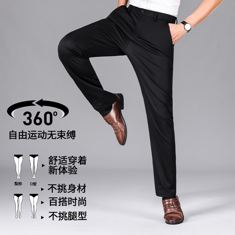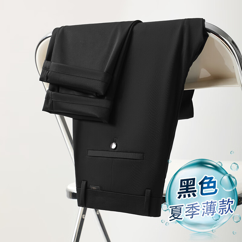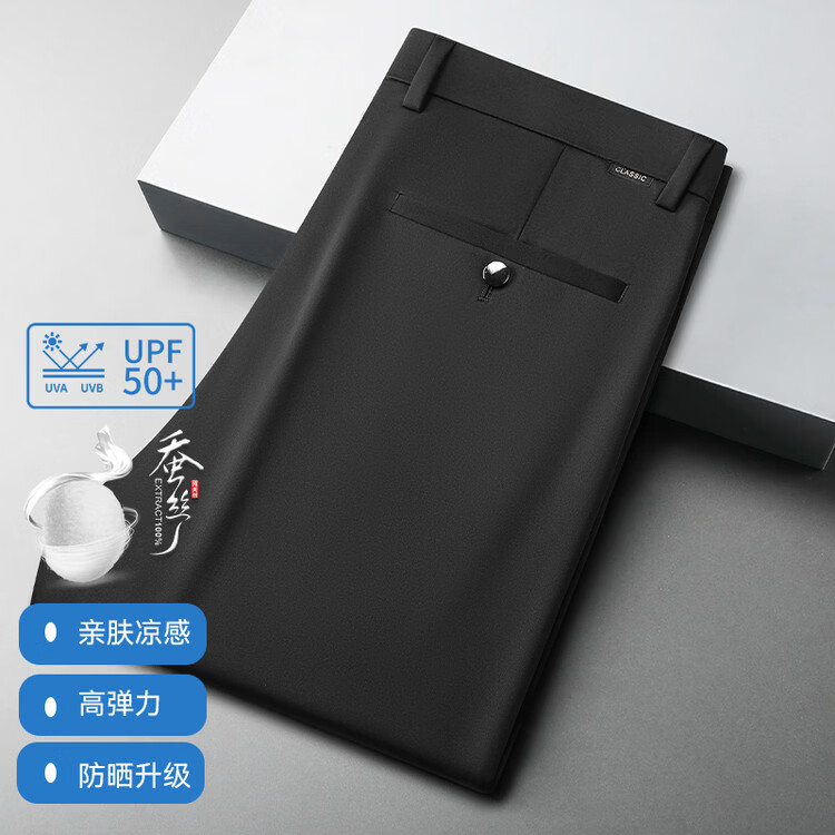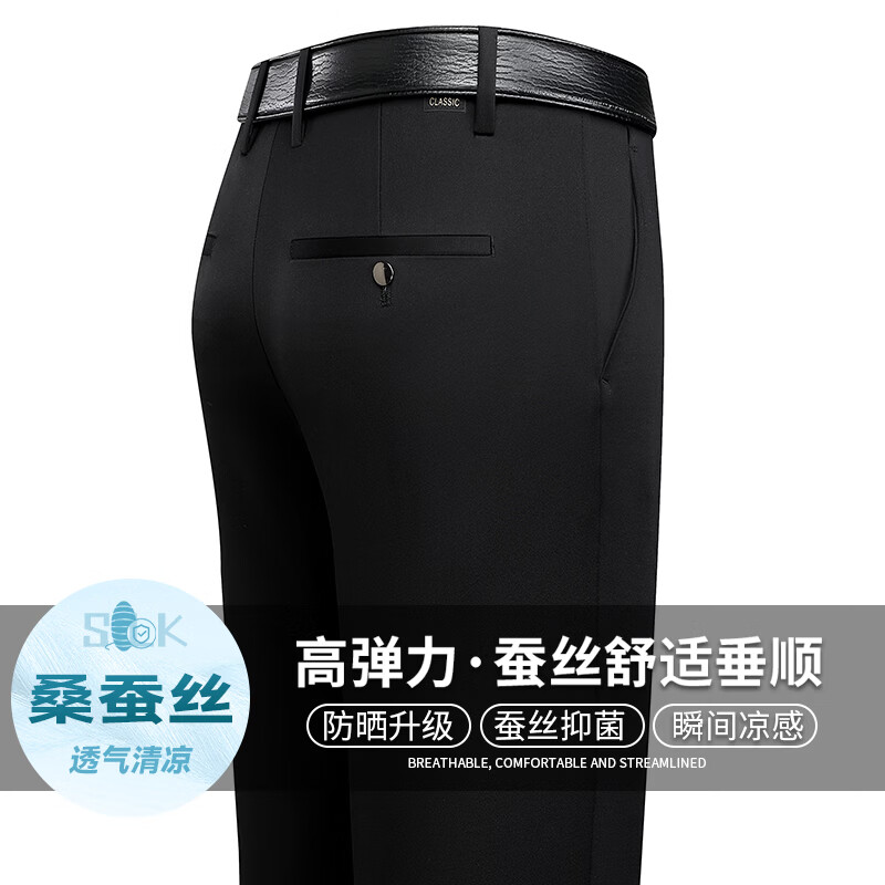 九牧王(JOEONE)2026年春夏新款男士高弹冰丝商务休闲西裤舒适透气百搭长裤 黑色 40