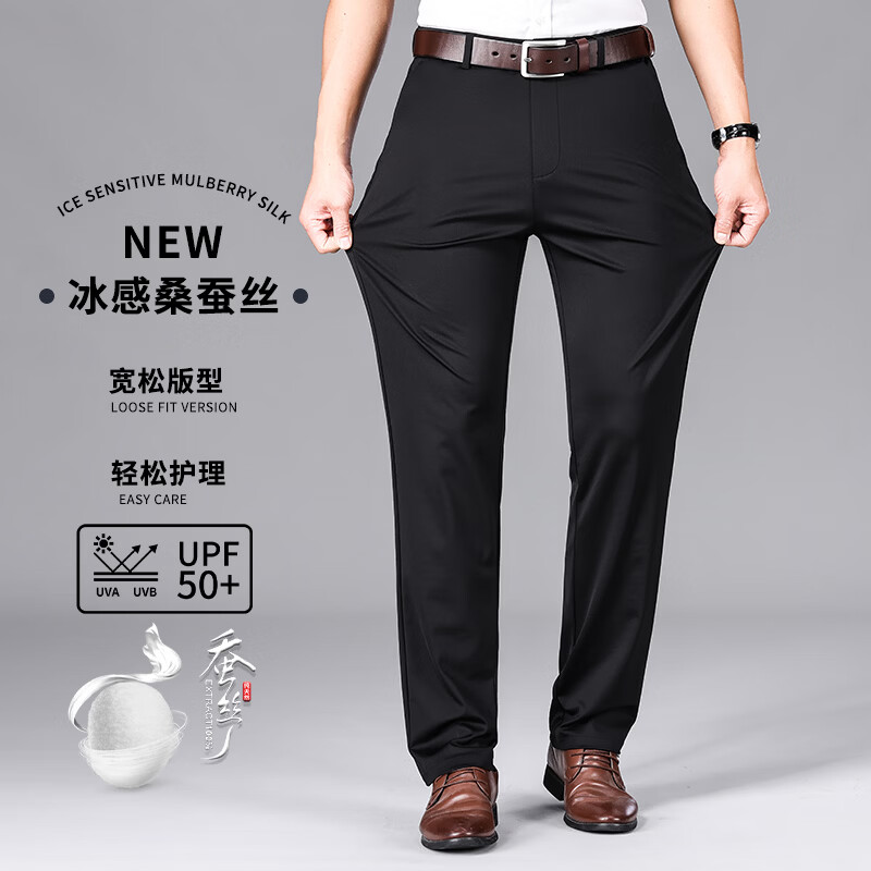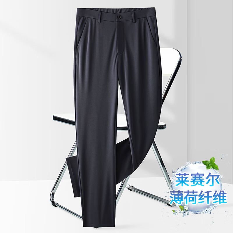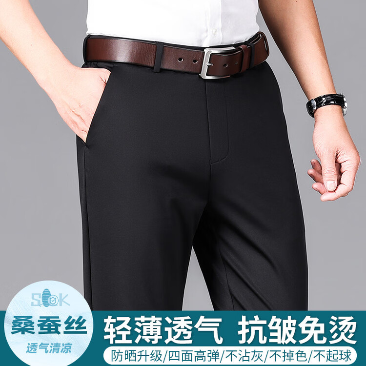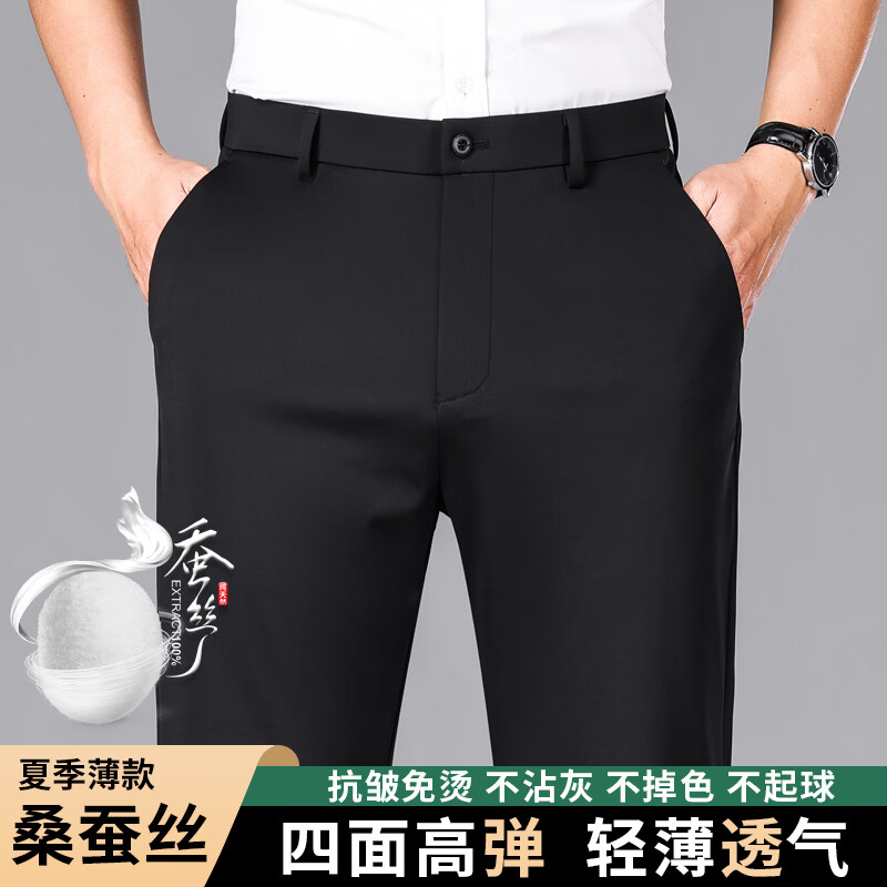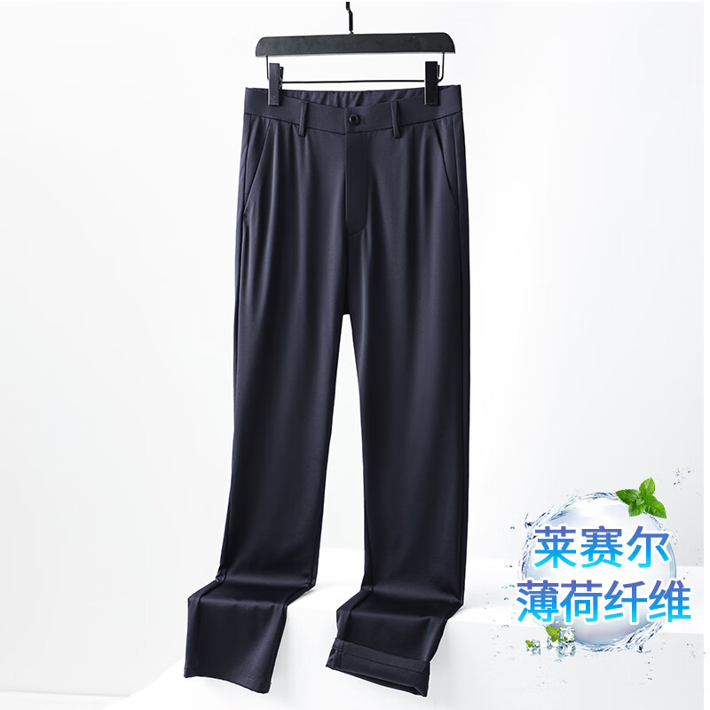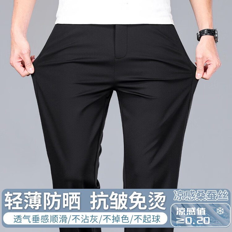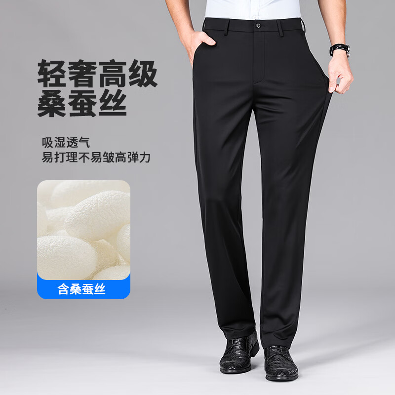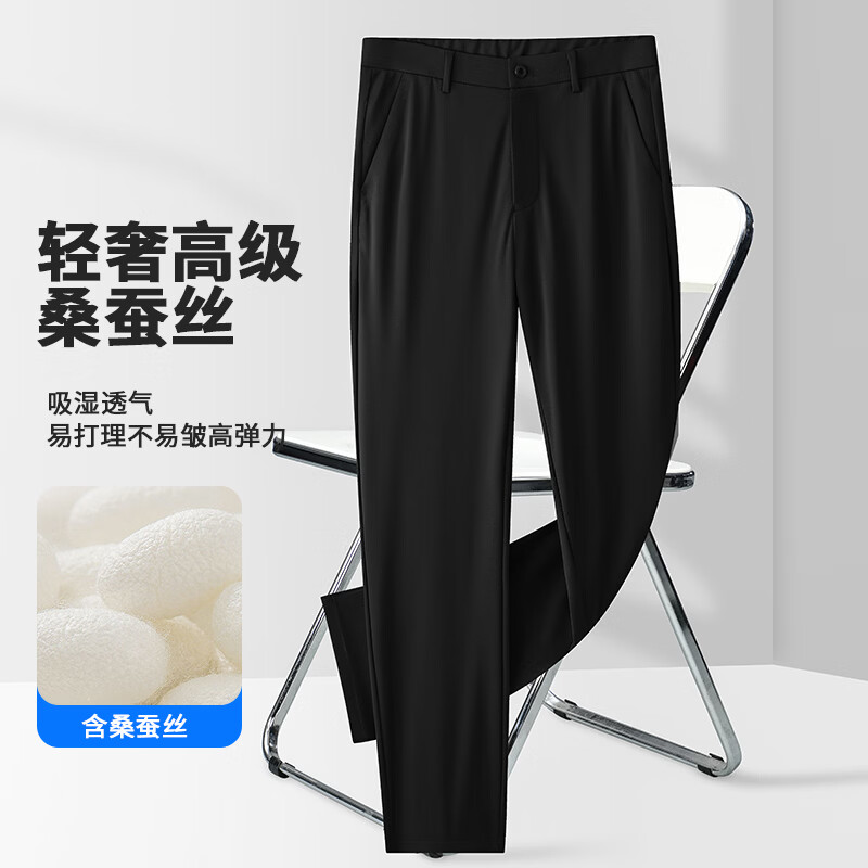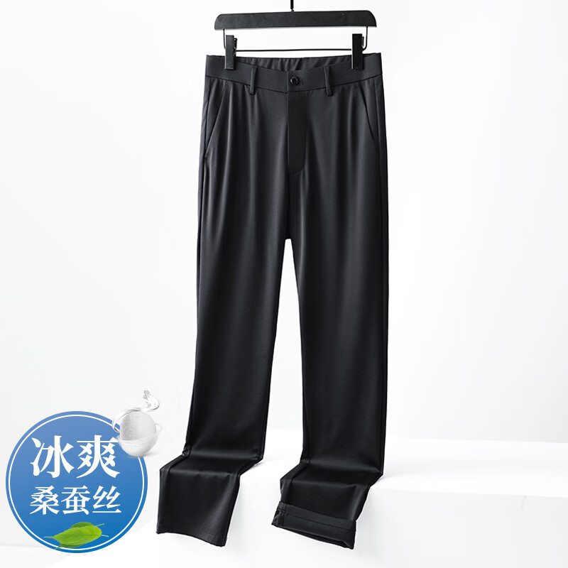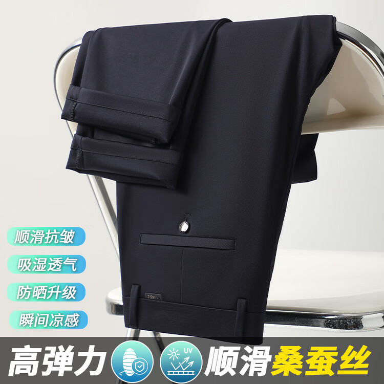 九牧王(JOEONE)2026年春夏新款男士高弹冰丝商务休闲西裤舒适透气百搭长裤 黑色 40