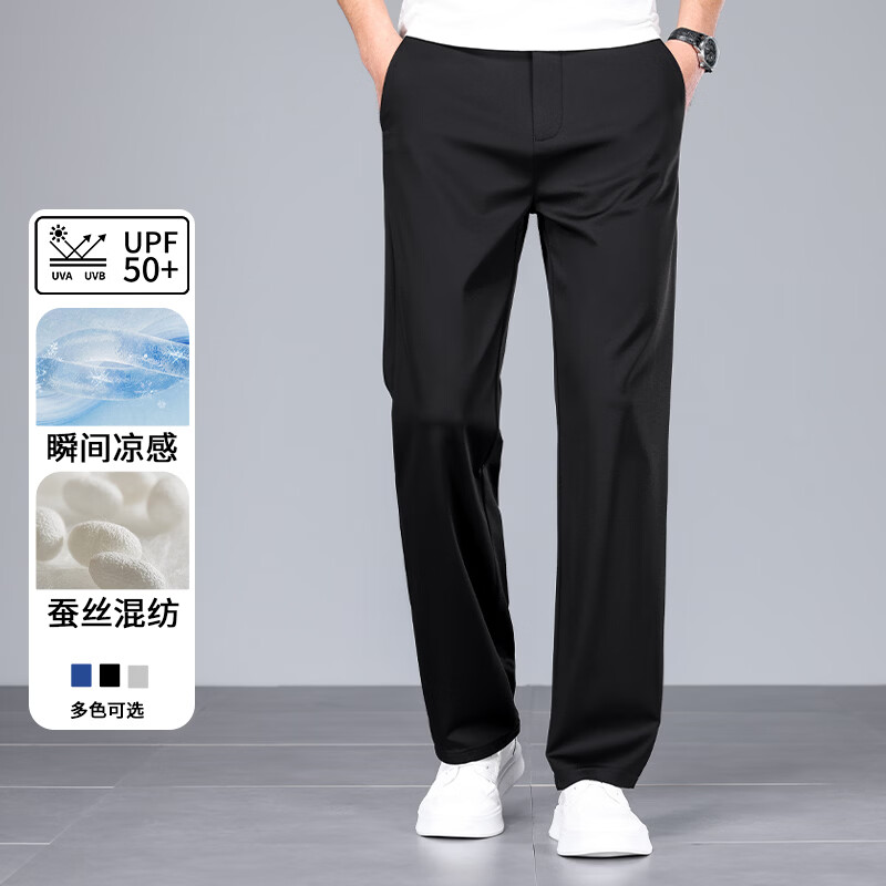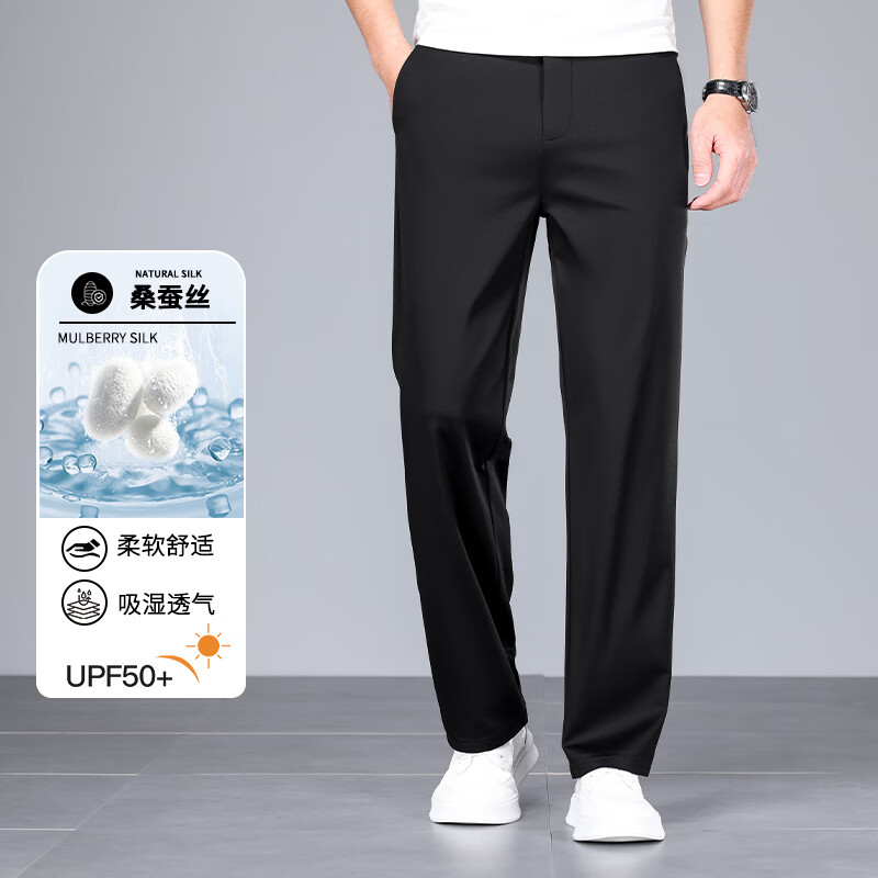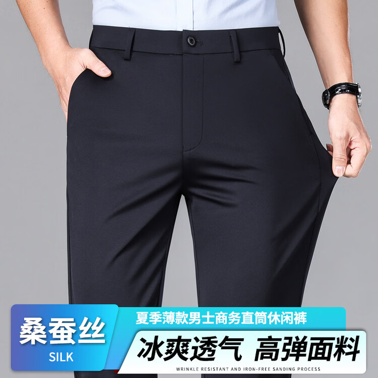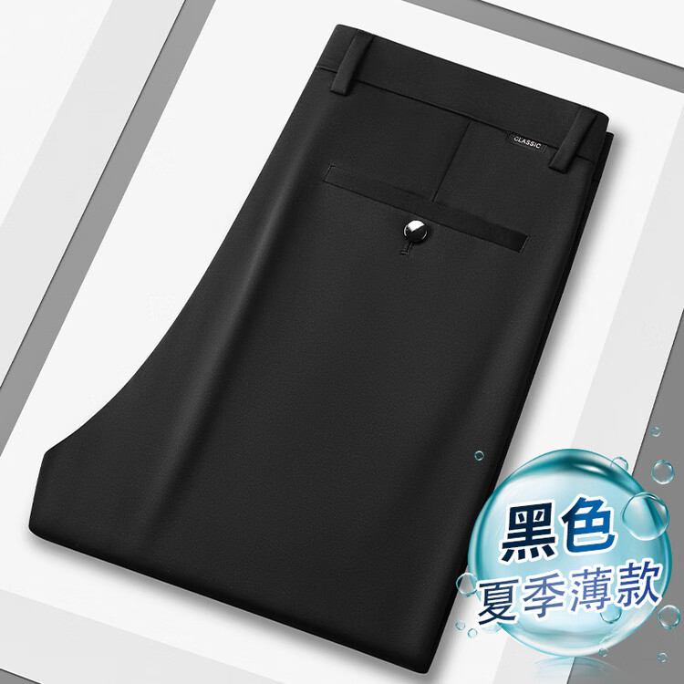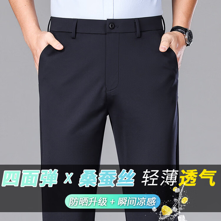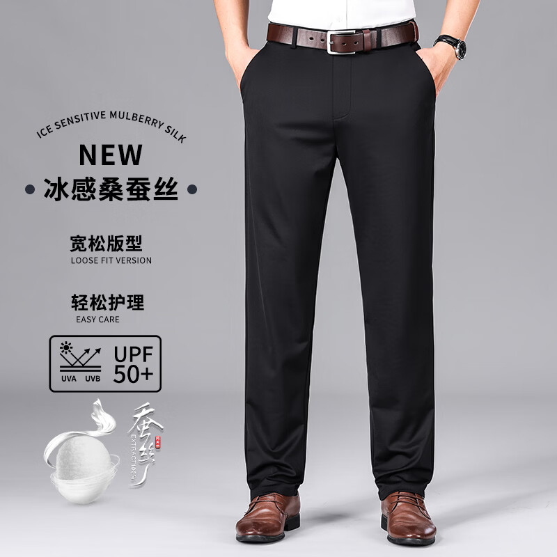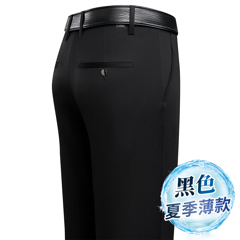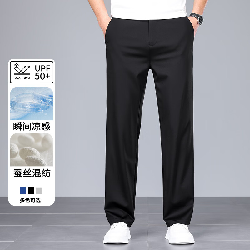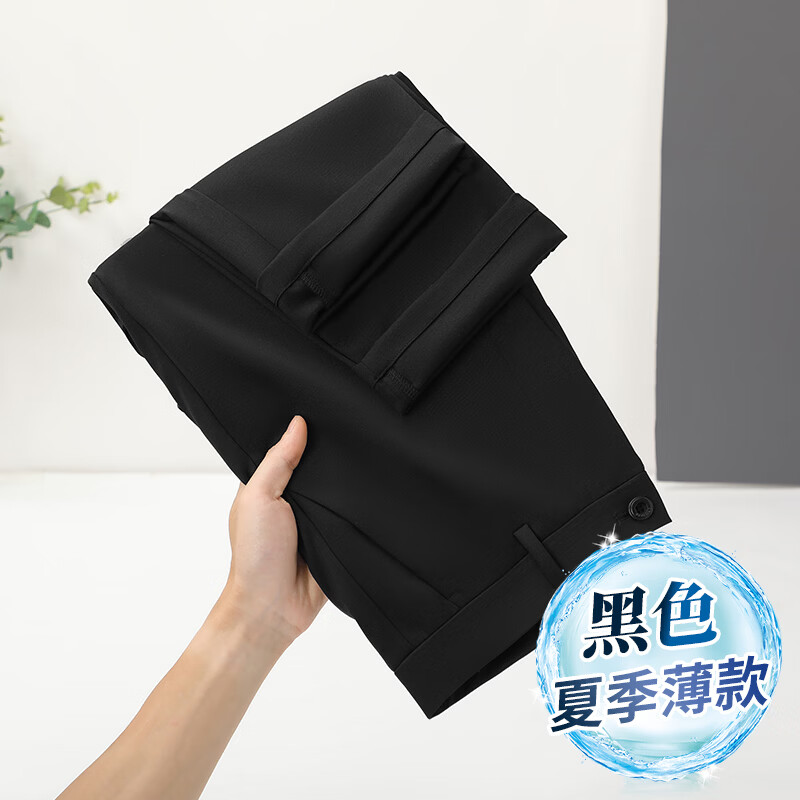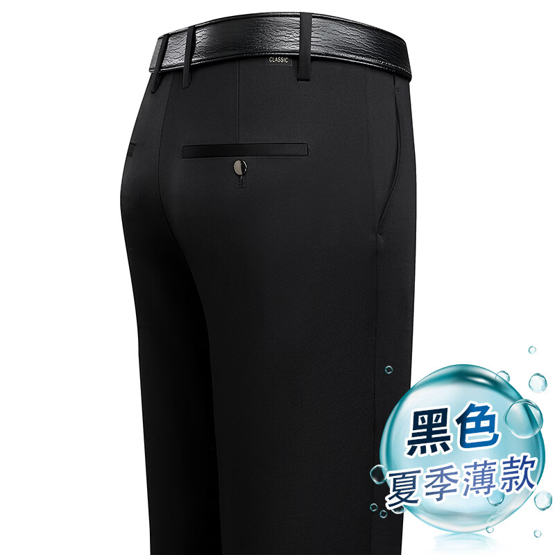 九牧王(JOEONE)2026年春夏新款男士高弹冰丝商务休闲西裤舒适透气百搭长裤 黑色 40