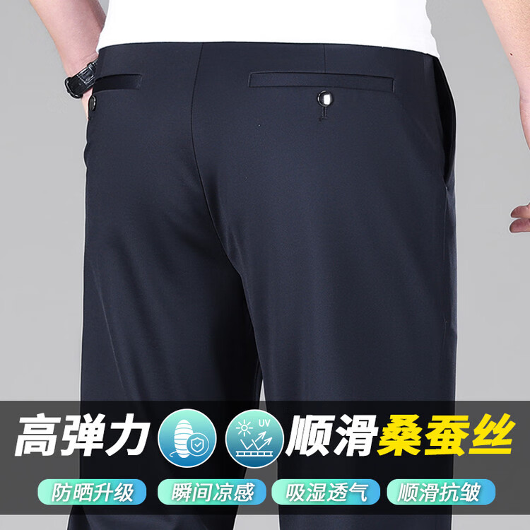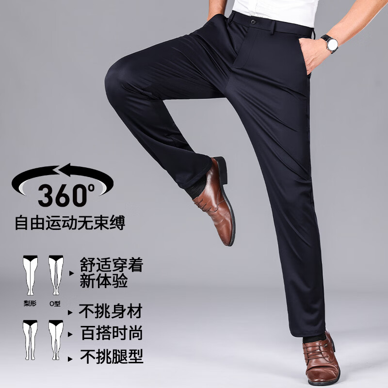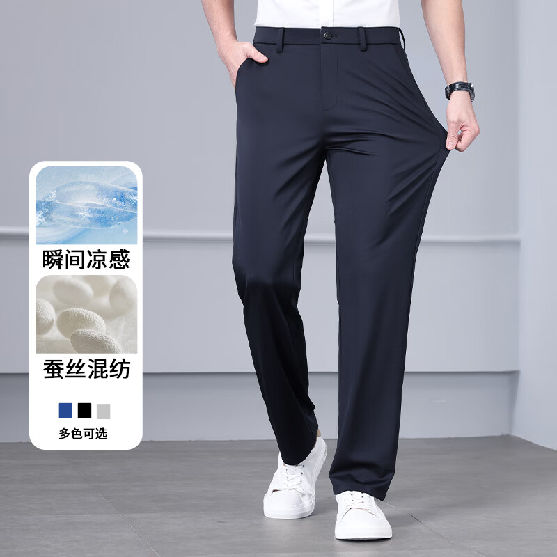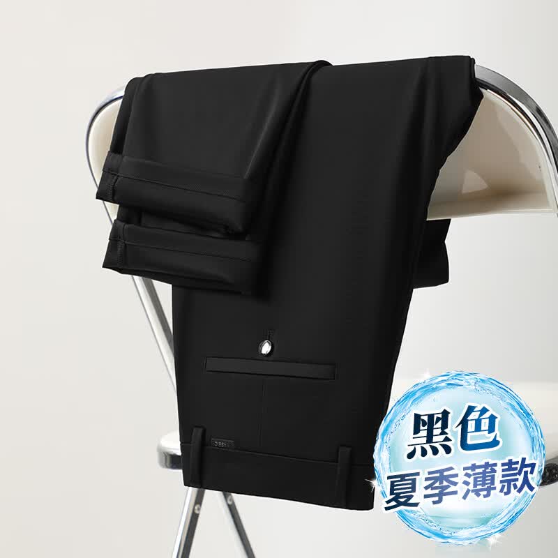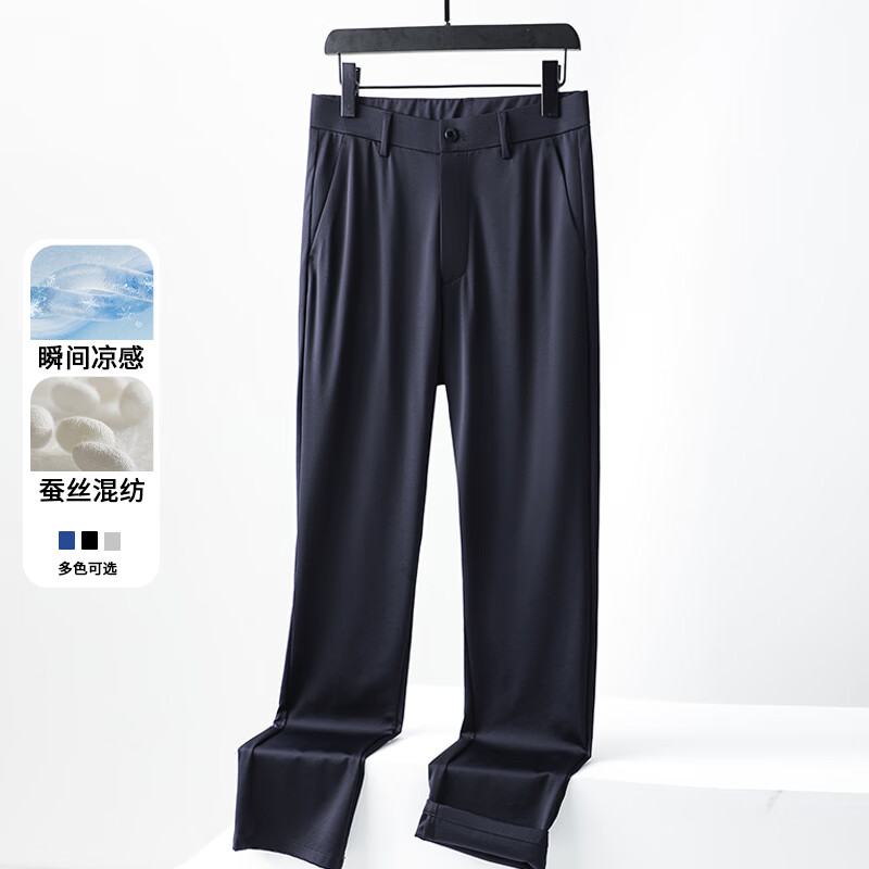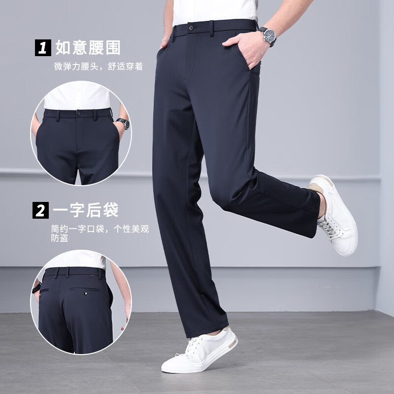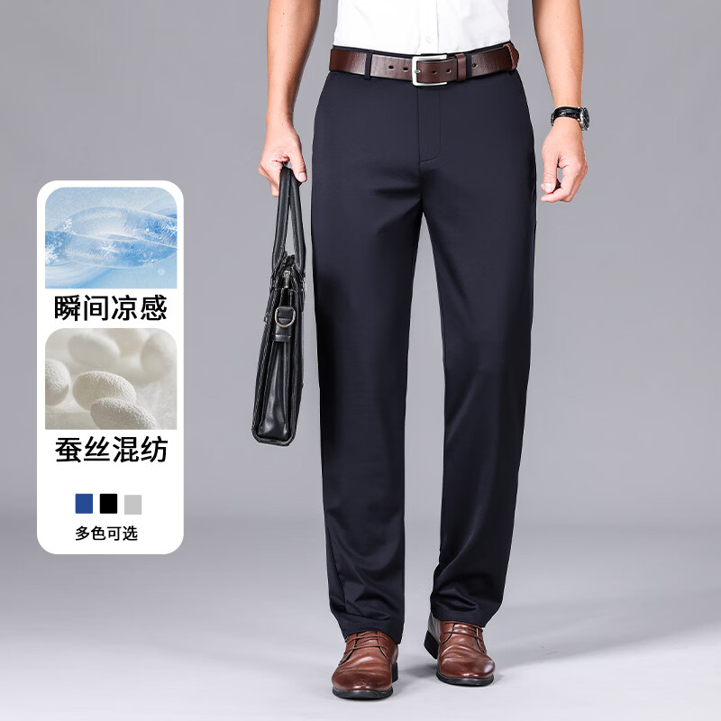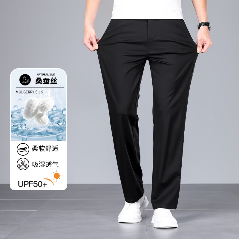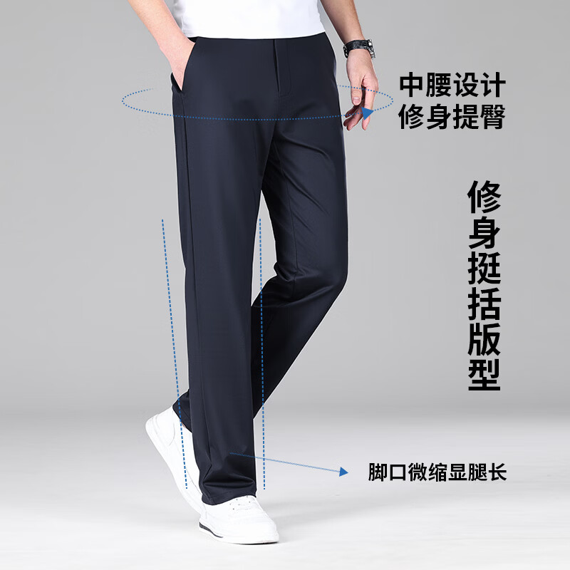 九牧王(JOEONE)2026年春夏新款男士高弹冰丝商务休闲西裤舒适透气百搭长裤 黑色 40