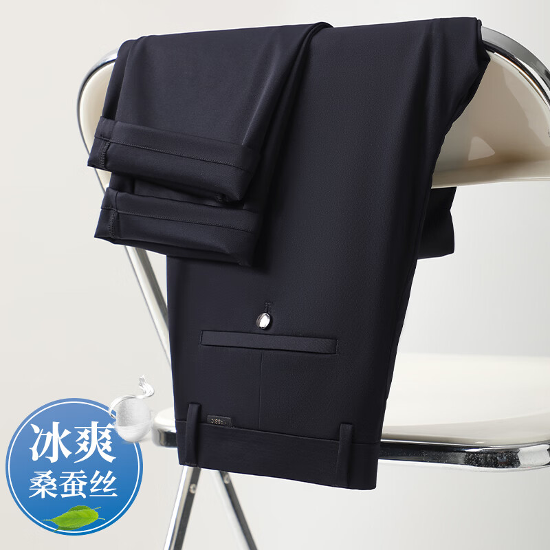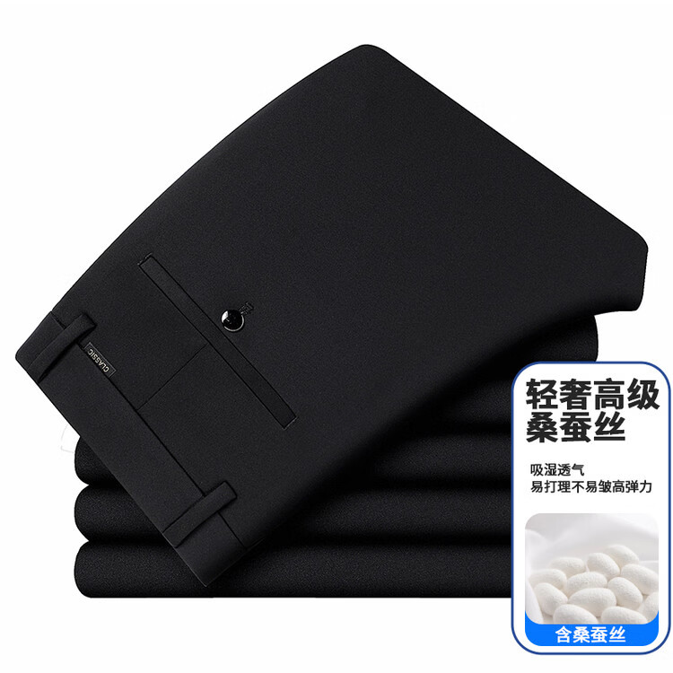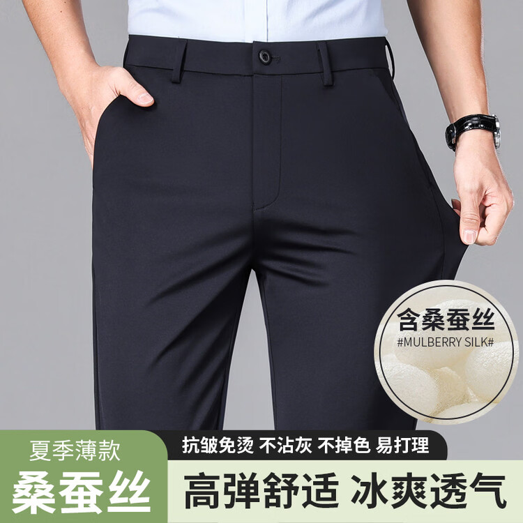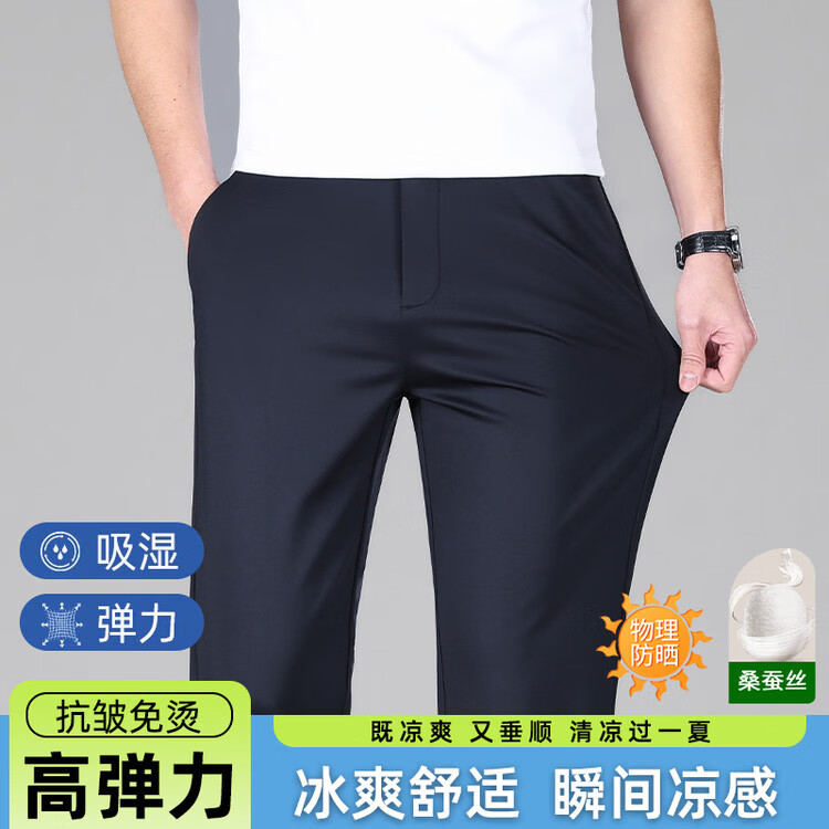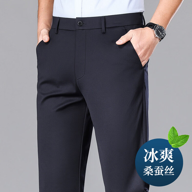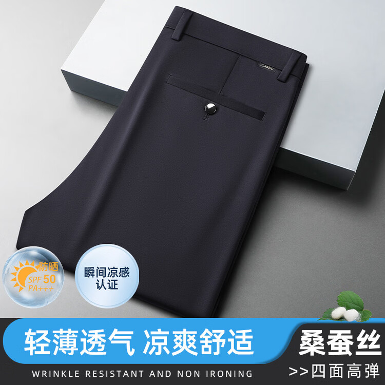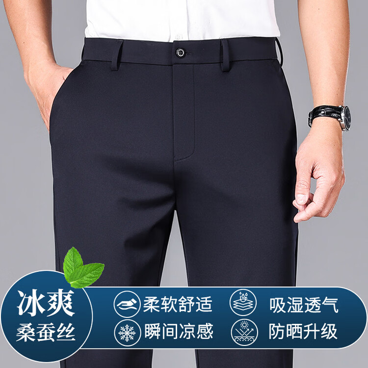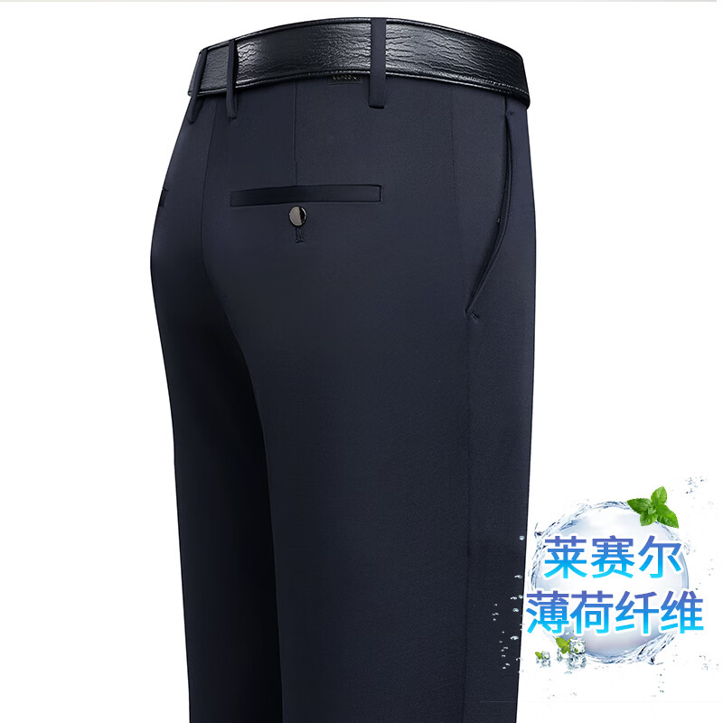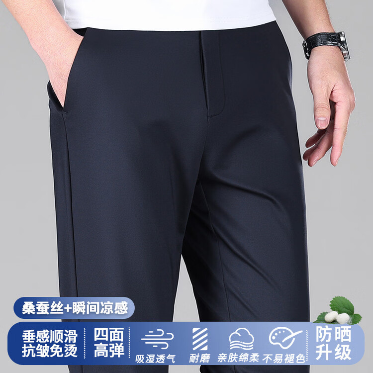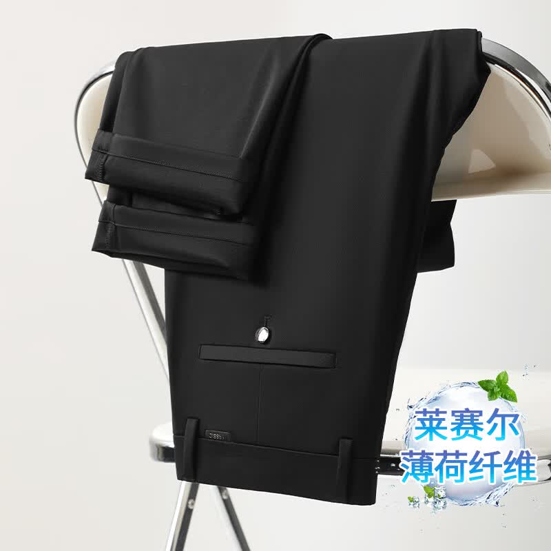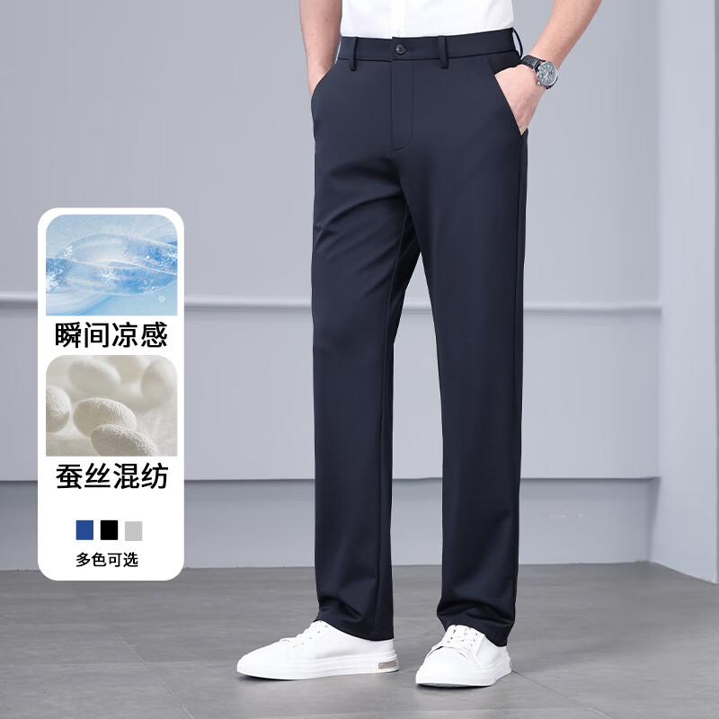 九牧王(JOEONE)2026年春夏新款男士高弹冰丝商务休闲西裤舒适透气百搭长裤 黑色 40