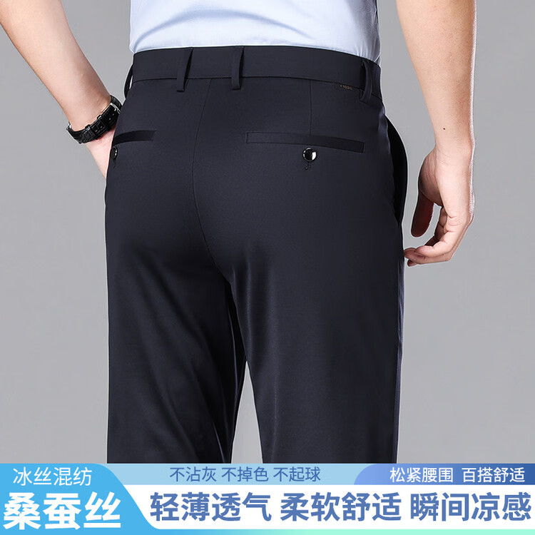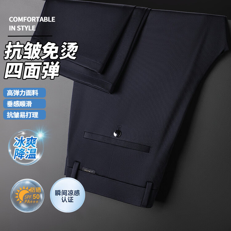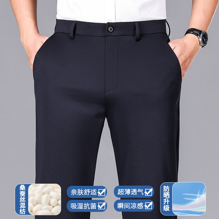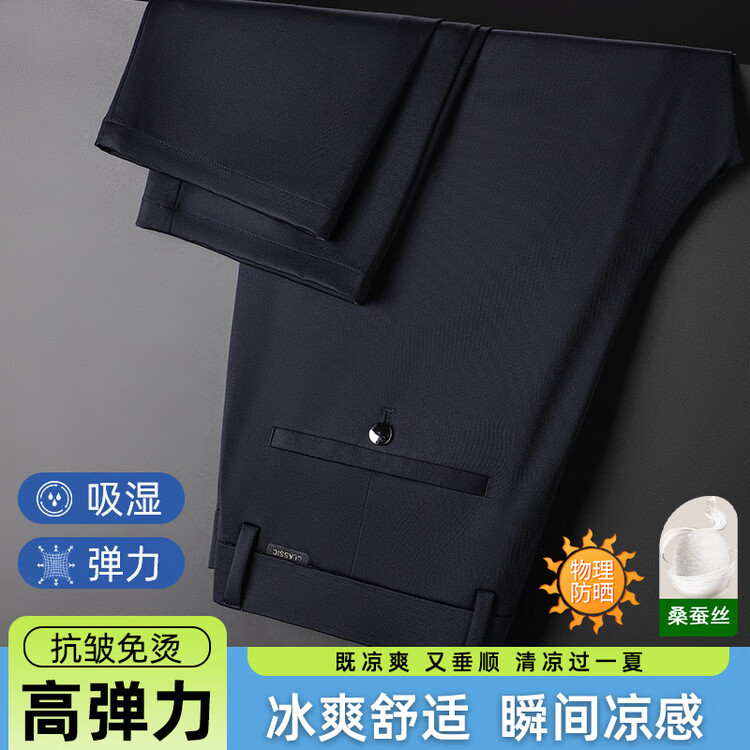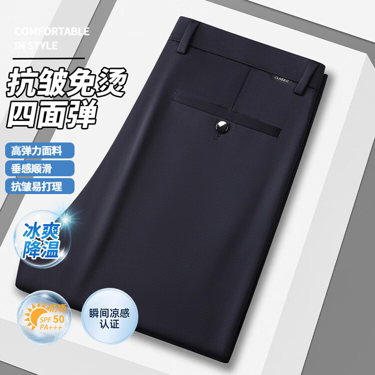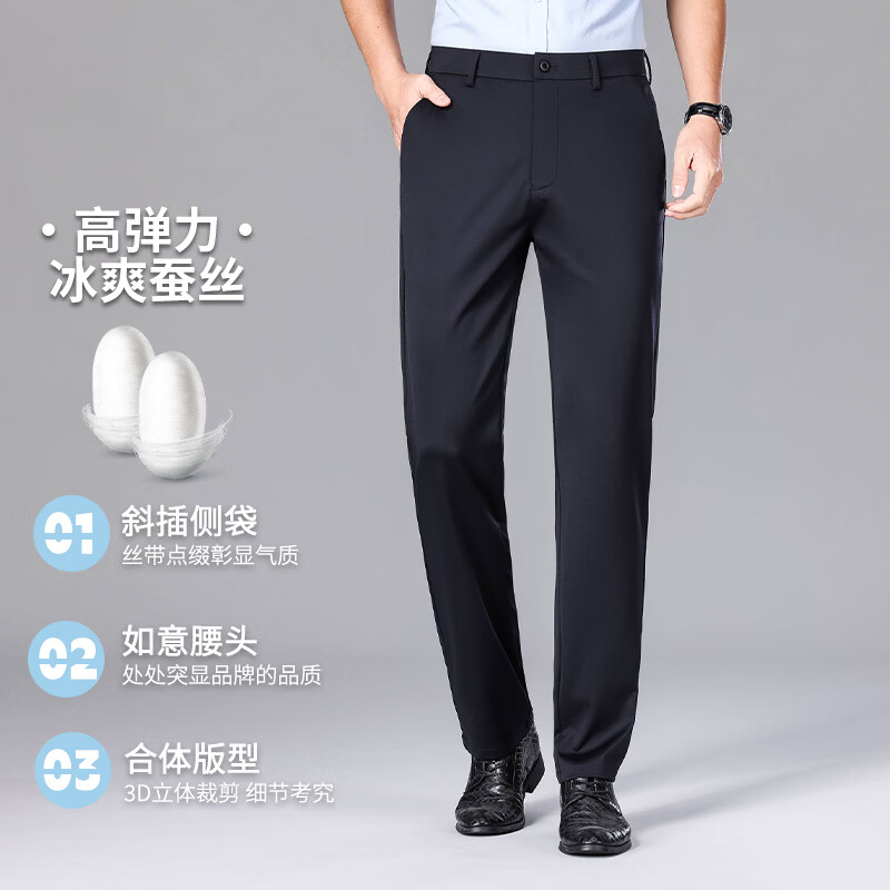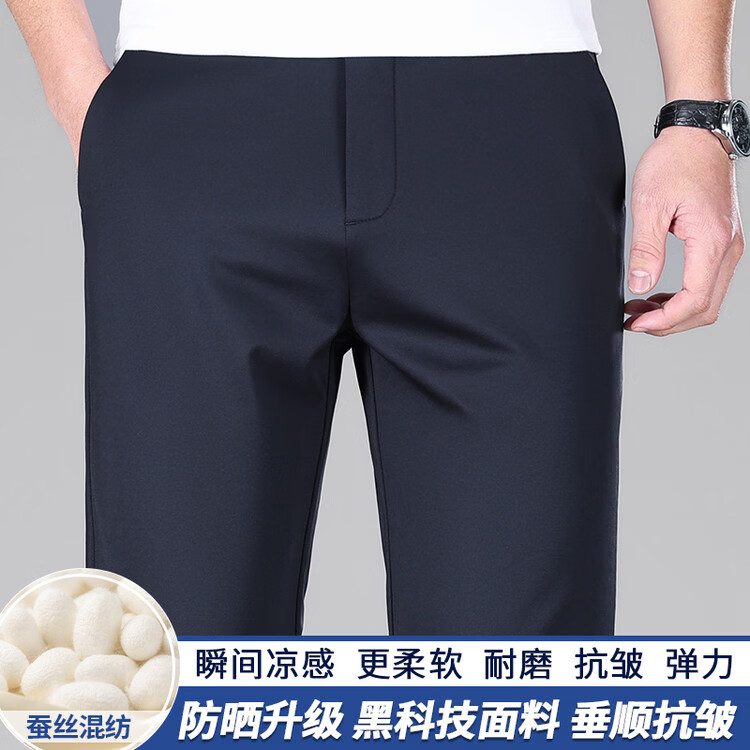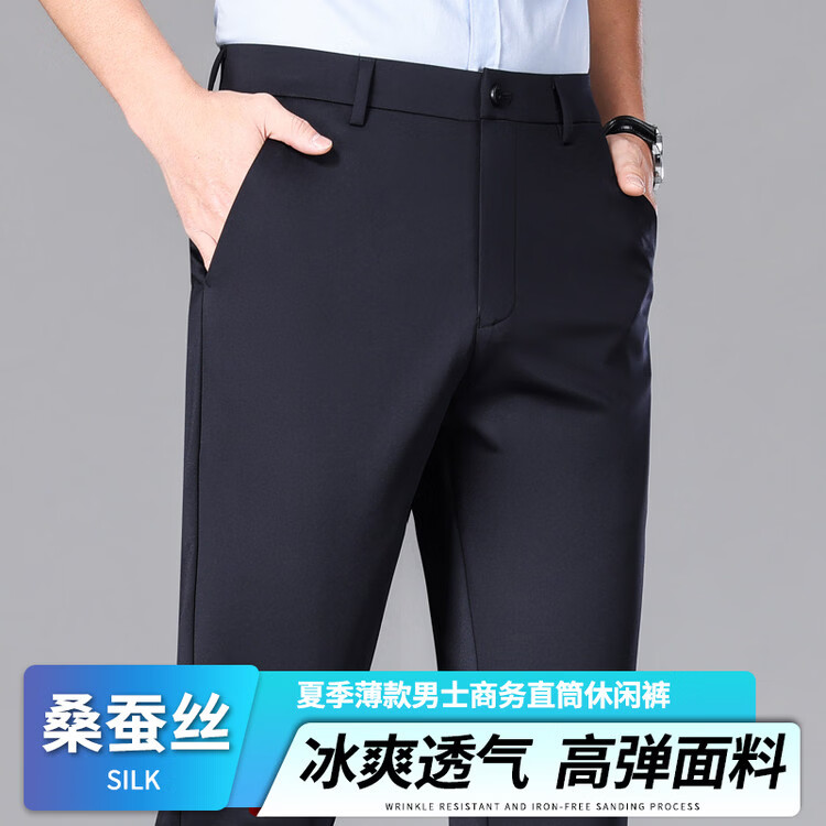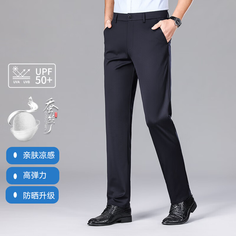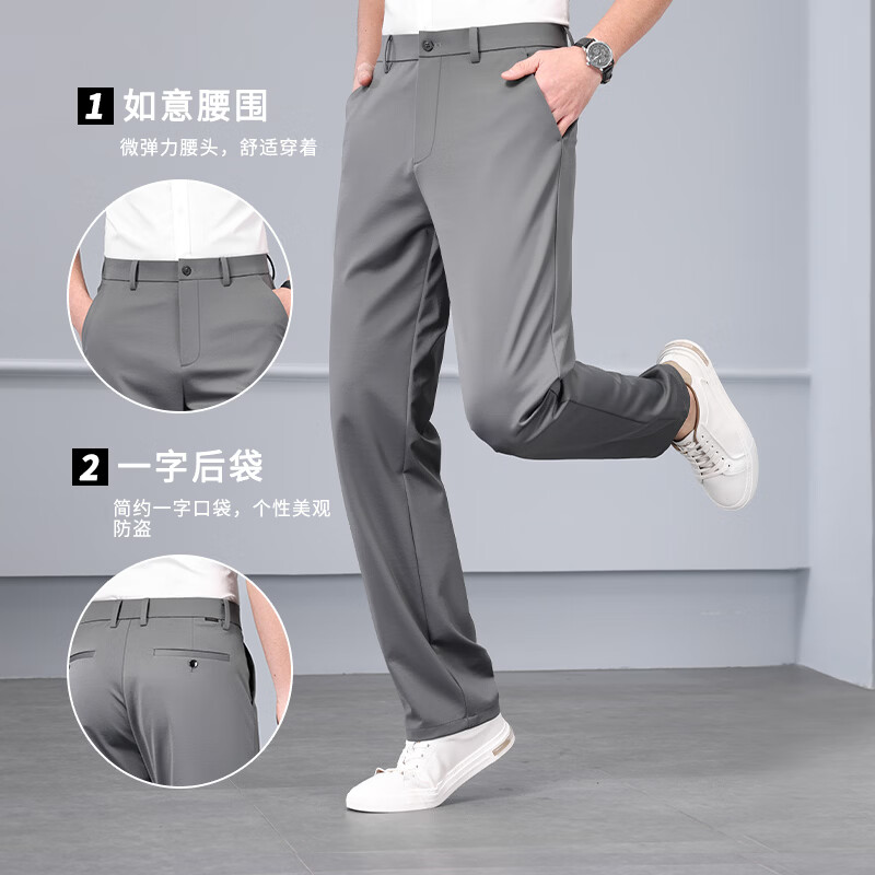 九牧王(JOEONE)2026年春夏新款男士高弹冰丝商务休闲西裤舒适透气百搭长裤 黑色 40