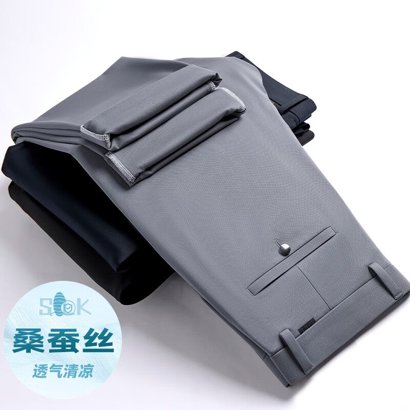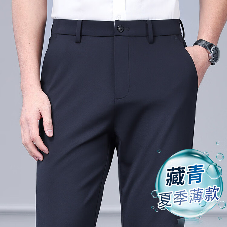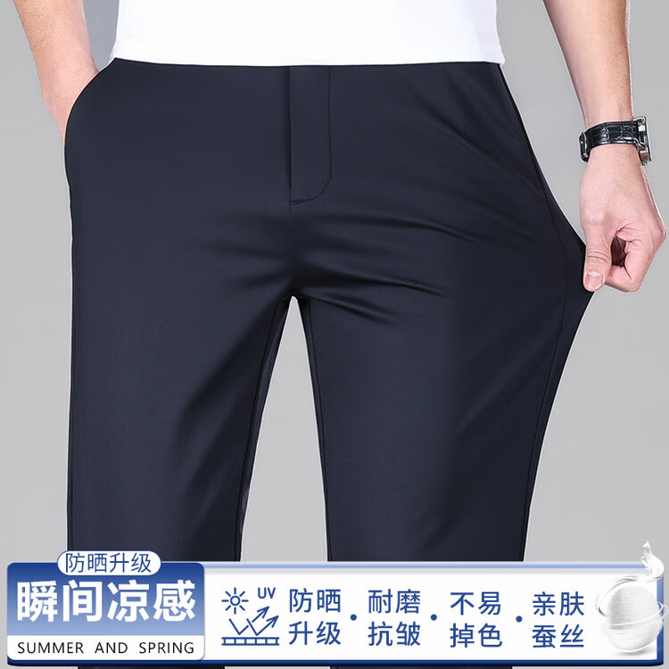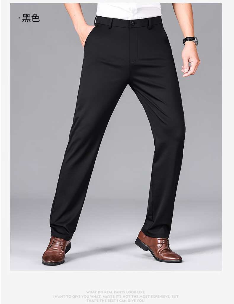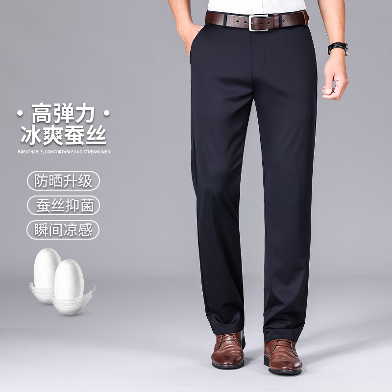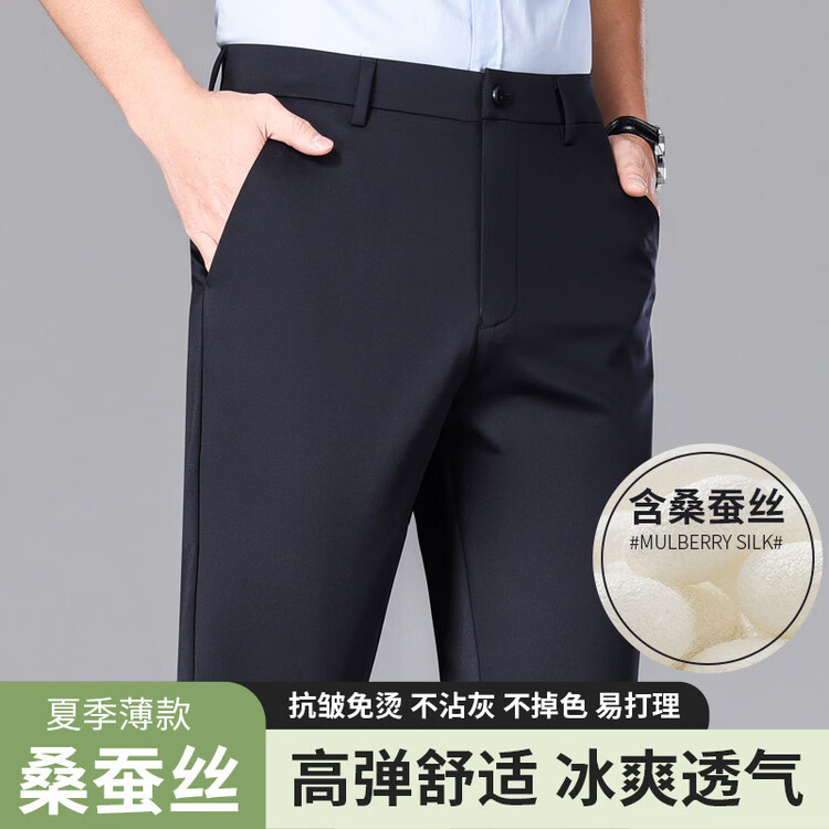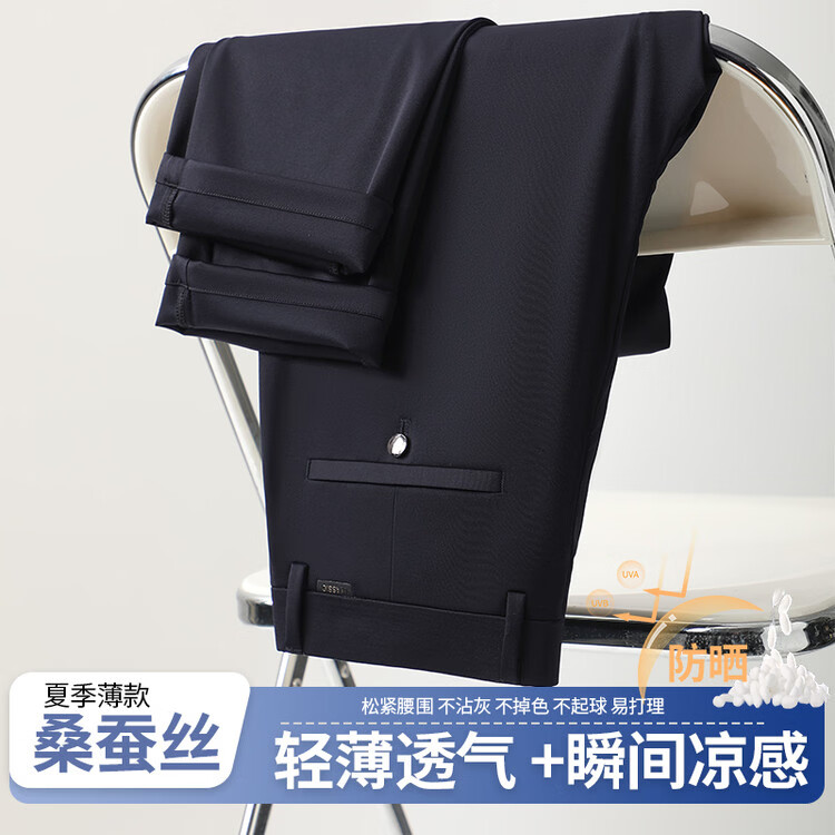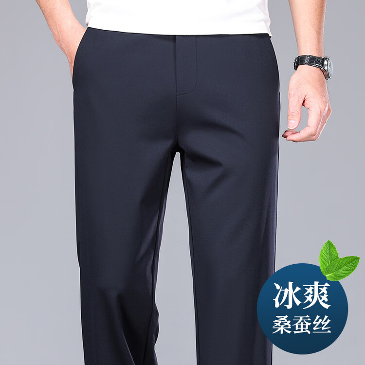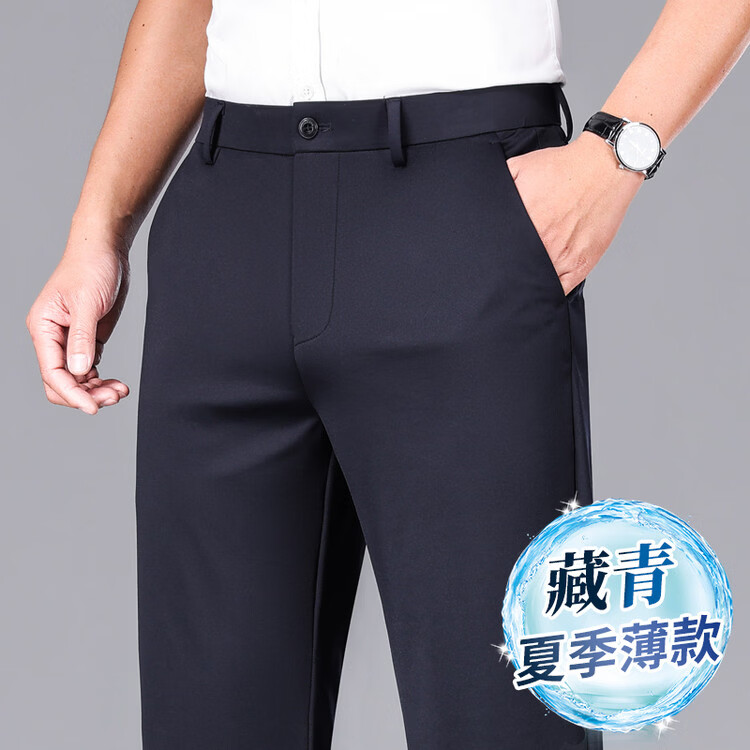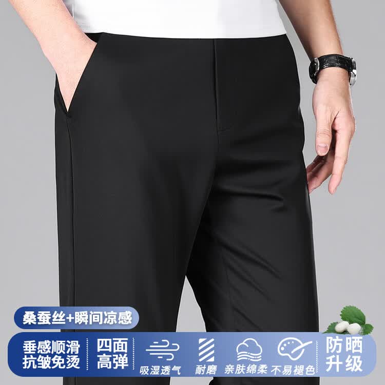 九牧王(JOEONE)2026年春夏新款男士高弹冰丝商务休闲西裤舒适透气百搭长裤 黑色 40