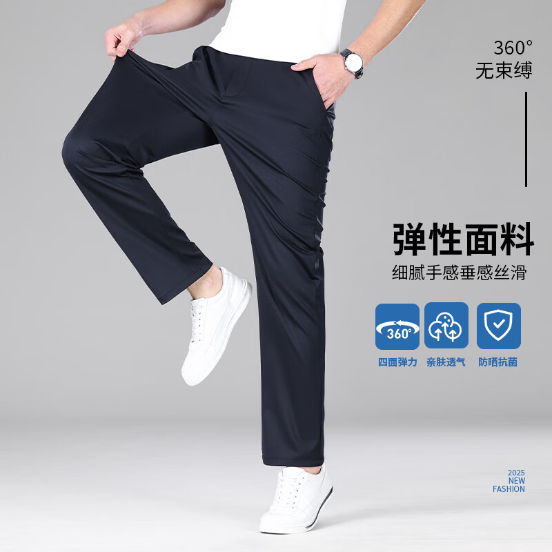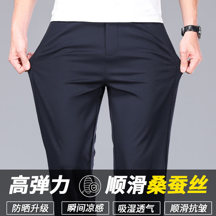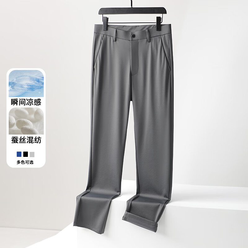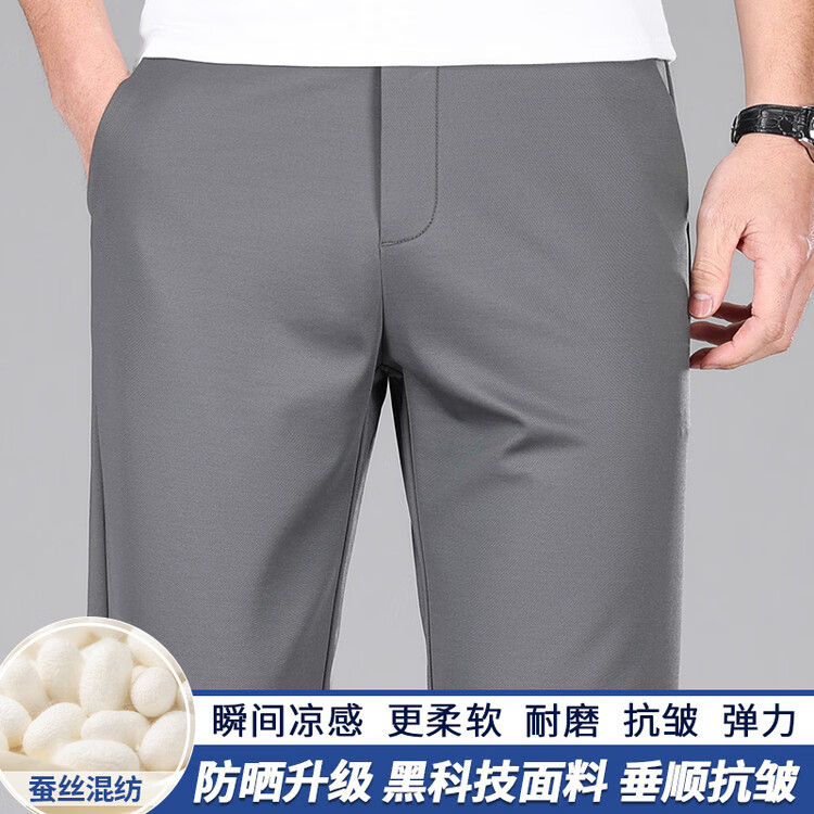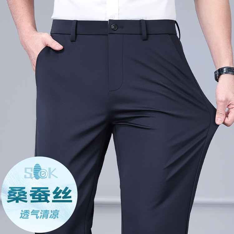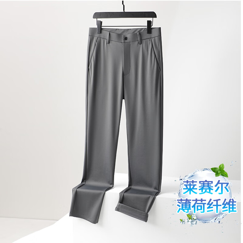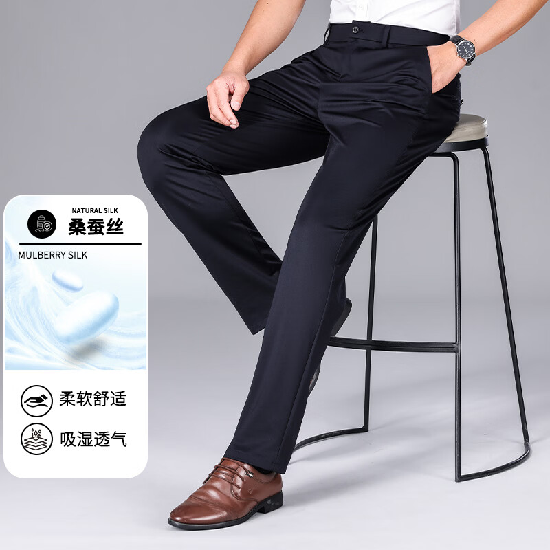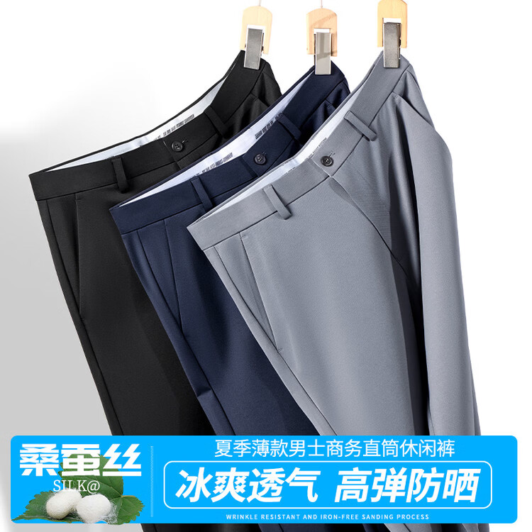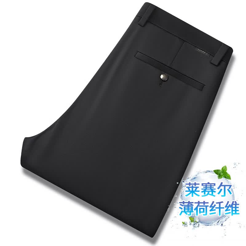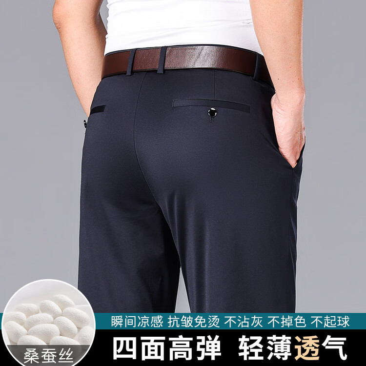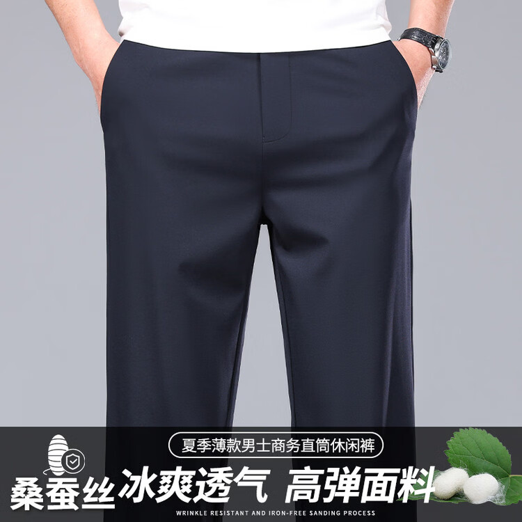 九牧王(JOEONE)2026年春夏新款男士高弹冰丝商务休闲西裤舒适透气百搭长裤 黑色 40