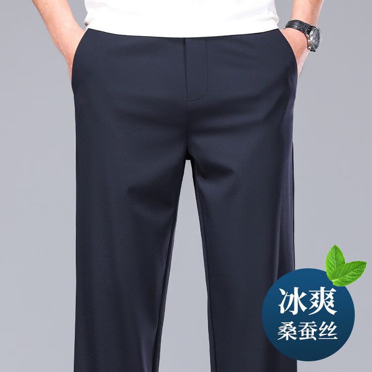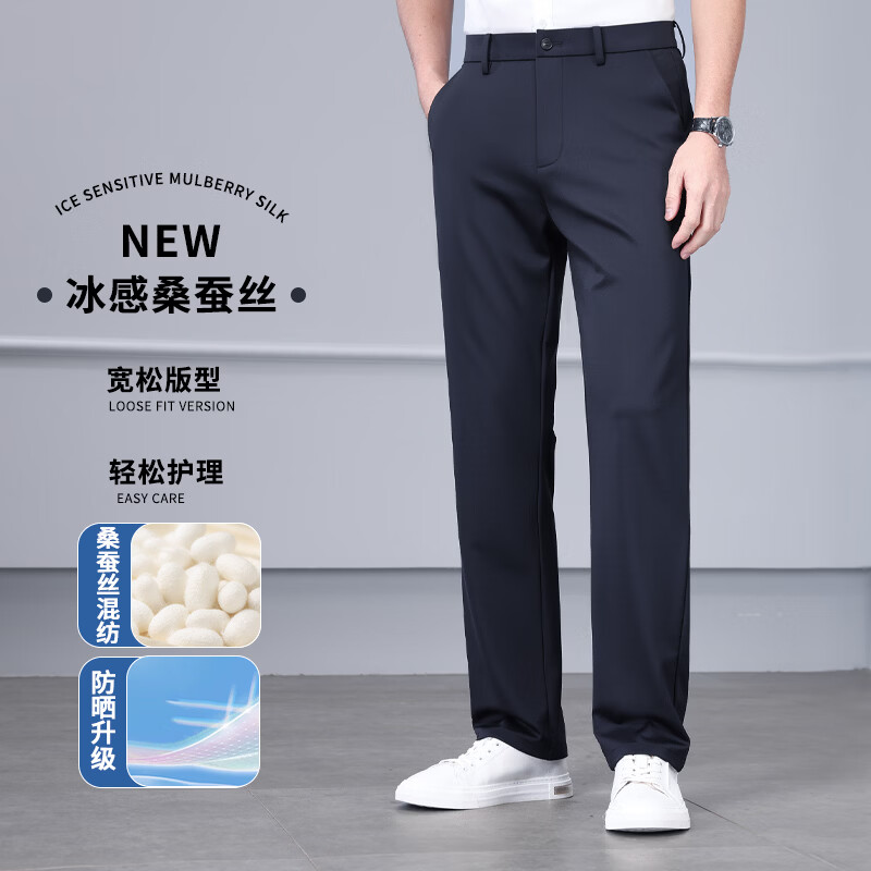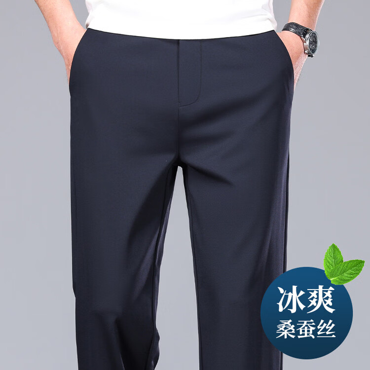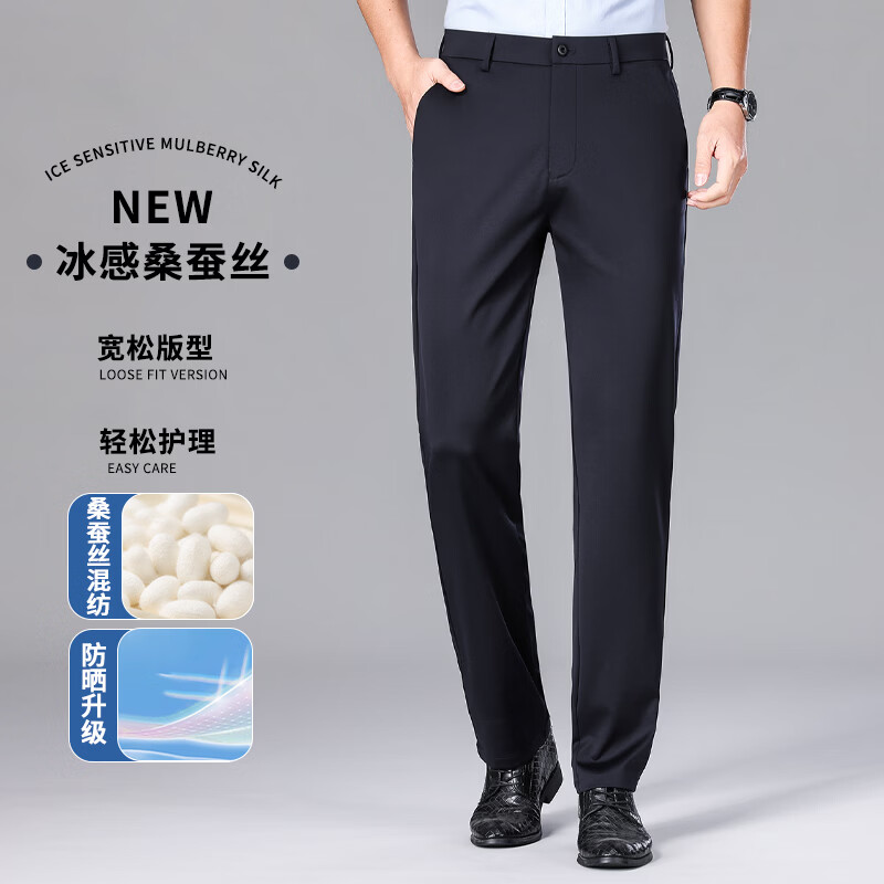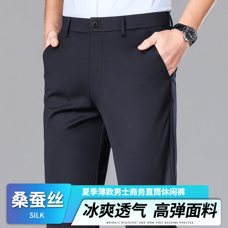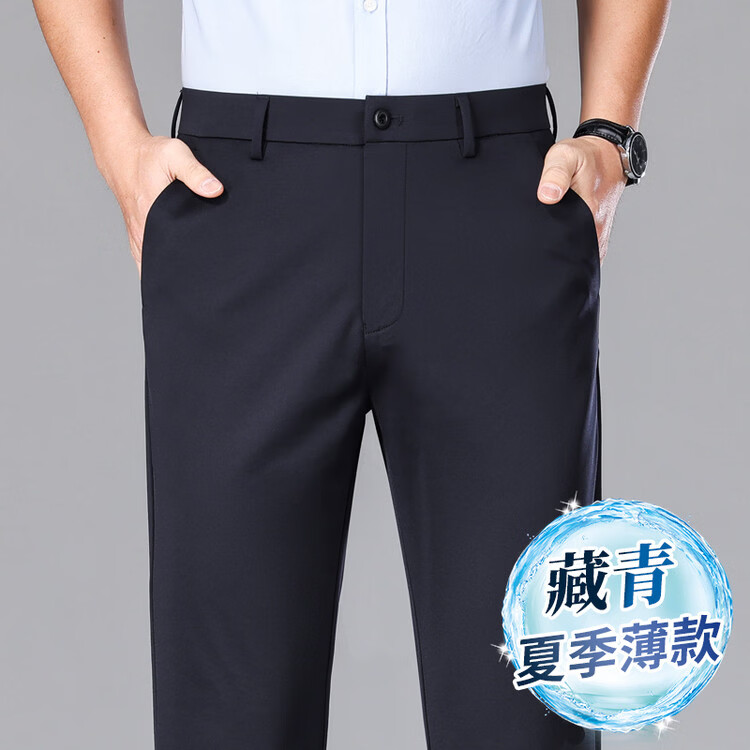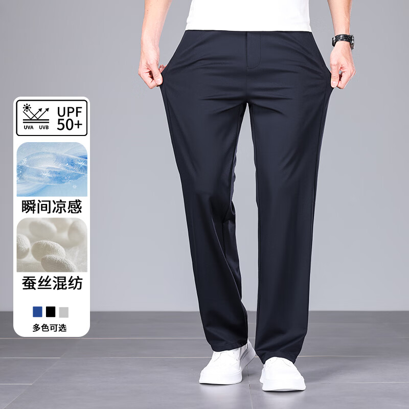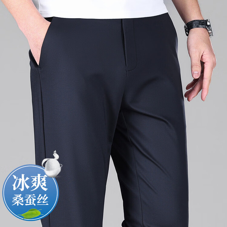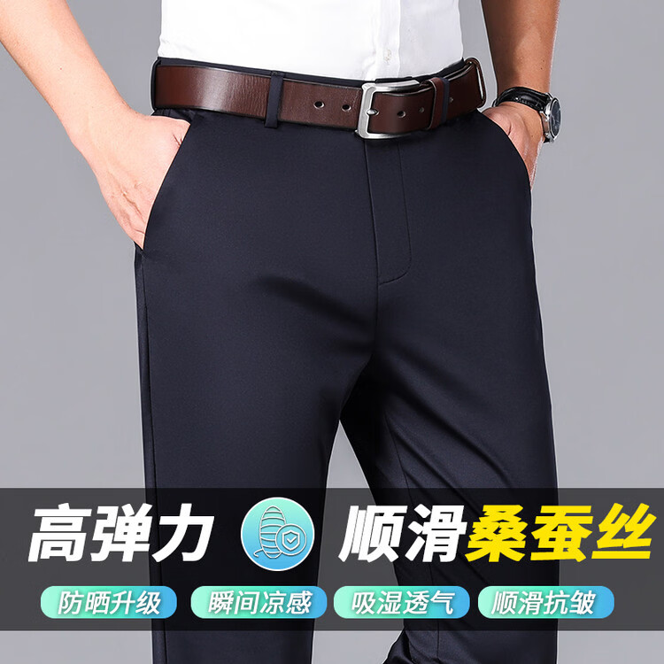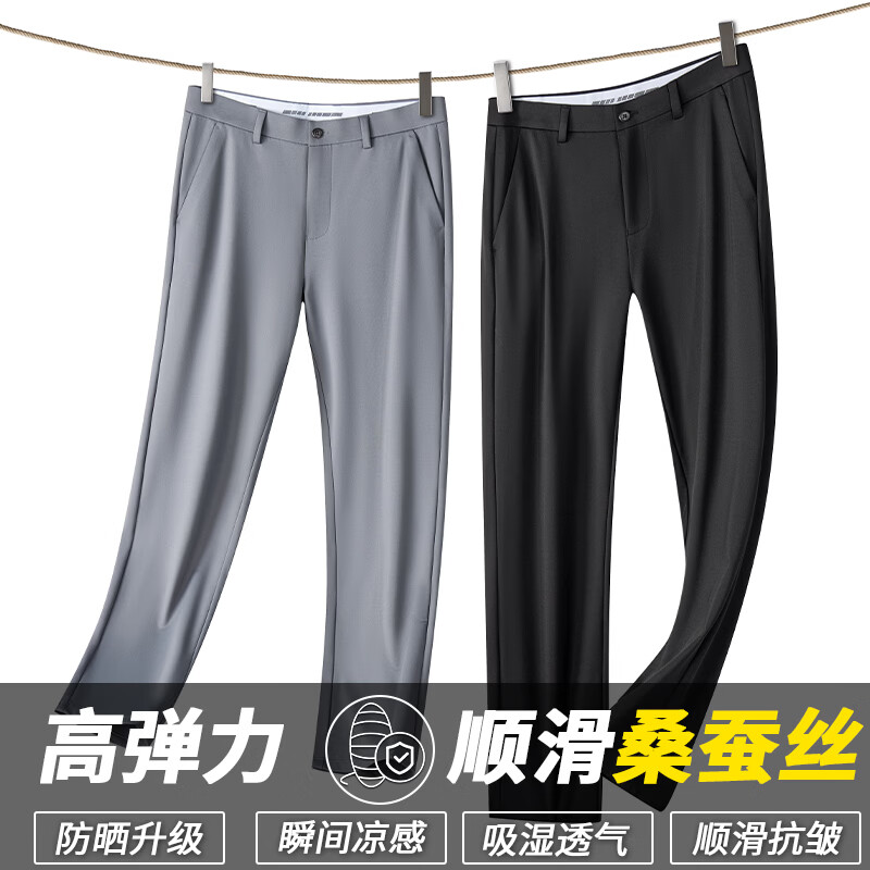 九牧王(JOEONE)2026年春夏新款男士高弹冰丝商务休闲西裤舒适透气百搭长裤 黑色 40