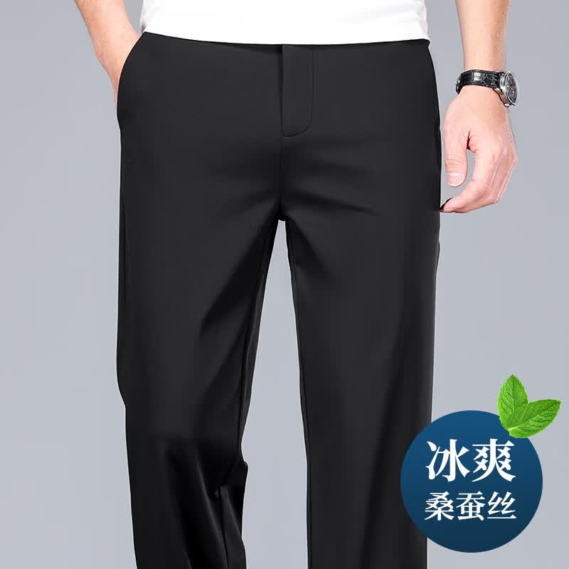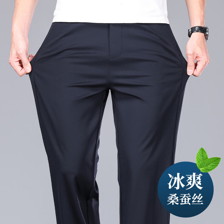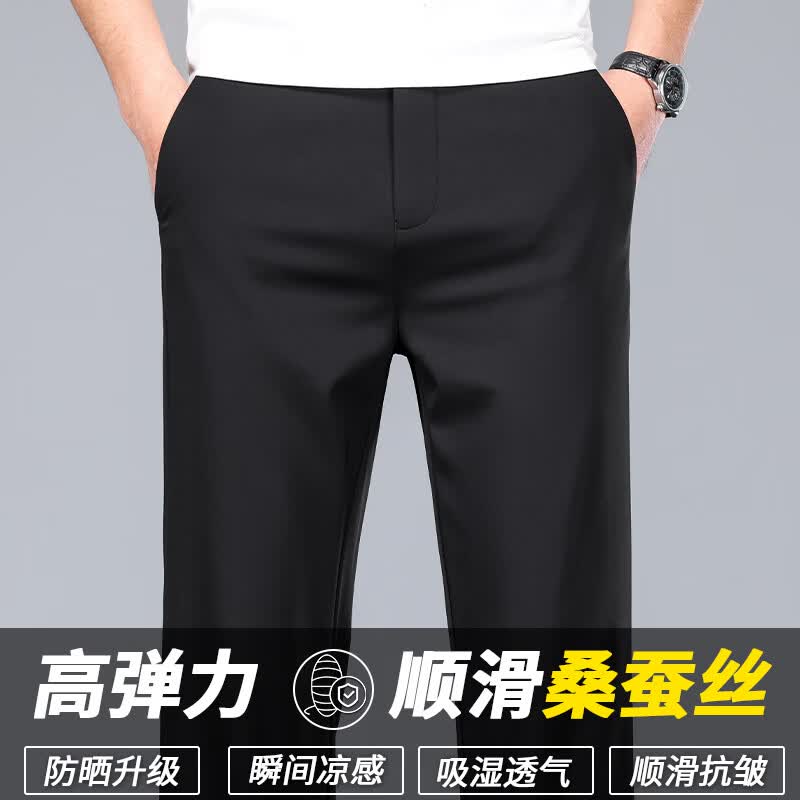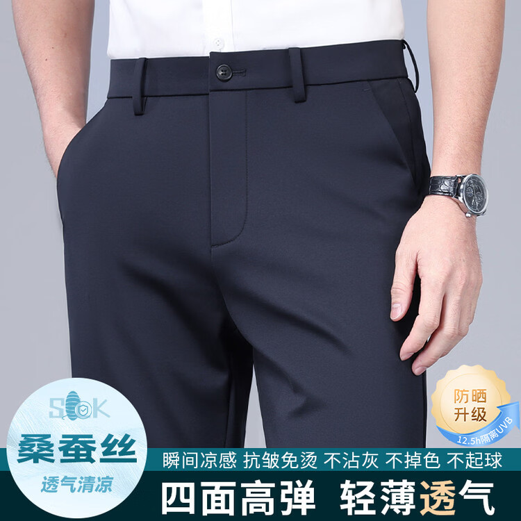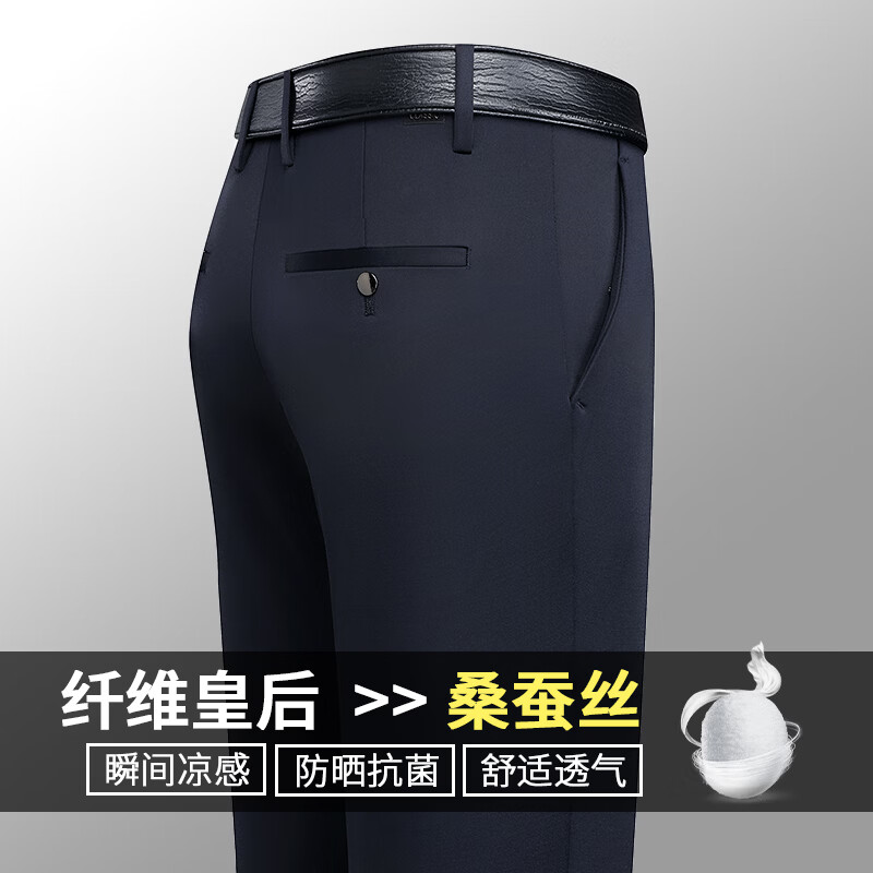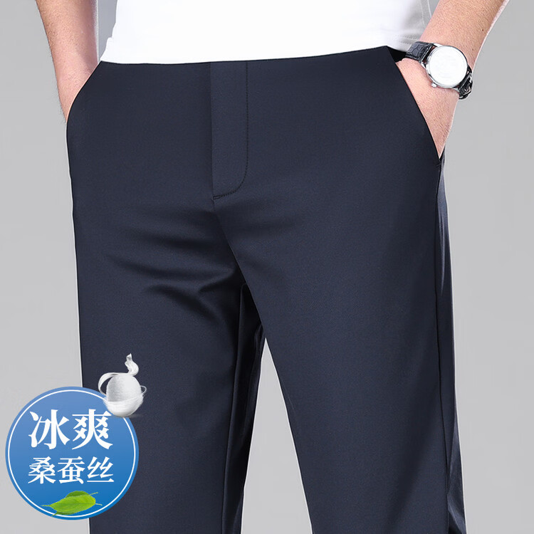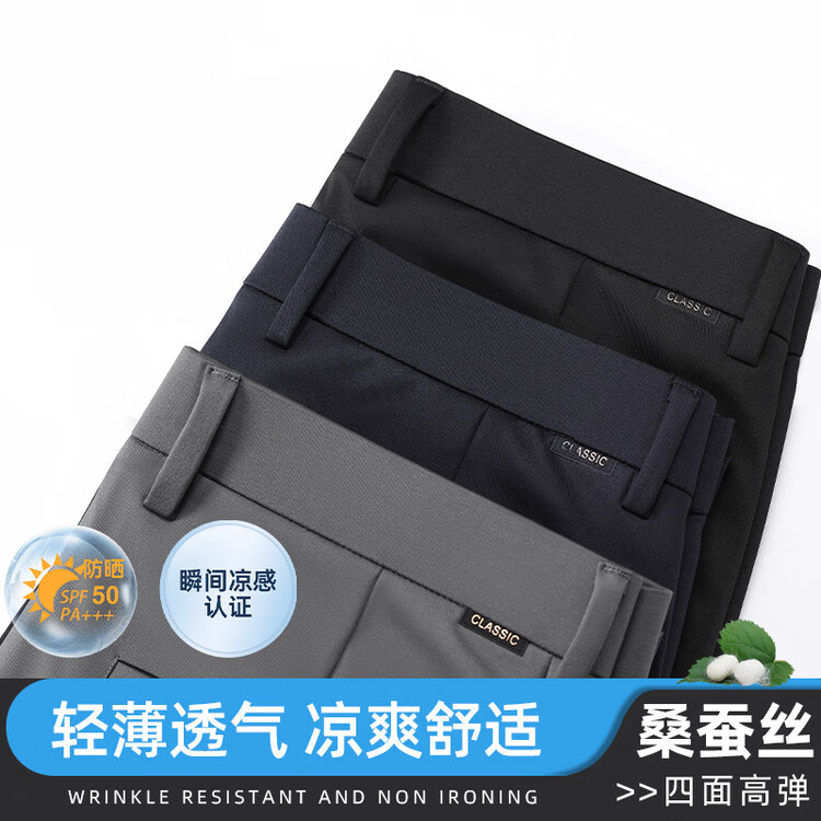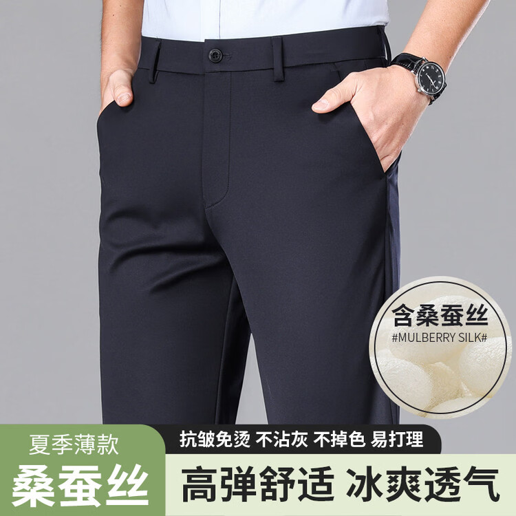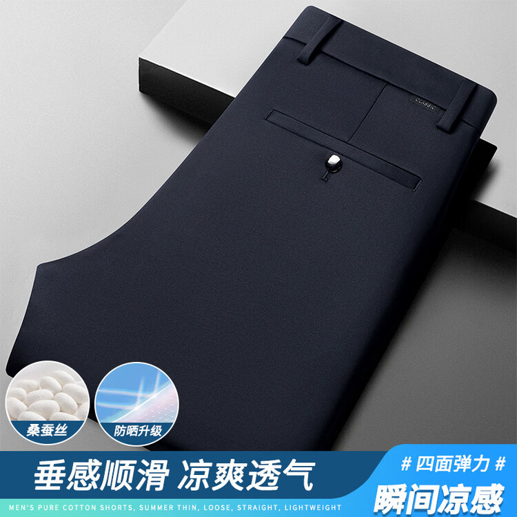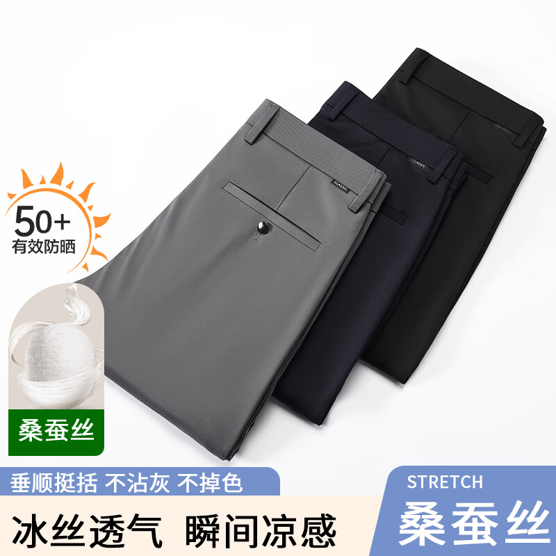 九牧王(JOEONE)2026年春夏新款男士高弹冰丝商务休闲西裤舒适透气百搭长裤 黑色 40