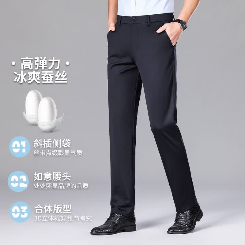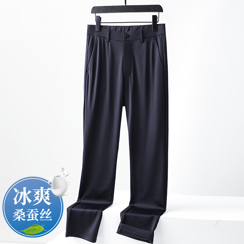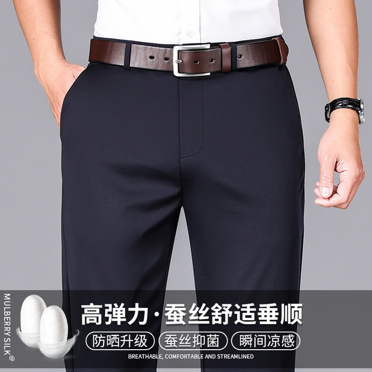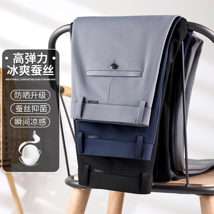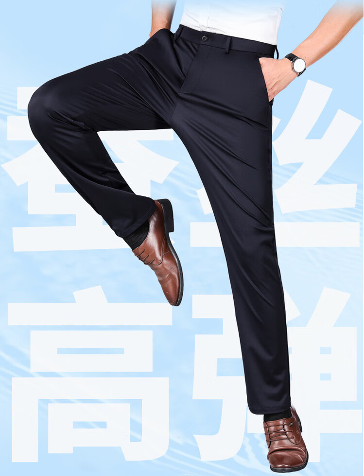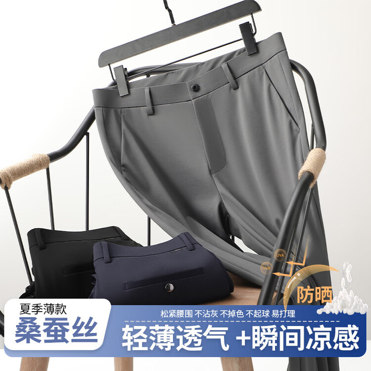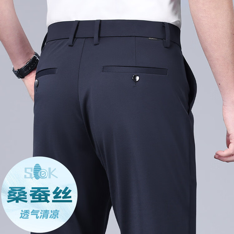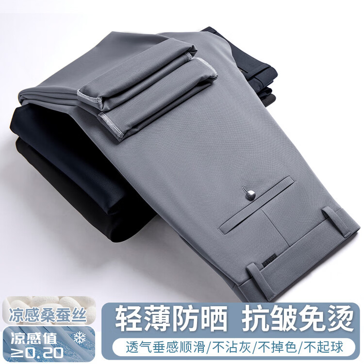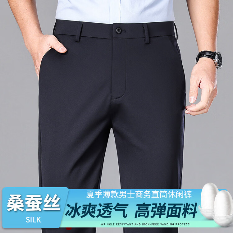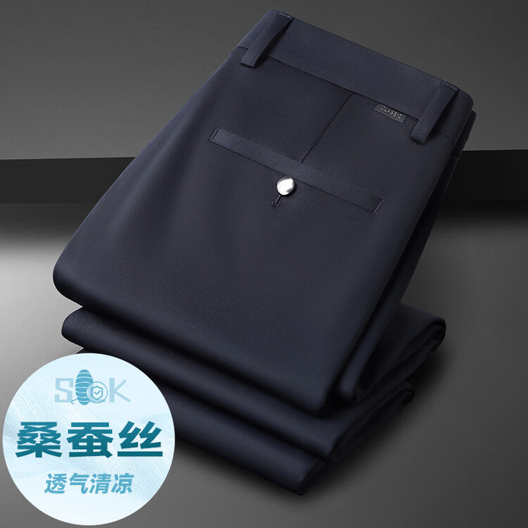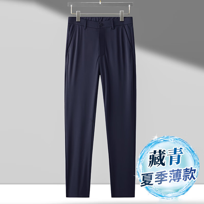九牧王(JOEONE)2026年春夏新款男士高弹冰丝商务休闲西裤舒适透气百搭长裤 黑色 40