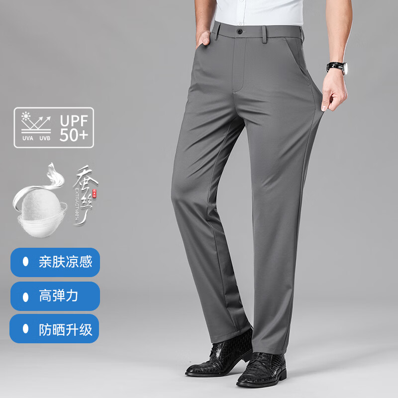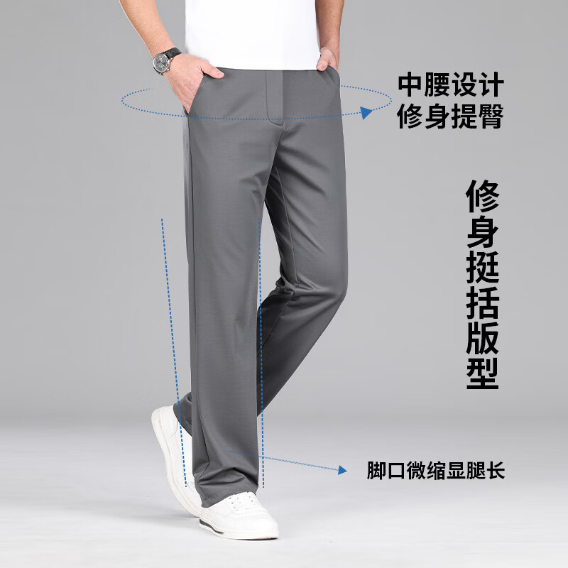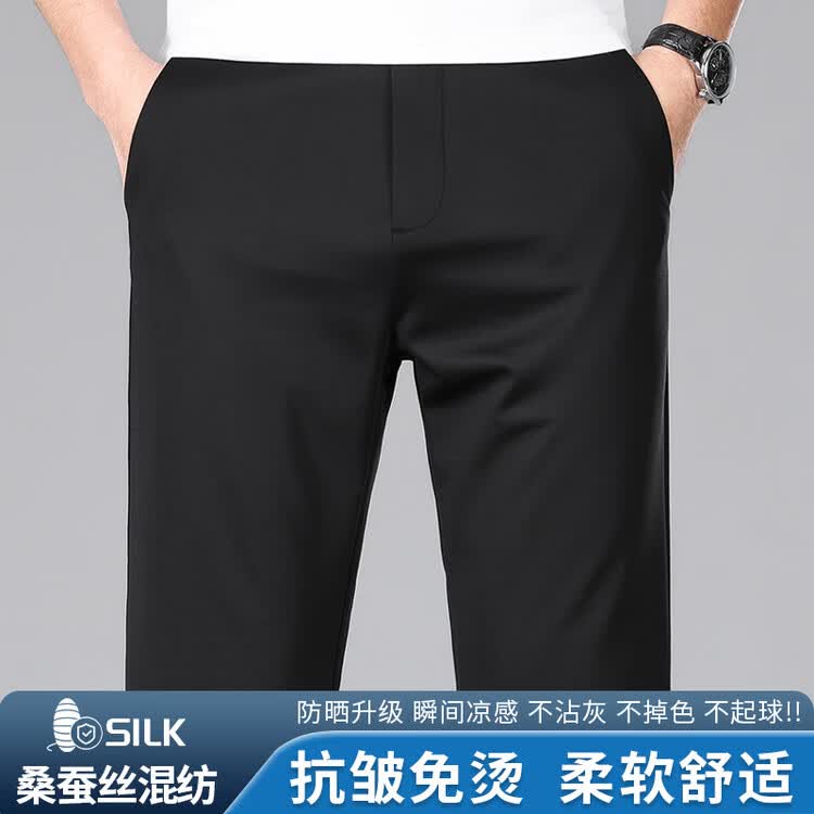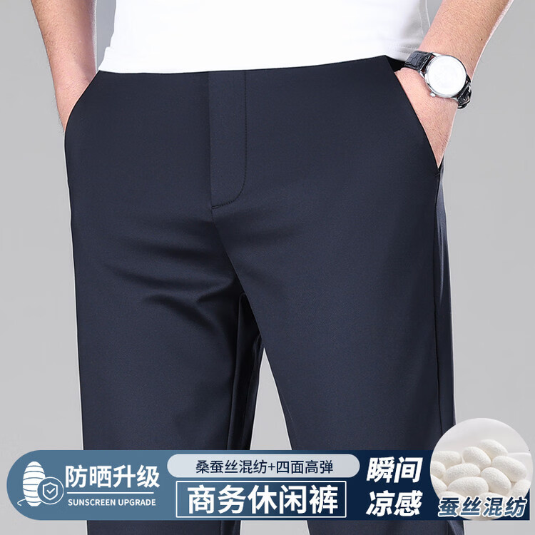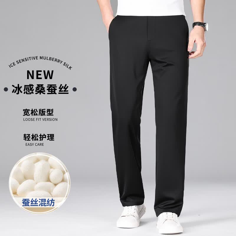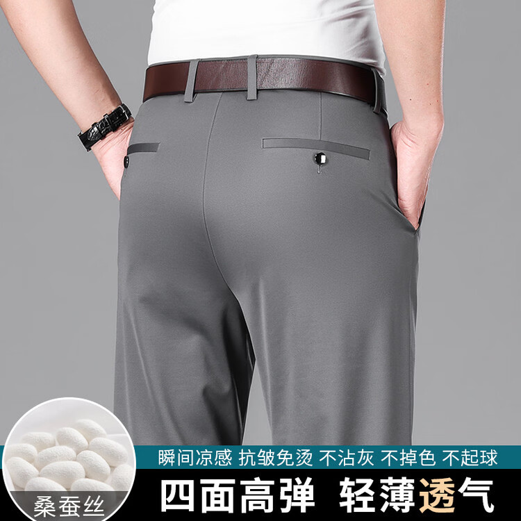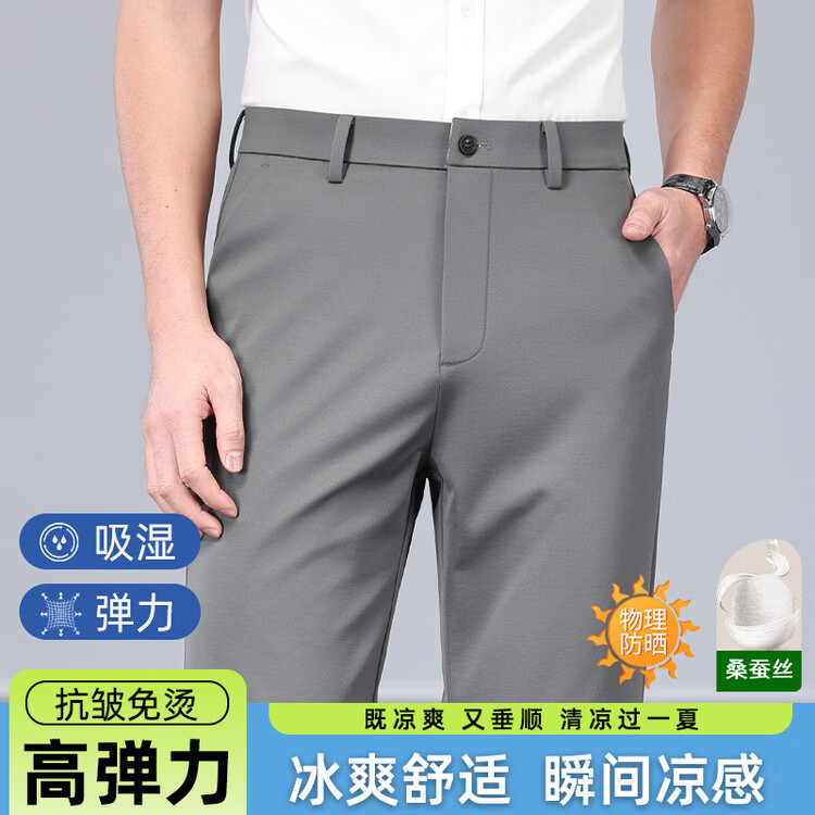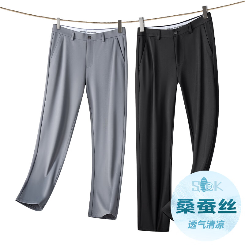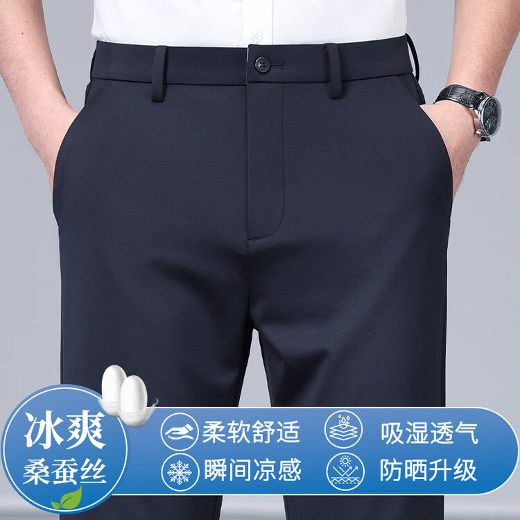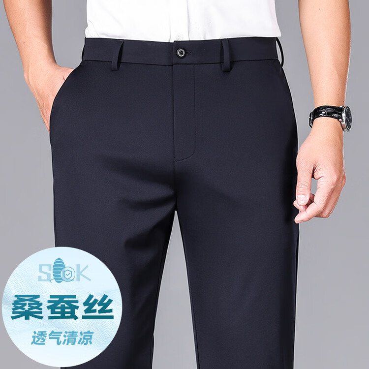 九牧王(JOEONE)2026年春夏新款男士高弹冰丝商务休闲西裤舒适透气百搭长裤 黑色 40
