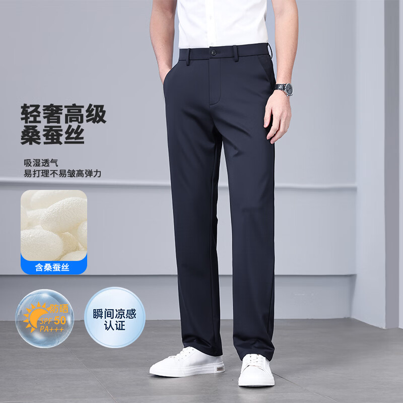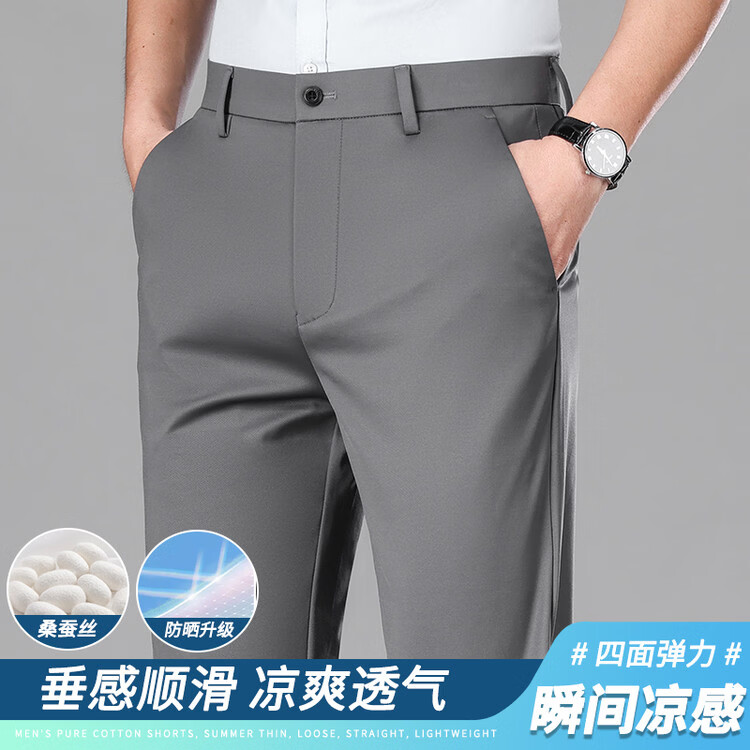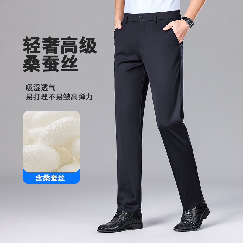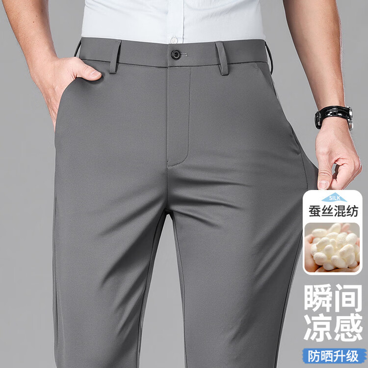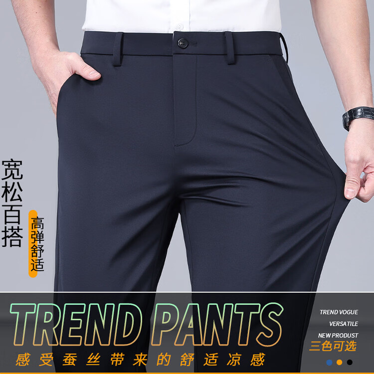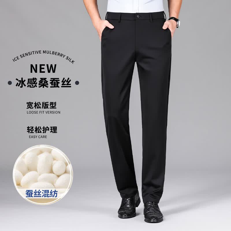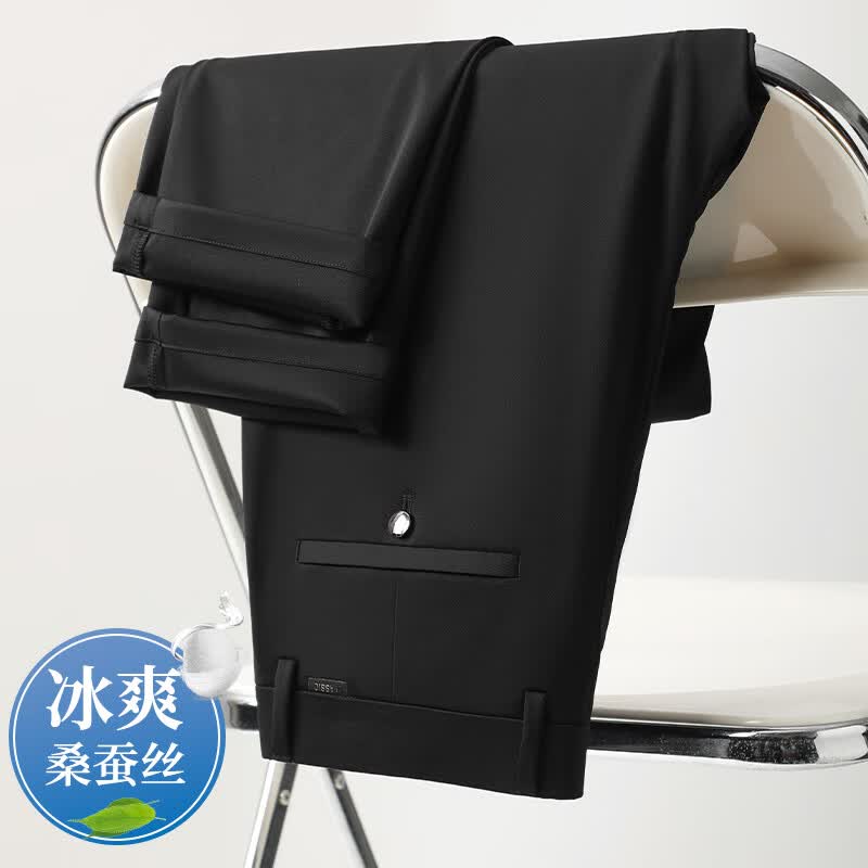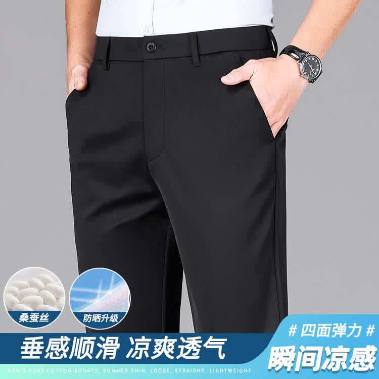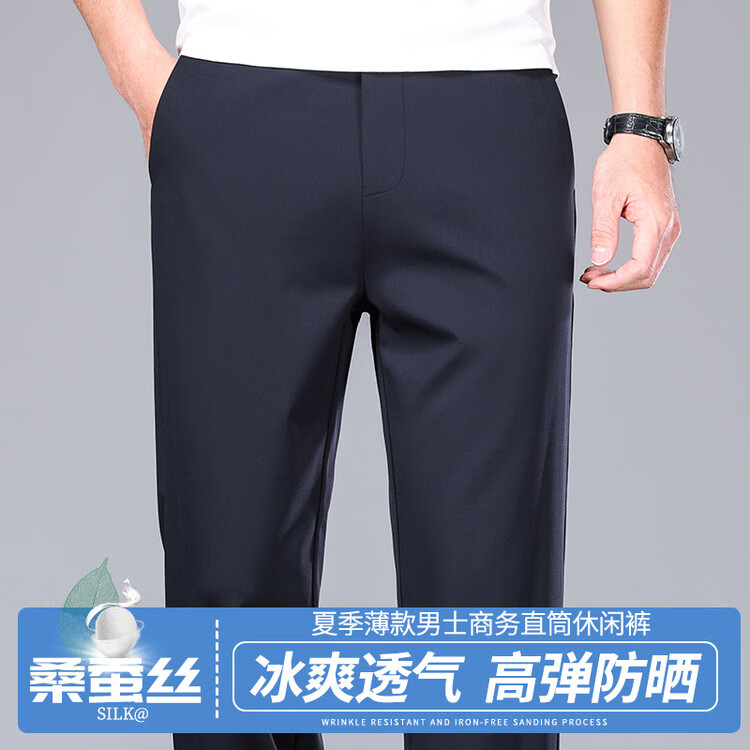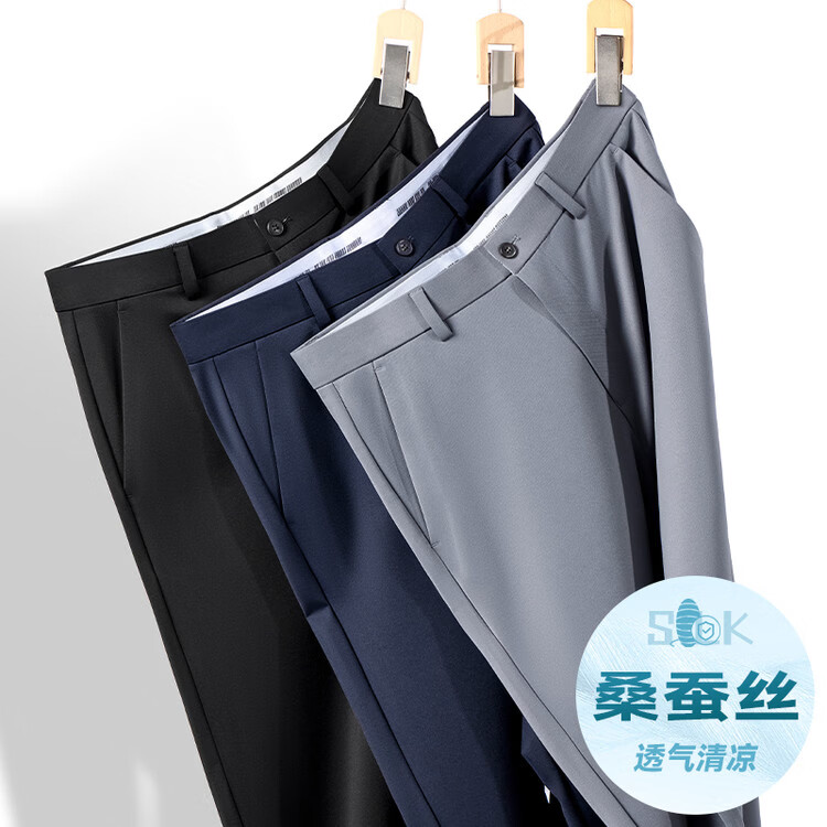 九牧王(JOEONE)2026年春夏新款男士高弹冰丝商务休闲西裤舒适透气百搭长裤 黑色 40