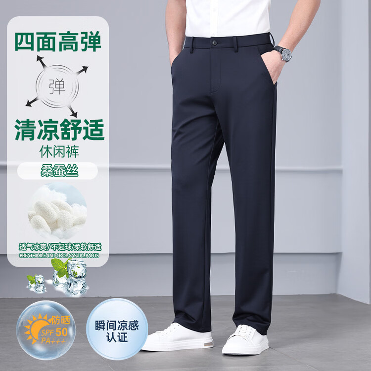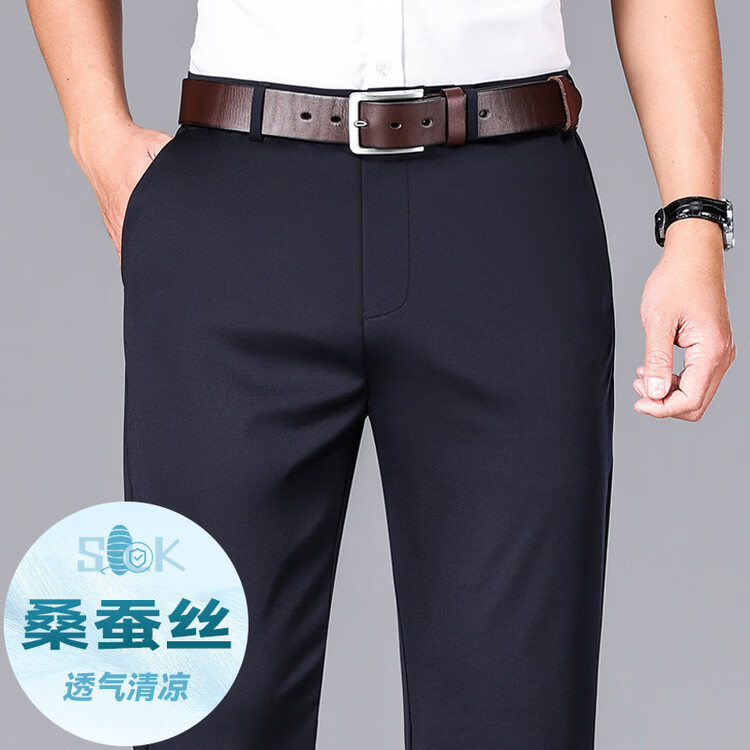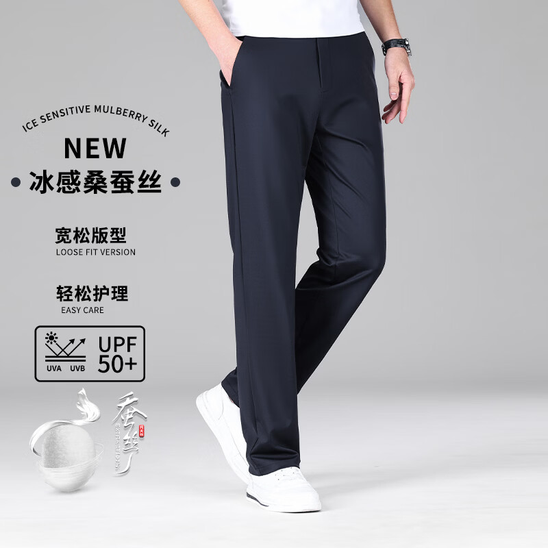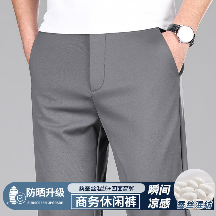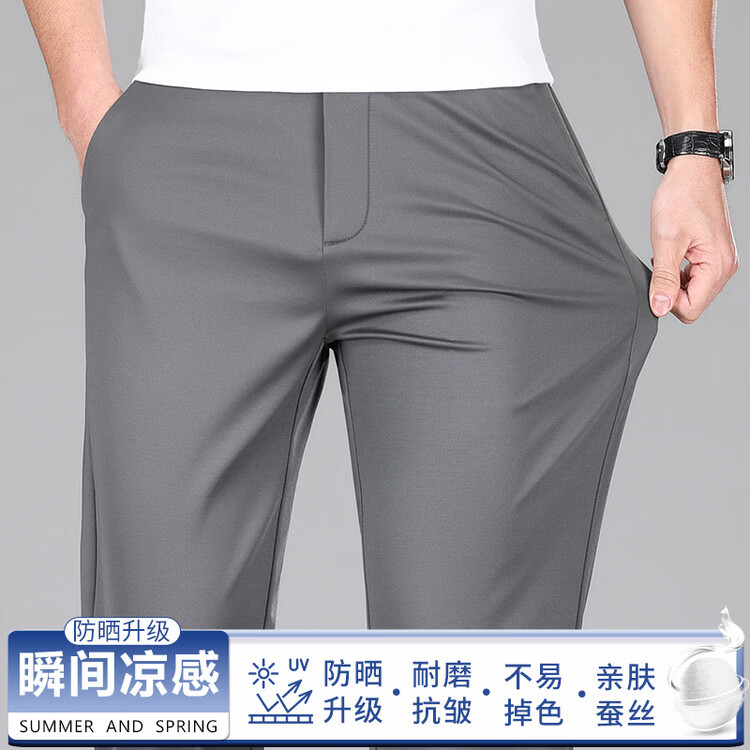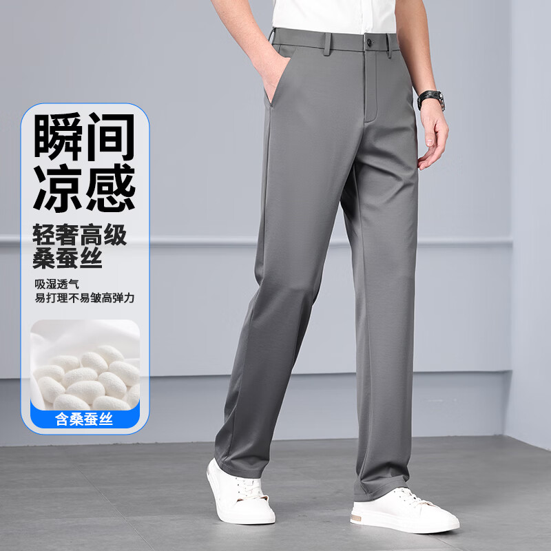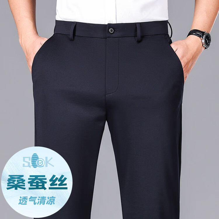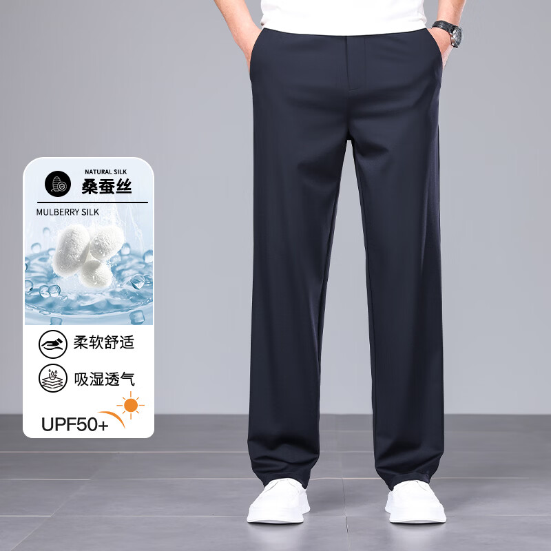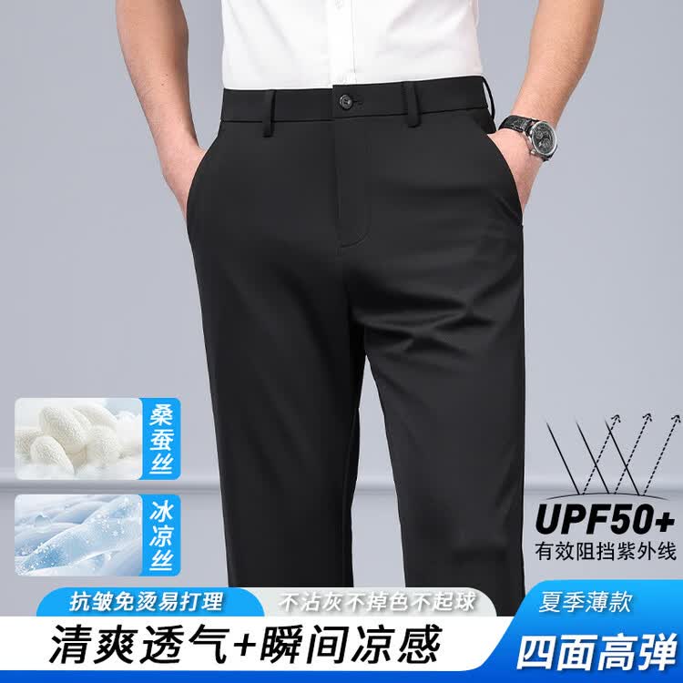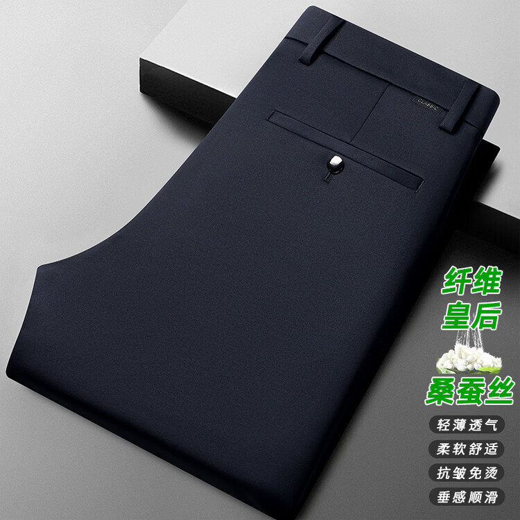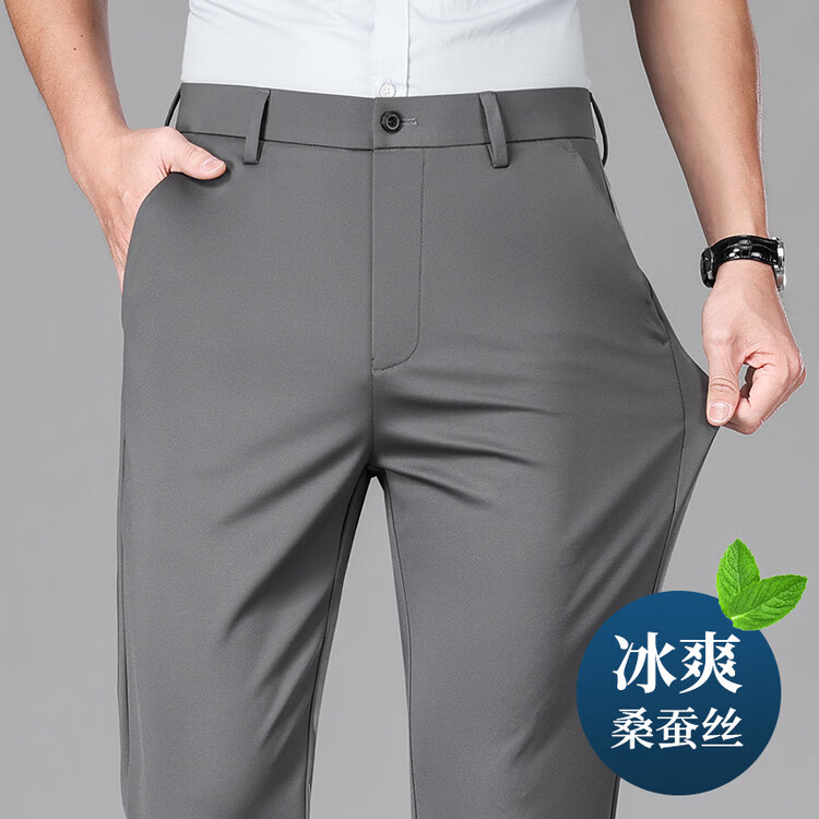九牧王(JOEONE)2026年春夏新款男士高弹冰丝商务休闲西裤舒适透气百搭长裤 黑色 40