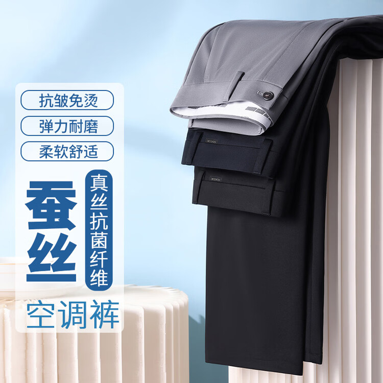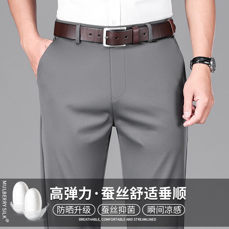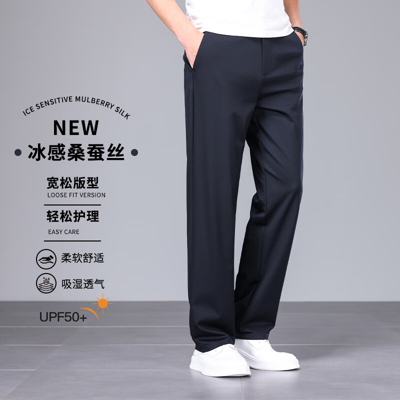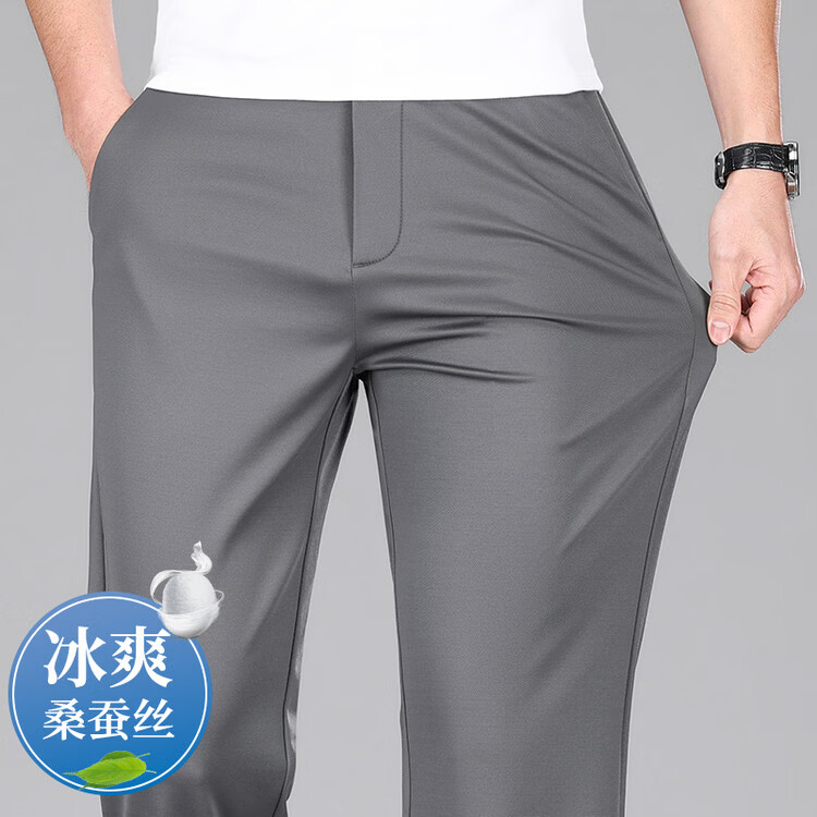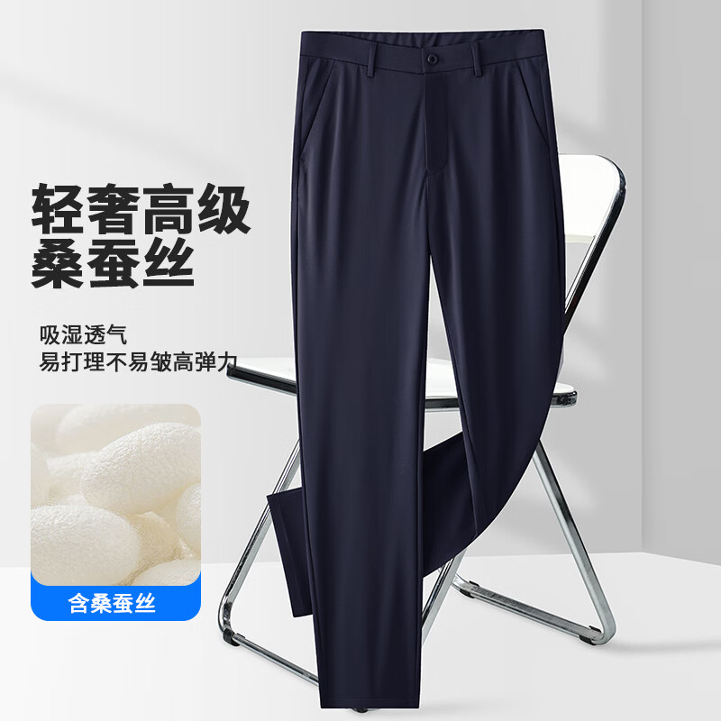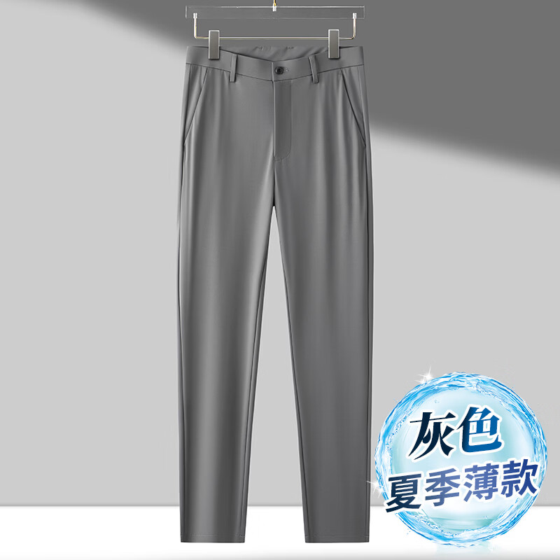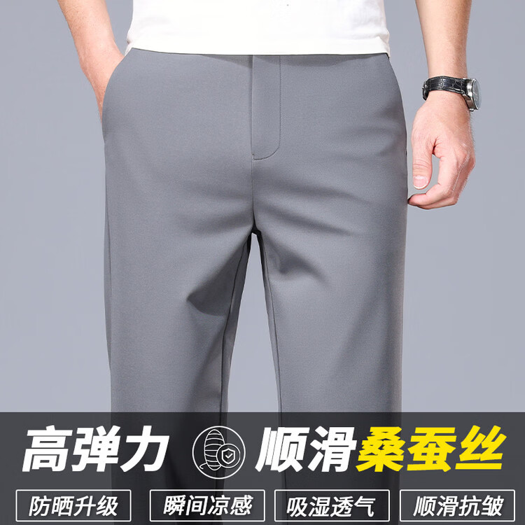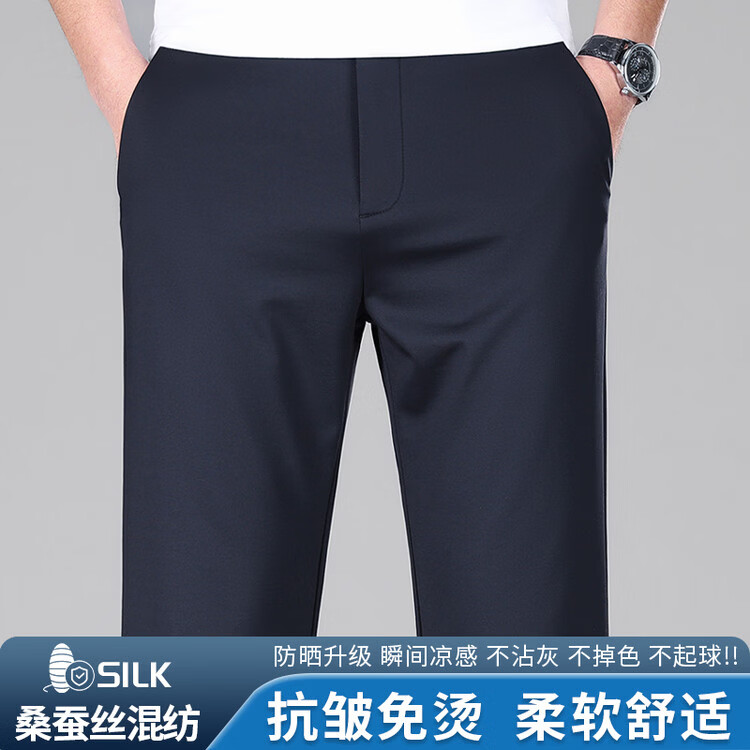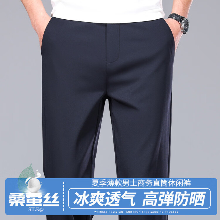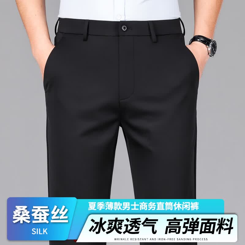 九牧王(JOEONE)2026年春夏新款男士高弹冰丝商务休闲西裤舒适透气百搭长裤 黑色 40