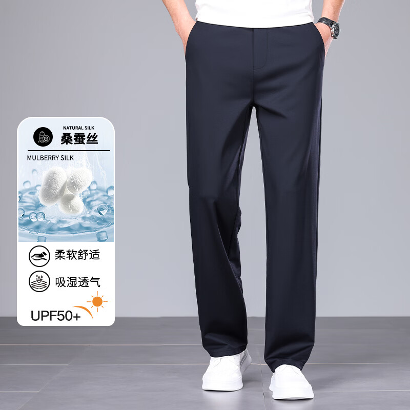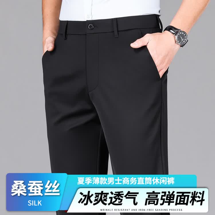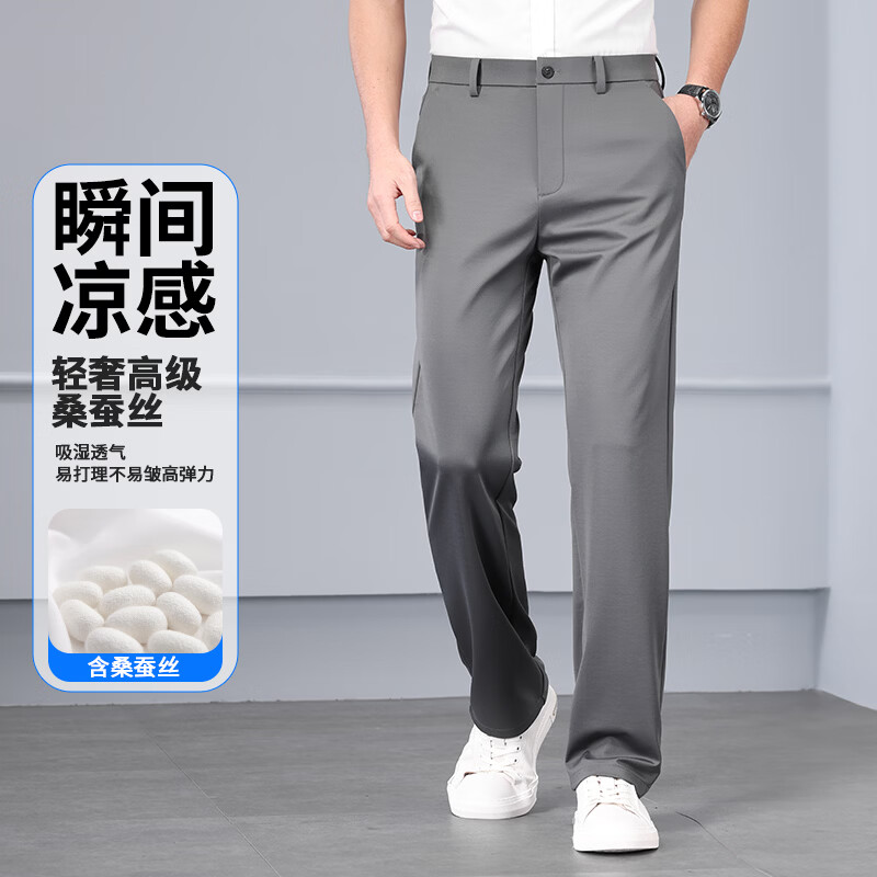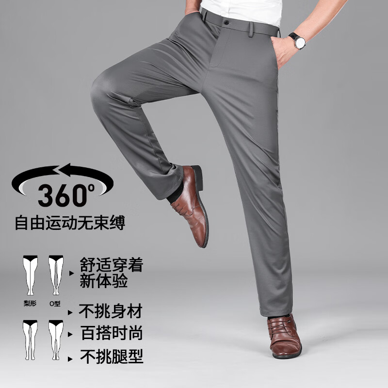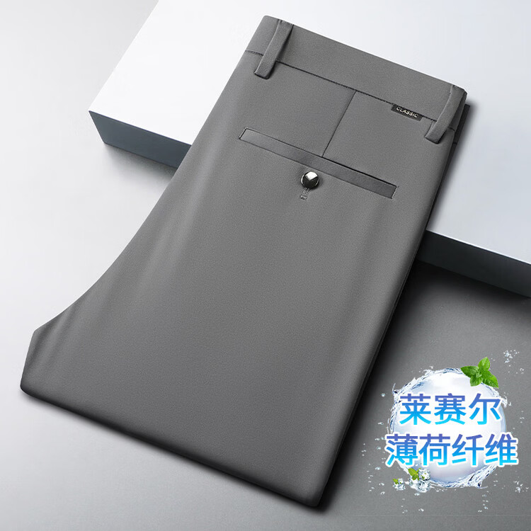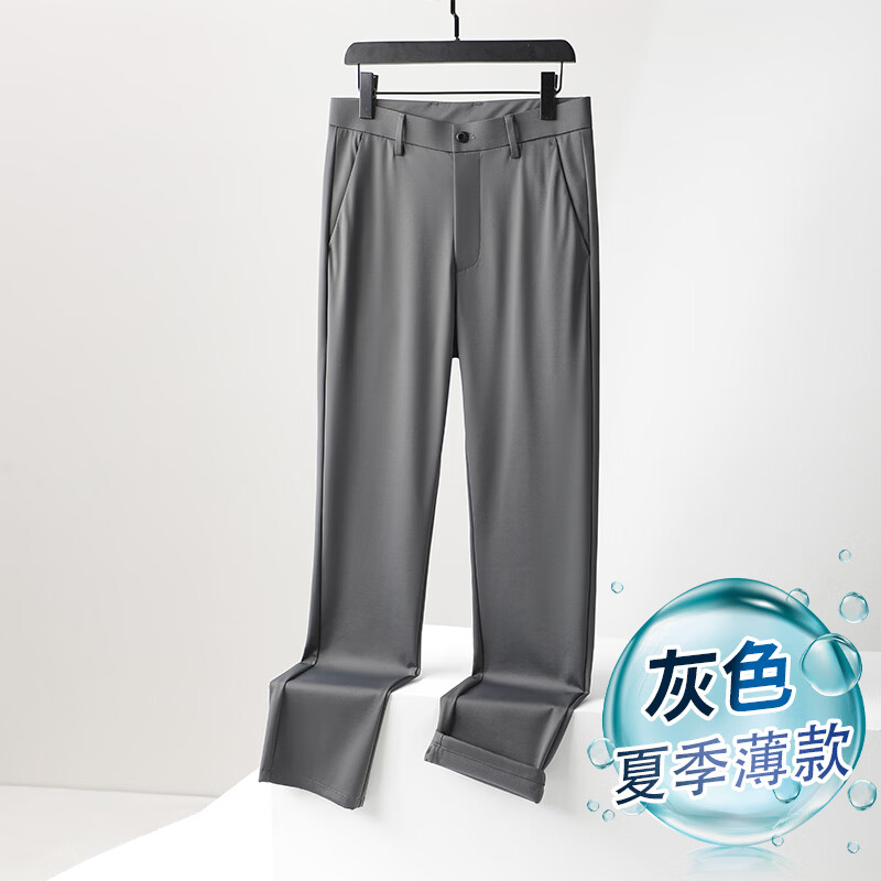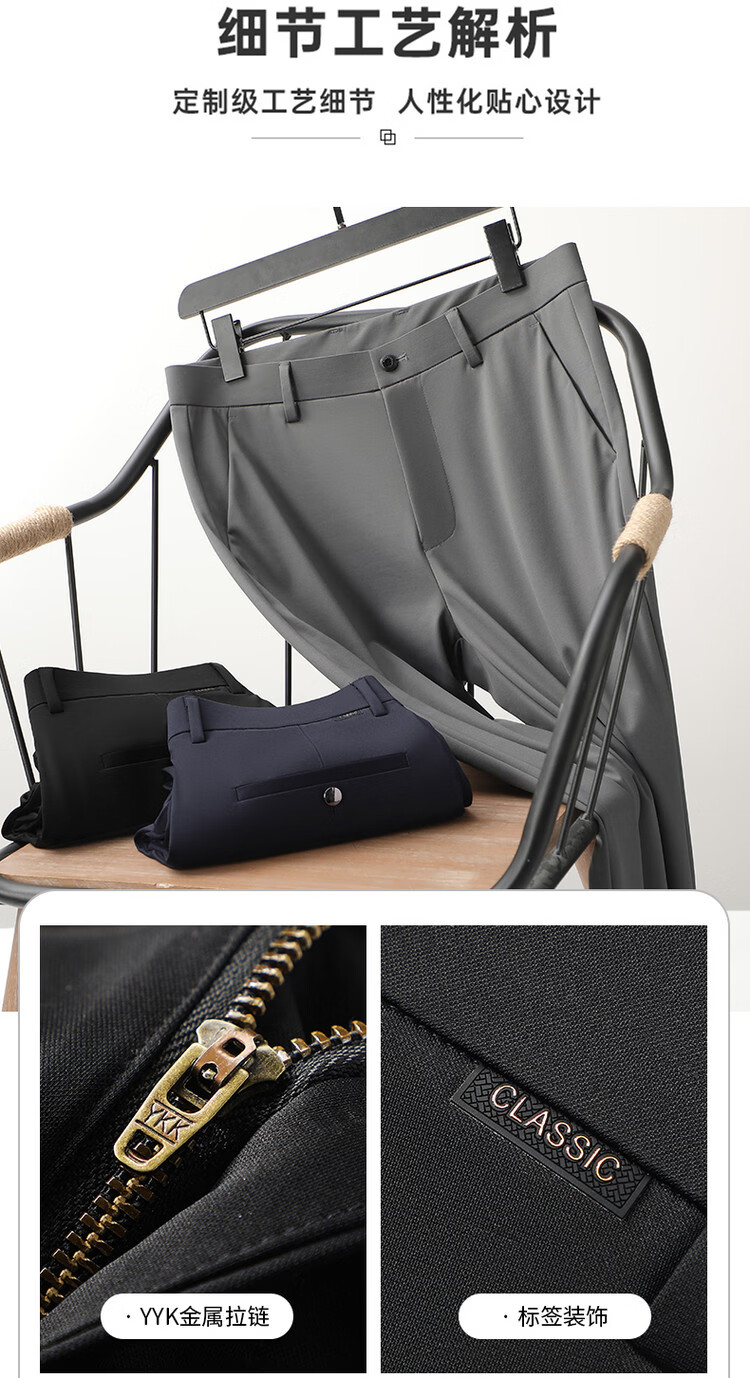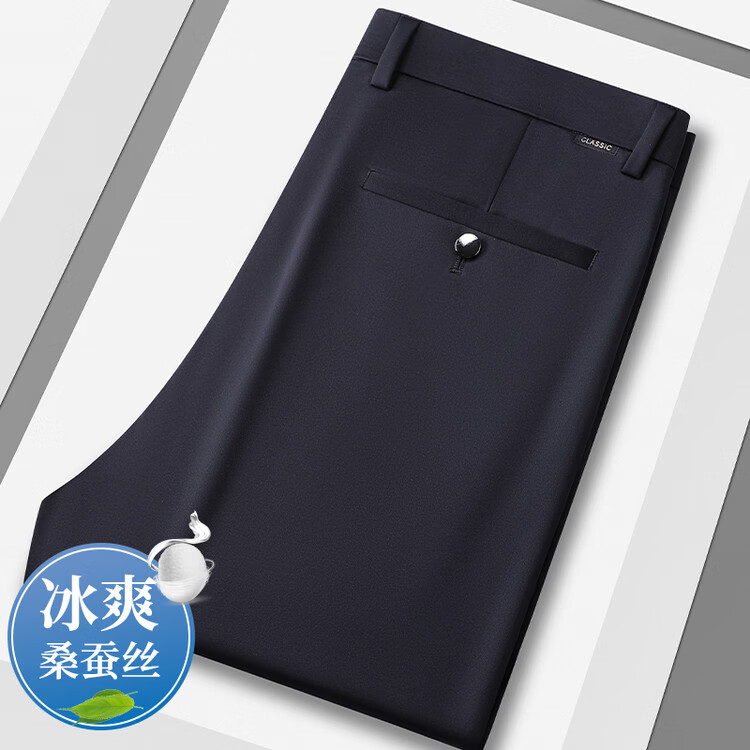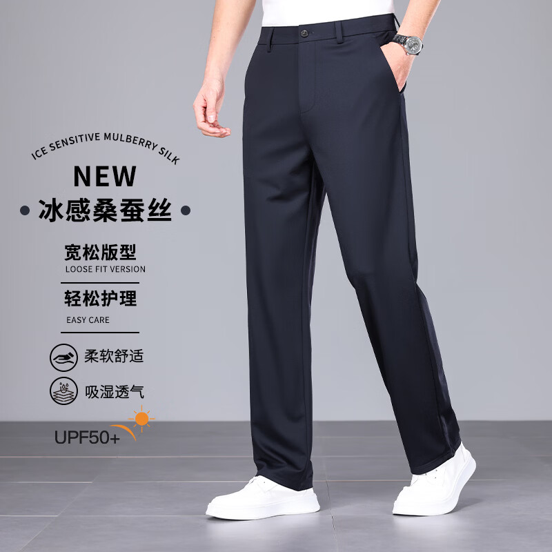 九牧王(JOEONE)2026年春夏新款男士高弹冰丝商务休闲西裤舒适透气百搭长裤 黑色 40