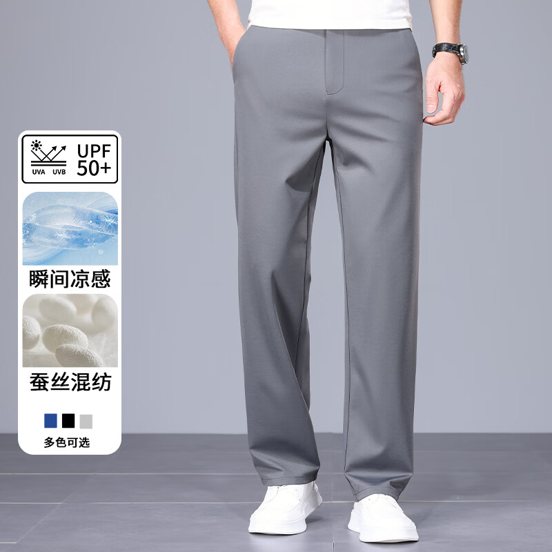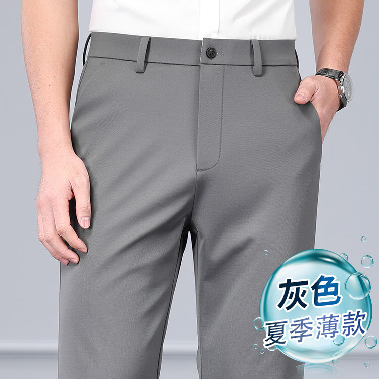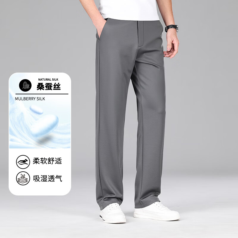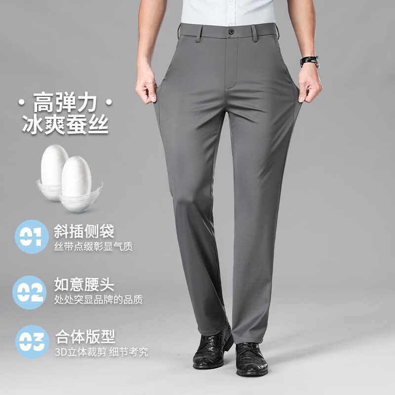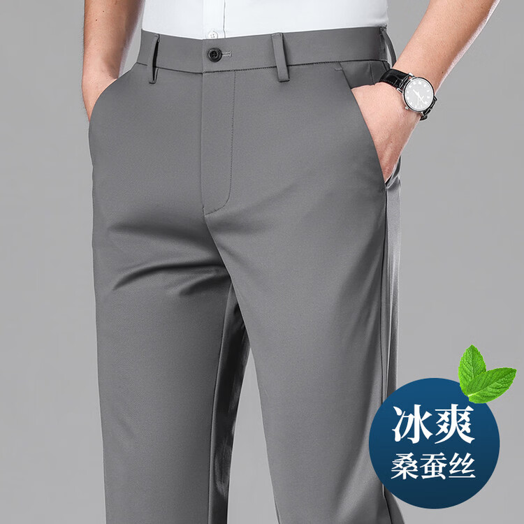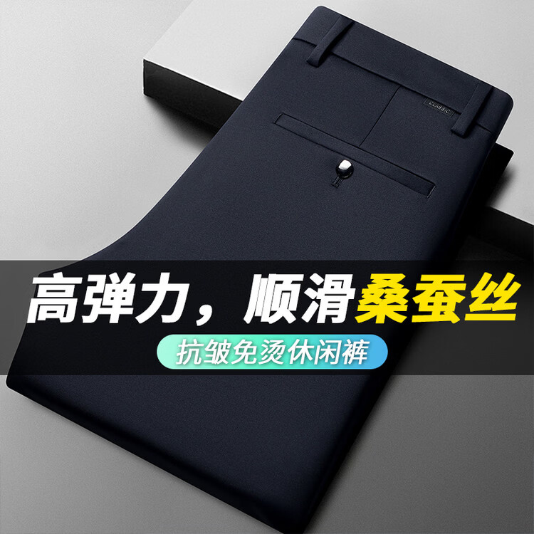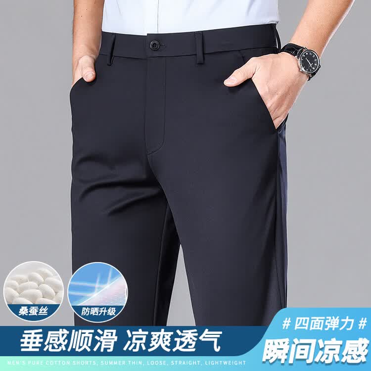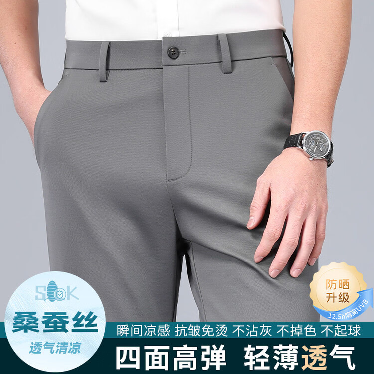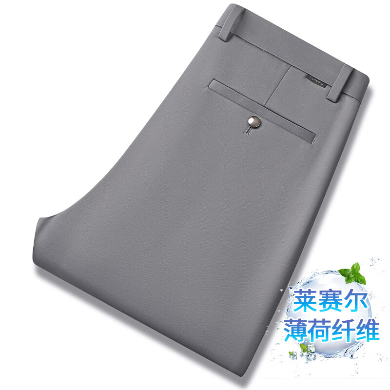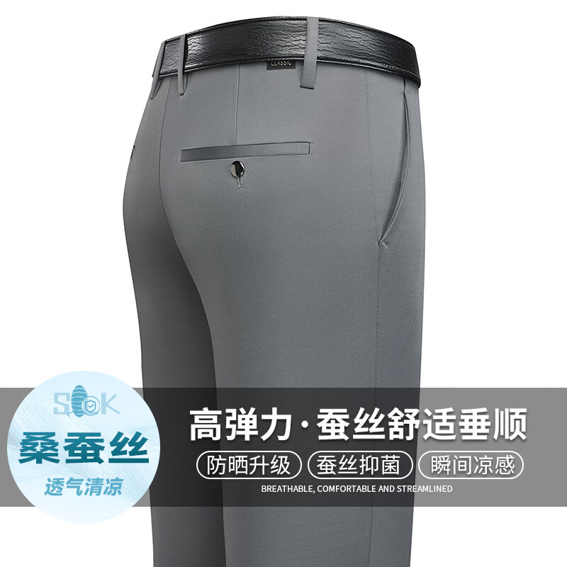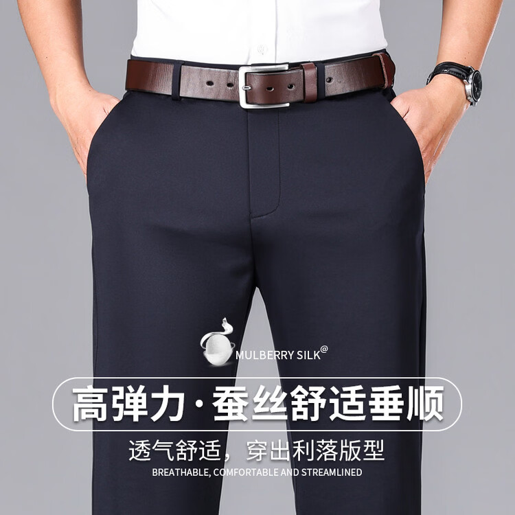 九牧王(JOEONE)2026年春夏新款男士高弹冰丝商务休闲西裤舒适透气百搭长裤 黑色 40