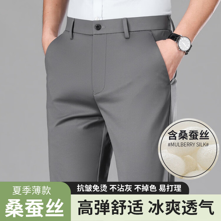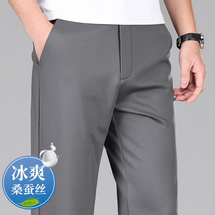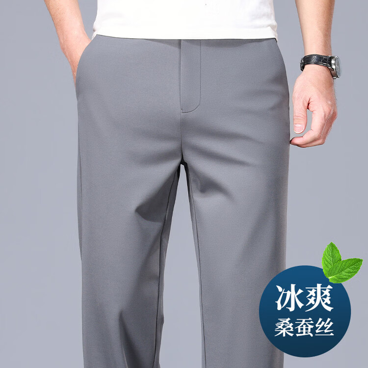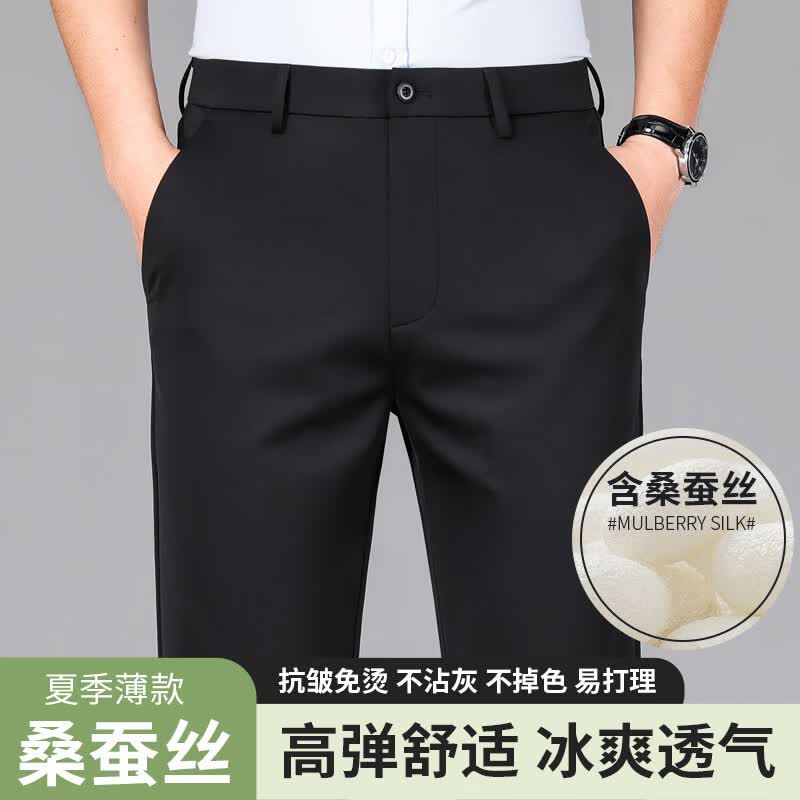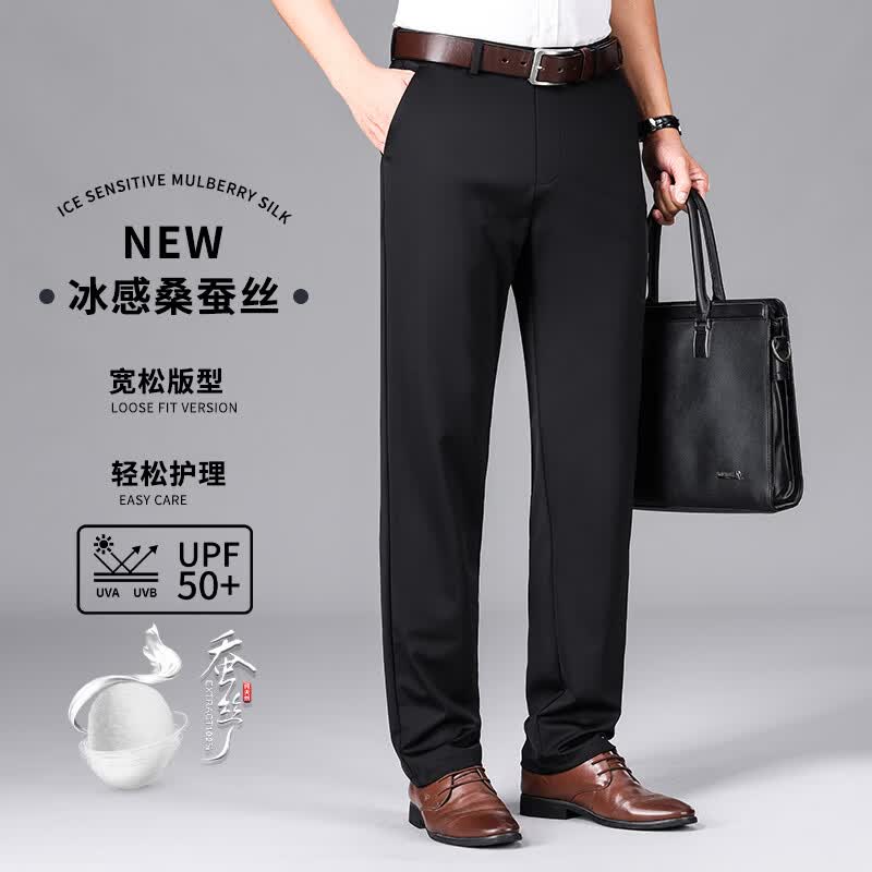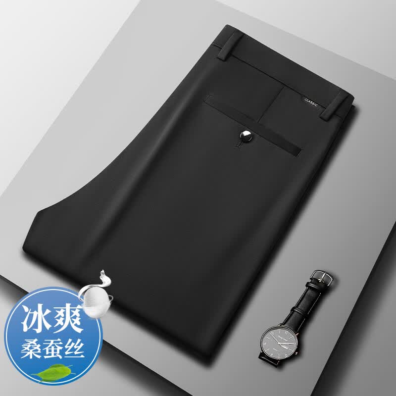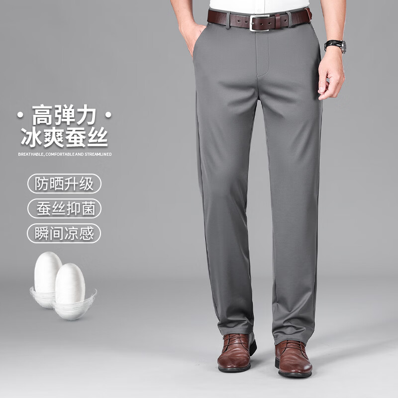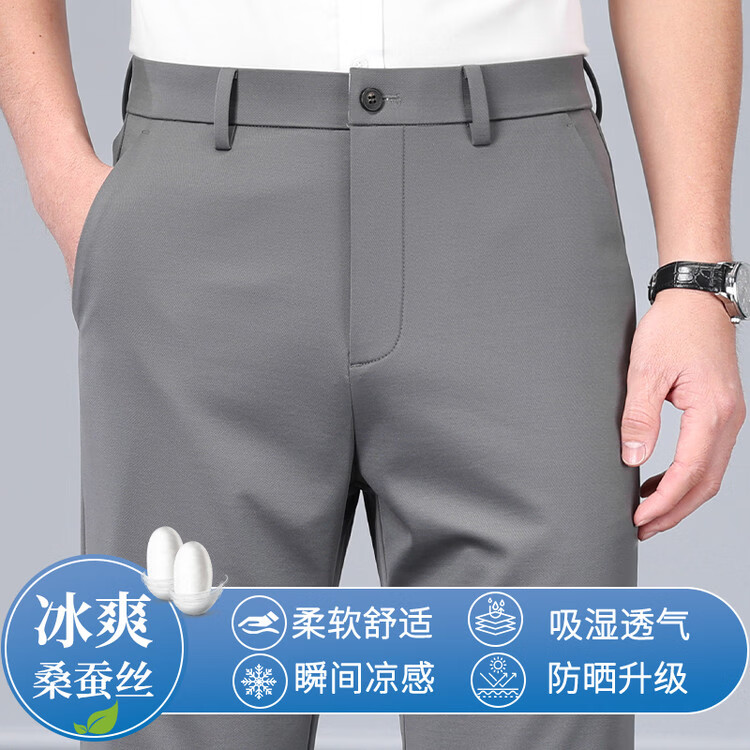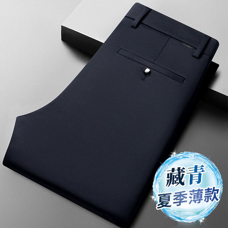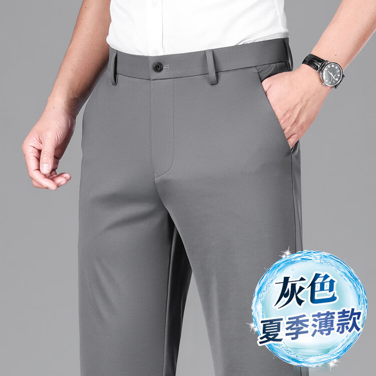 九牧王(JOEONE)2026年春夏新款男士高弹冰丝商务休闲西裤舒适透气百搭长裤 黑色 40