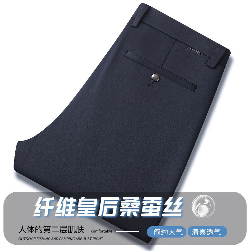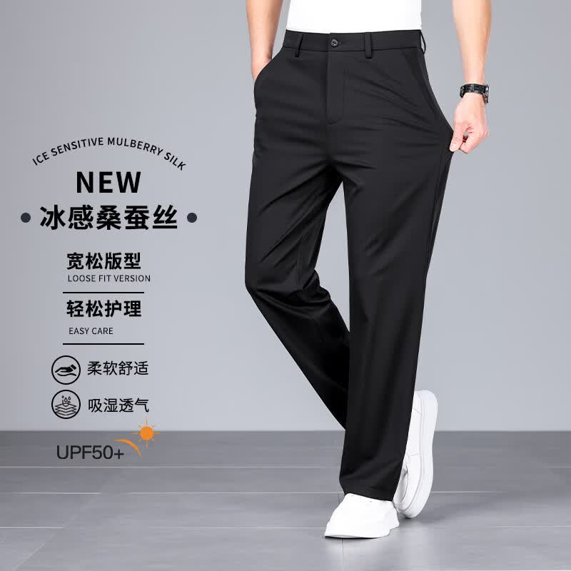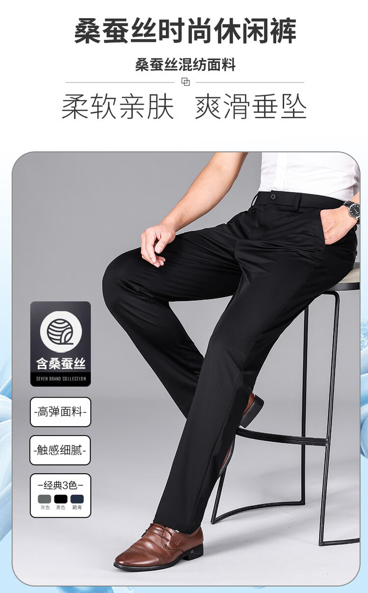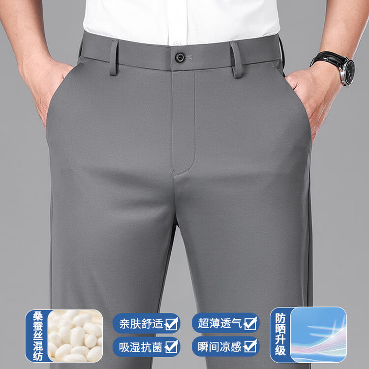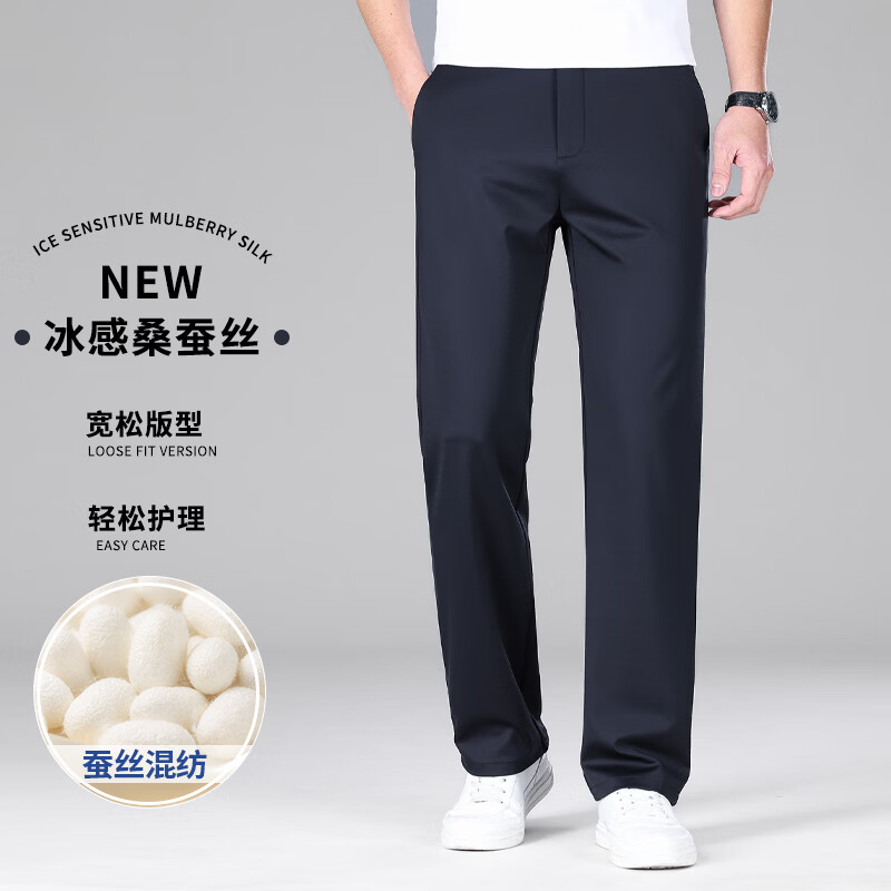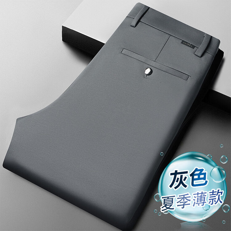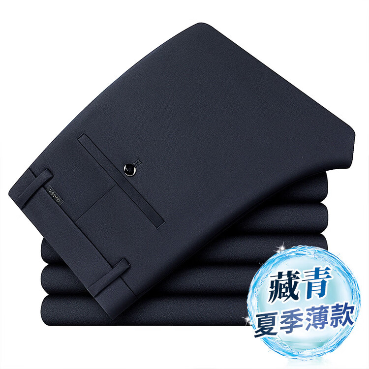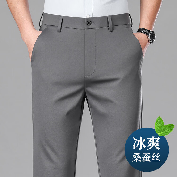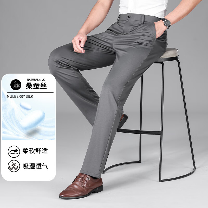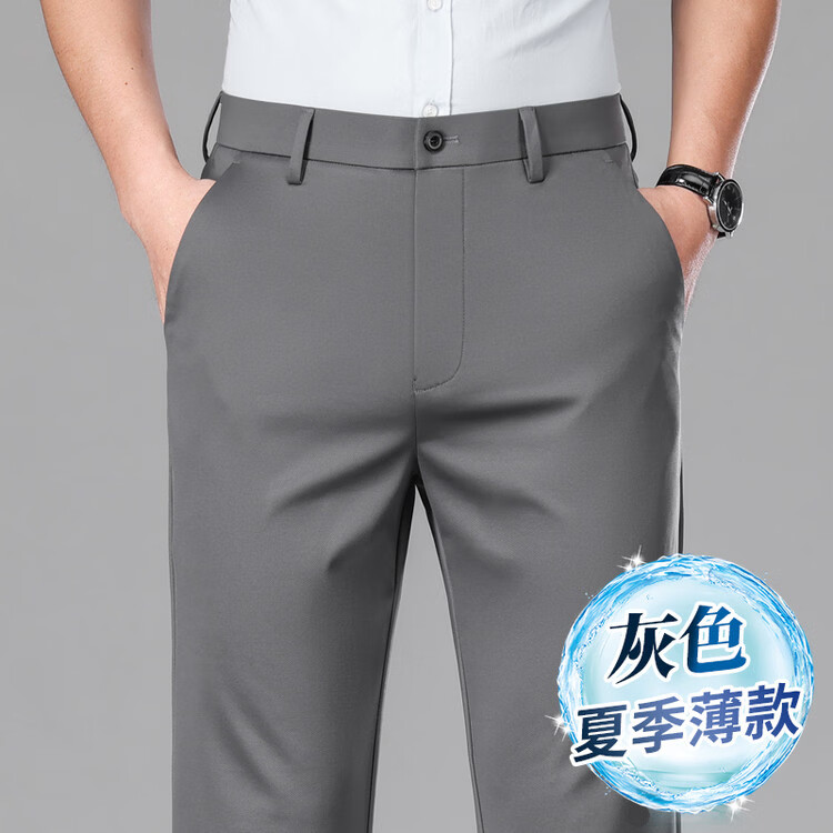 九牧王(JOEONE)2026年春夏新款男士高弹冰丝商务休闲西裤舒适透气百搭长裤 黑色 40