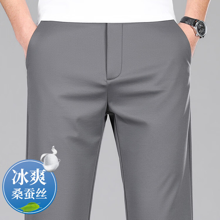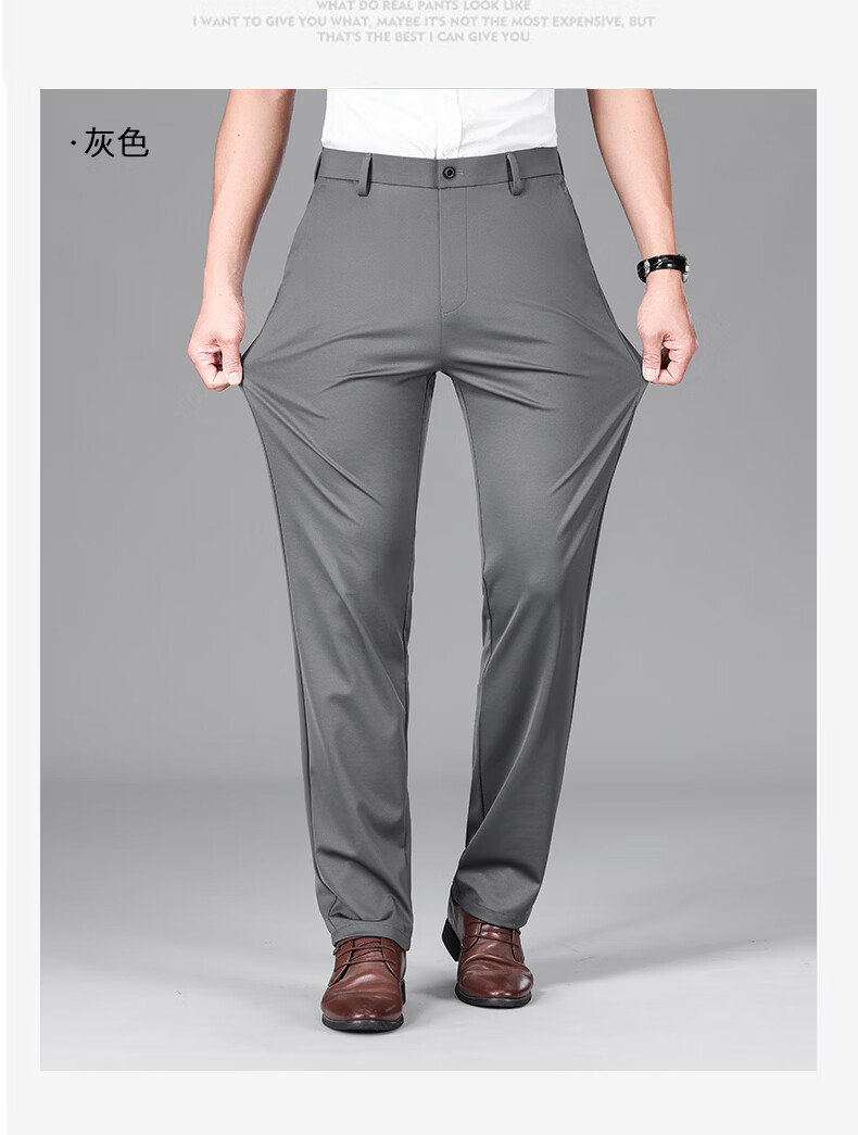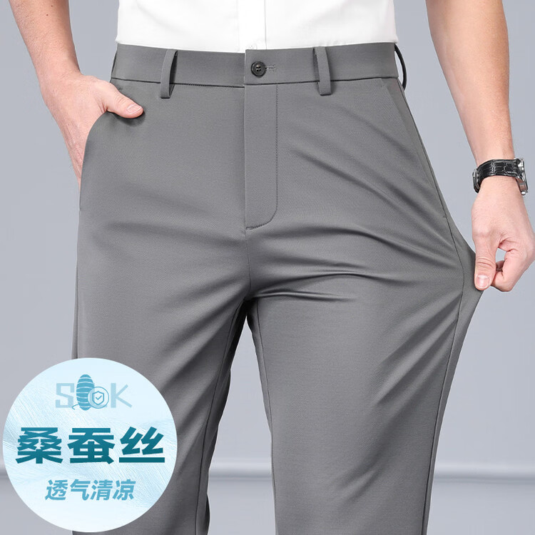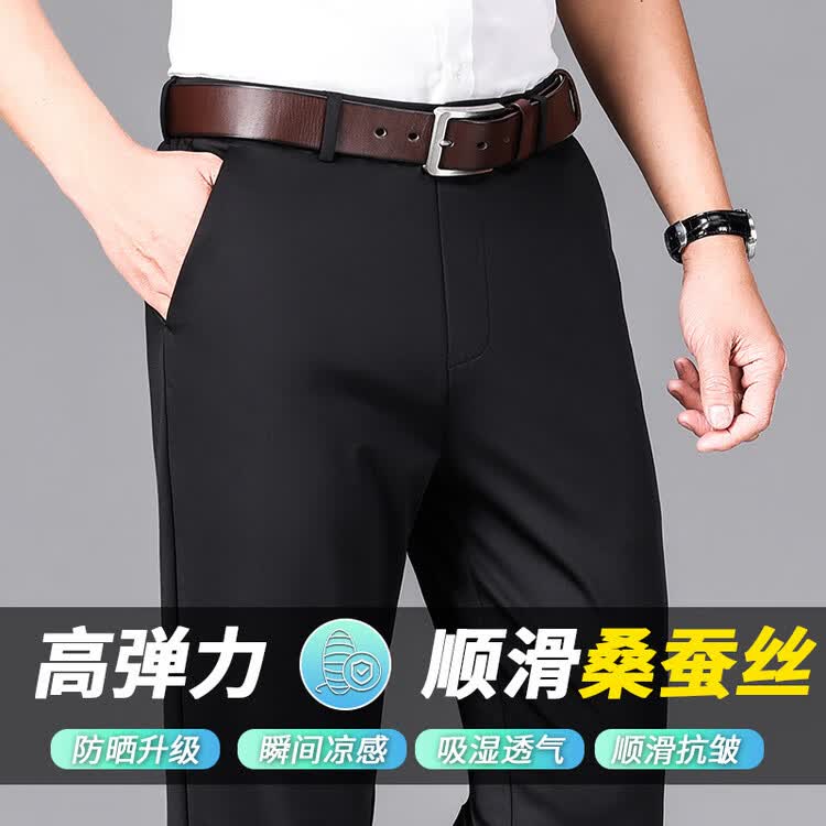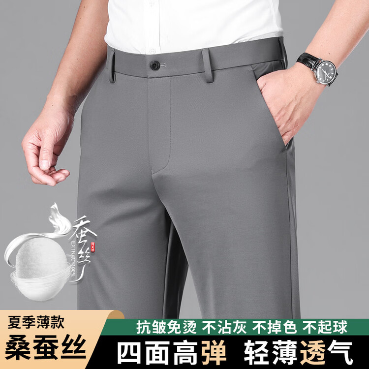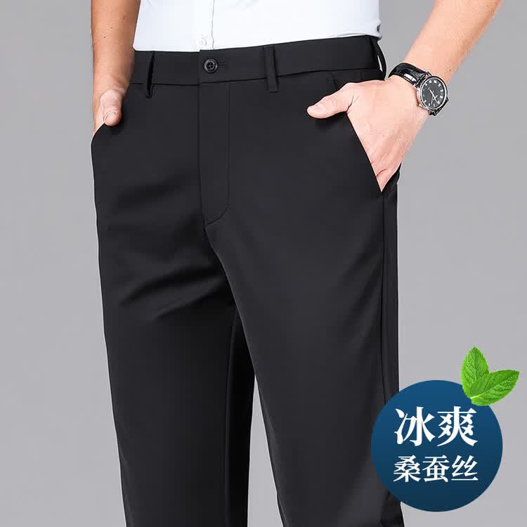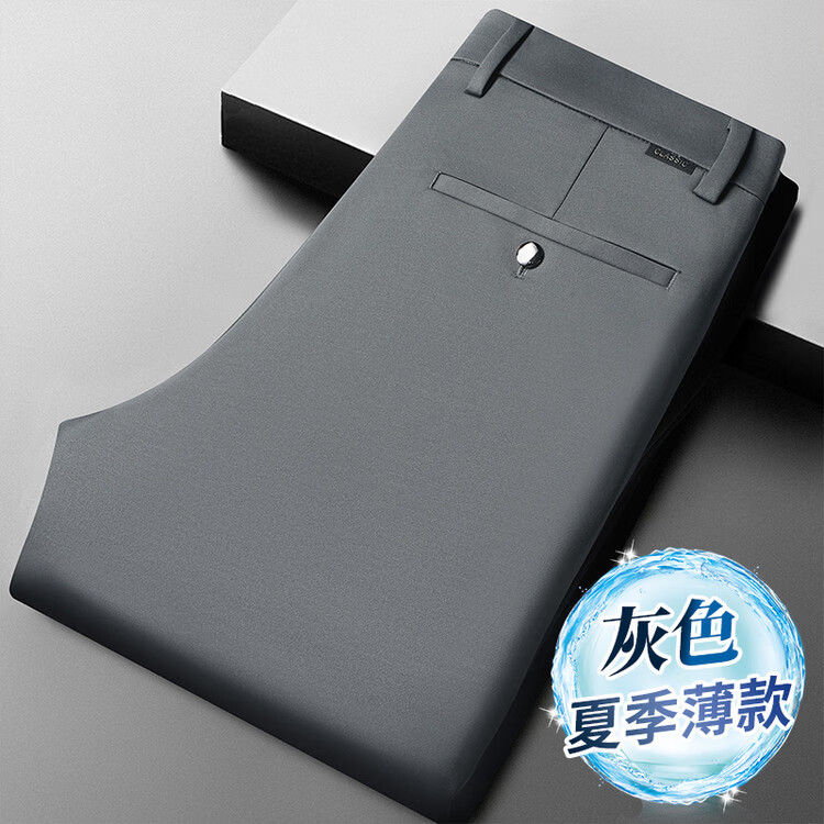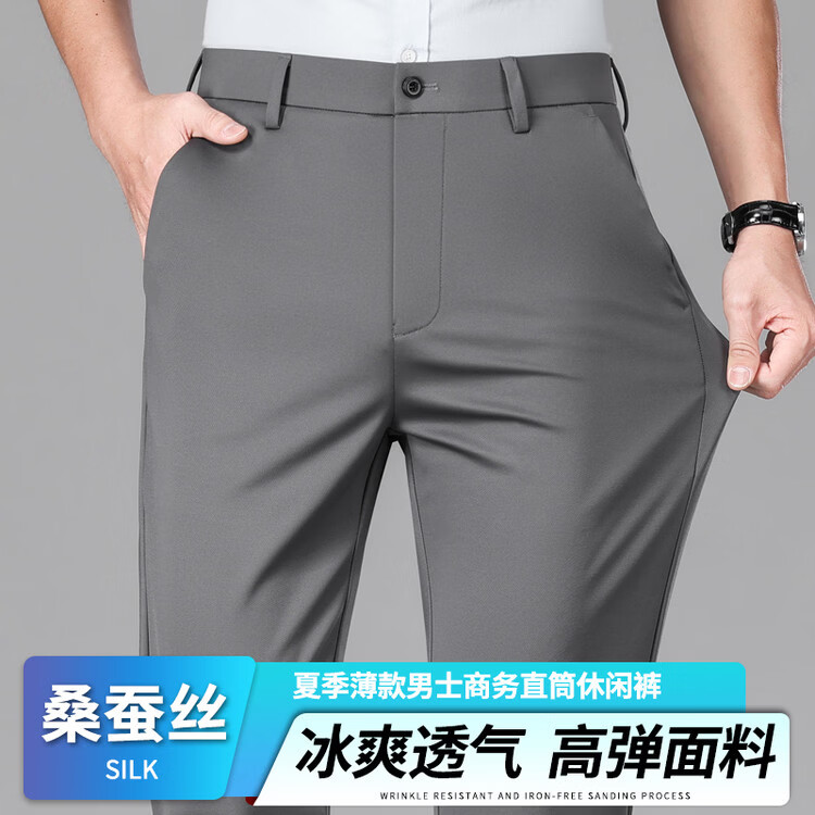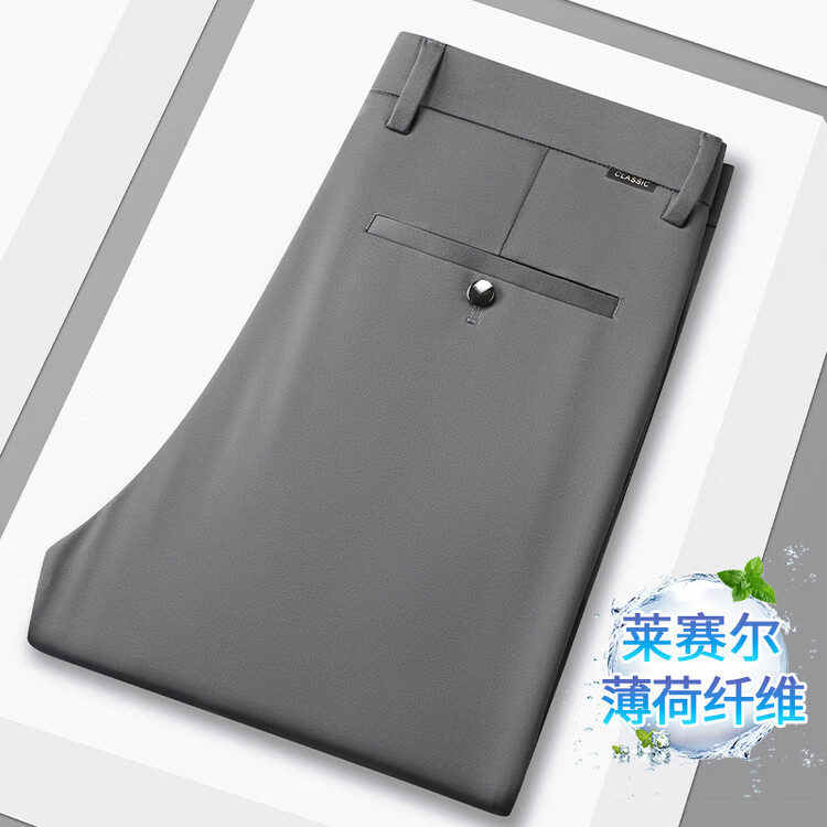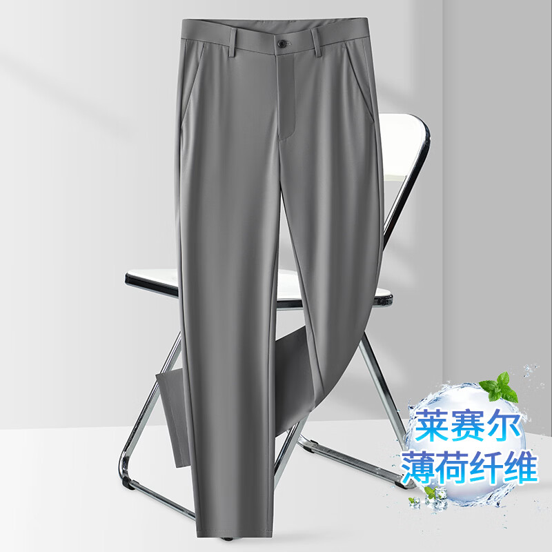 九牧王(JOEONE)2026年春夏新款男士高弹冰丝商务休闲西裤舒适透气百搭长裤 黑色 40