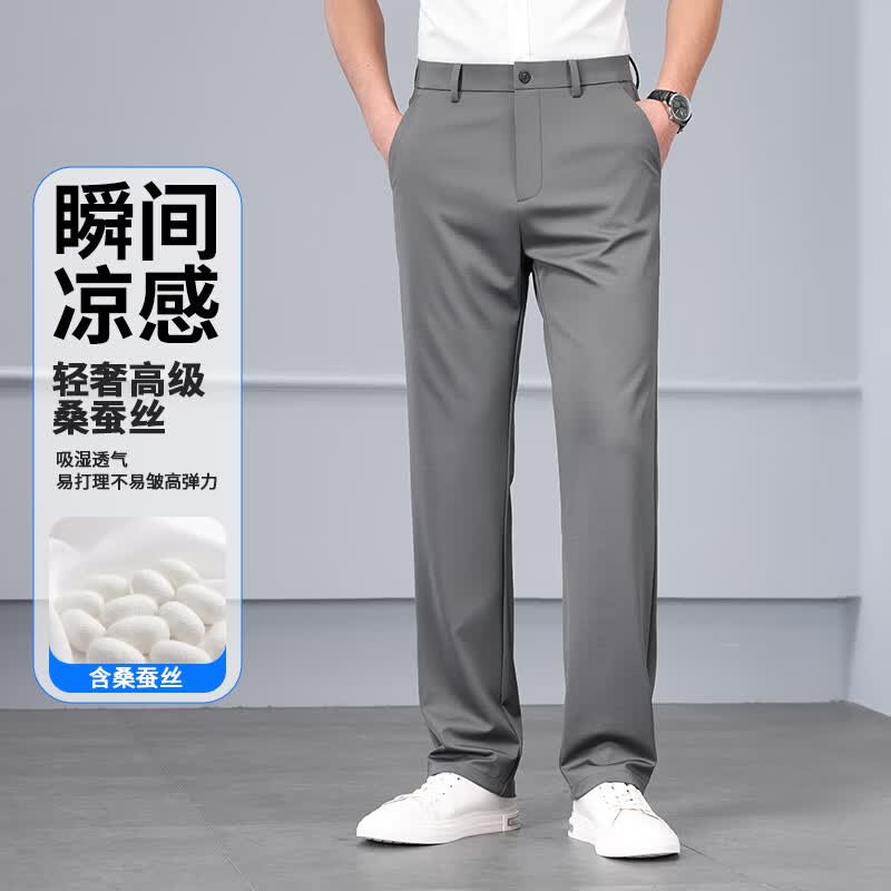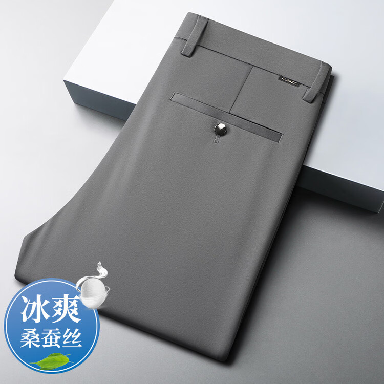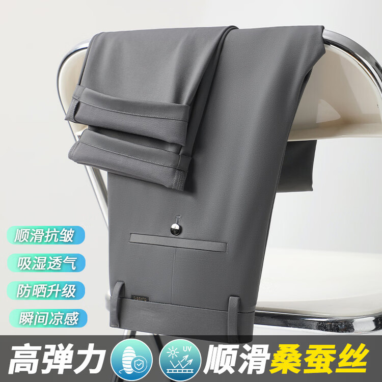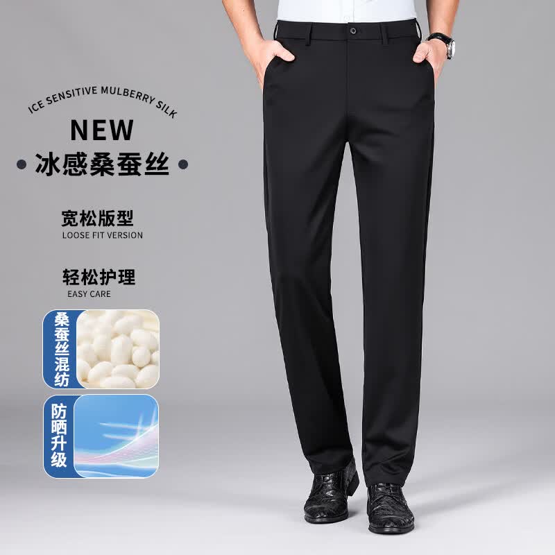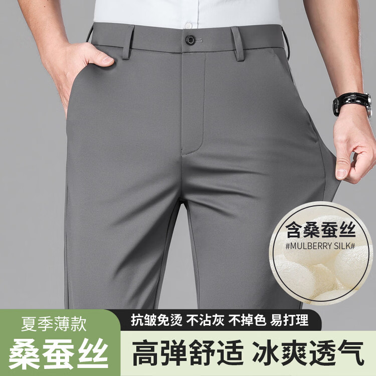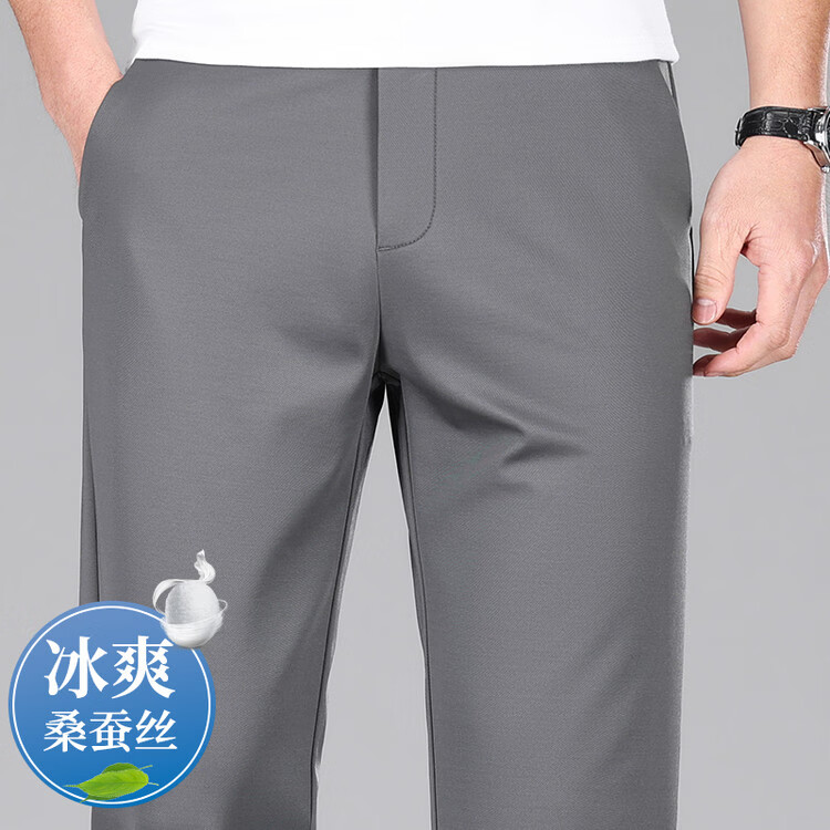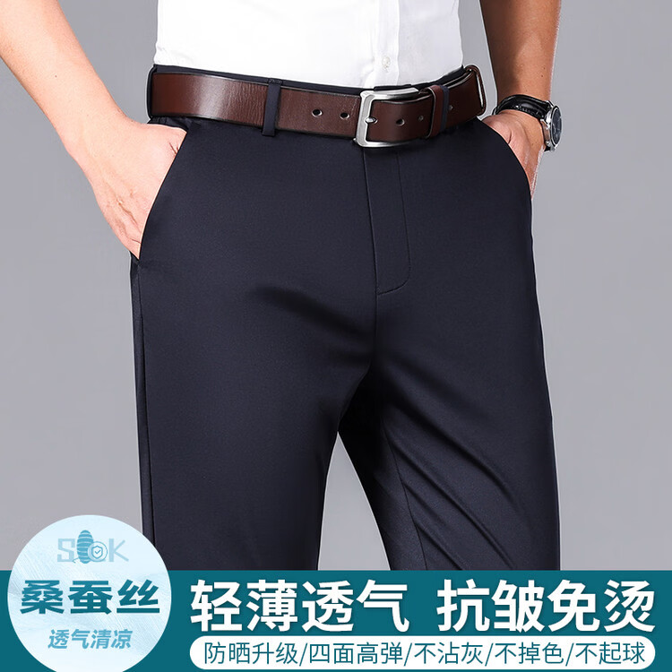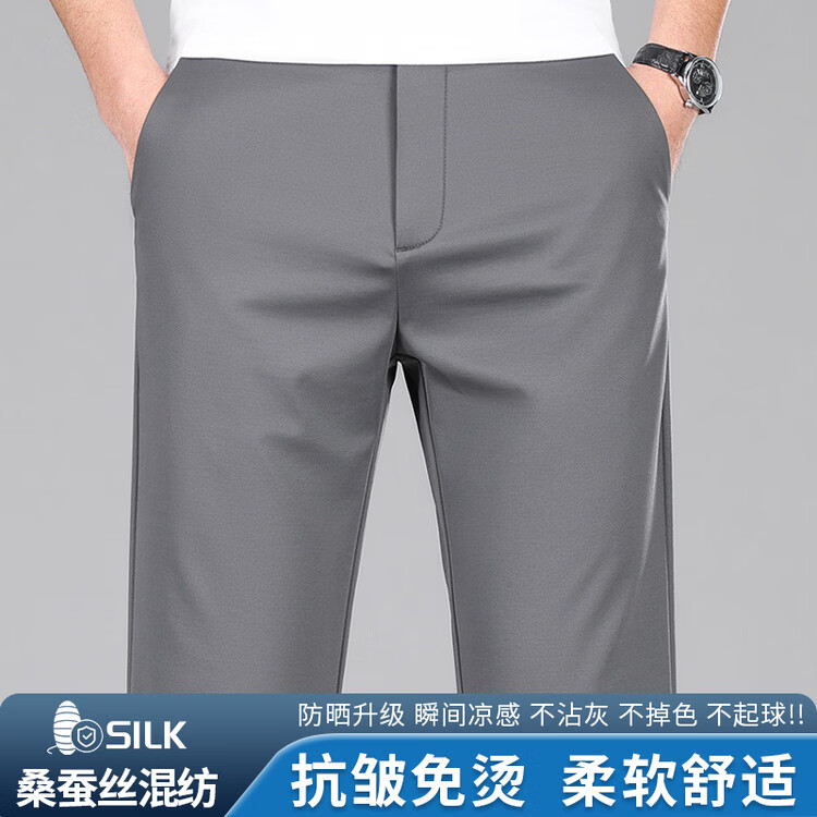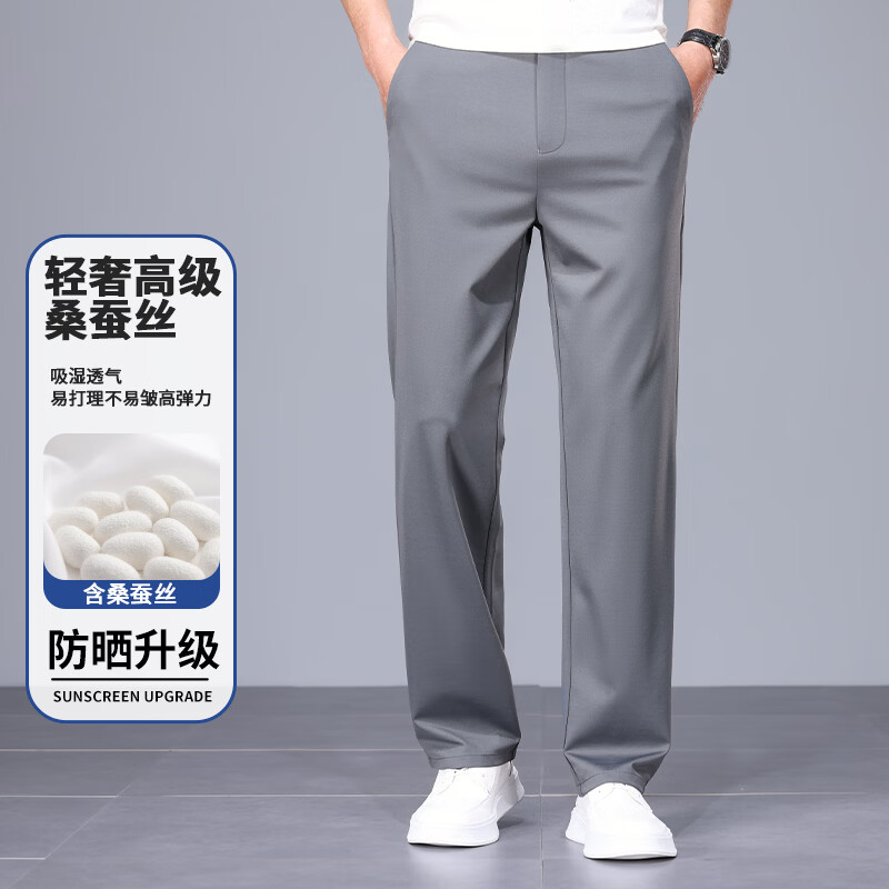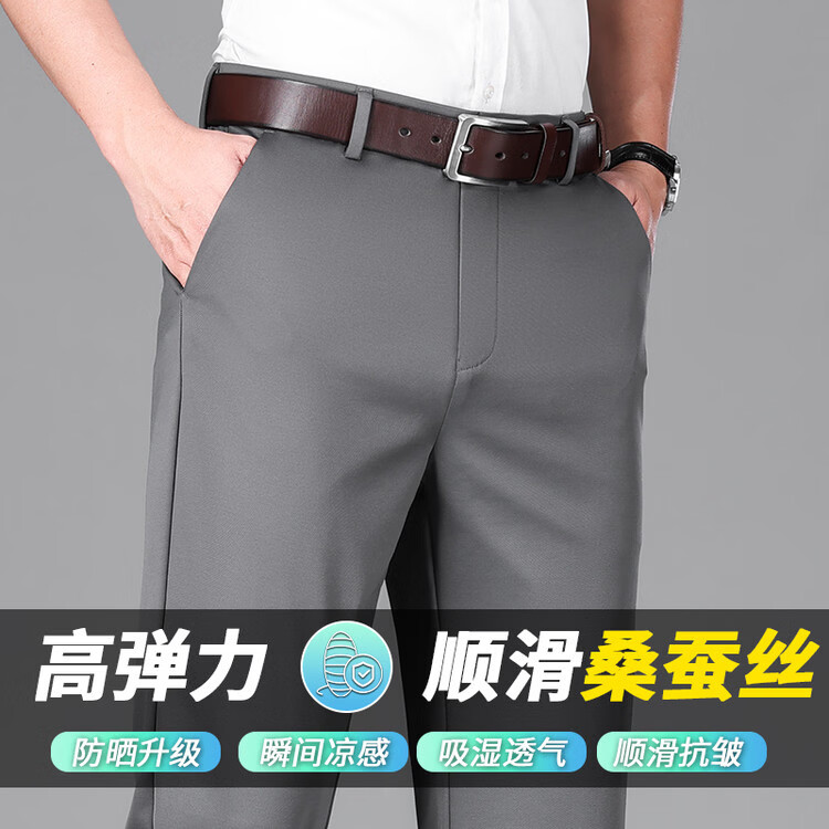 九牧王(JOEONE)2026年春夏新款男士高弹冰丝商务休闲西裤舒适透气百搭长裤 黑色 40