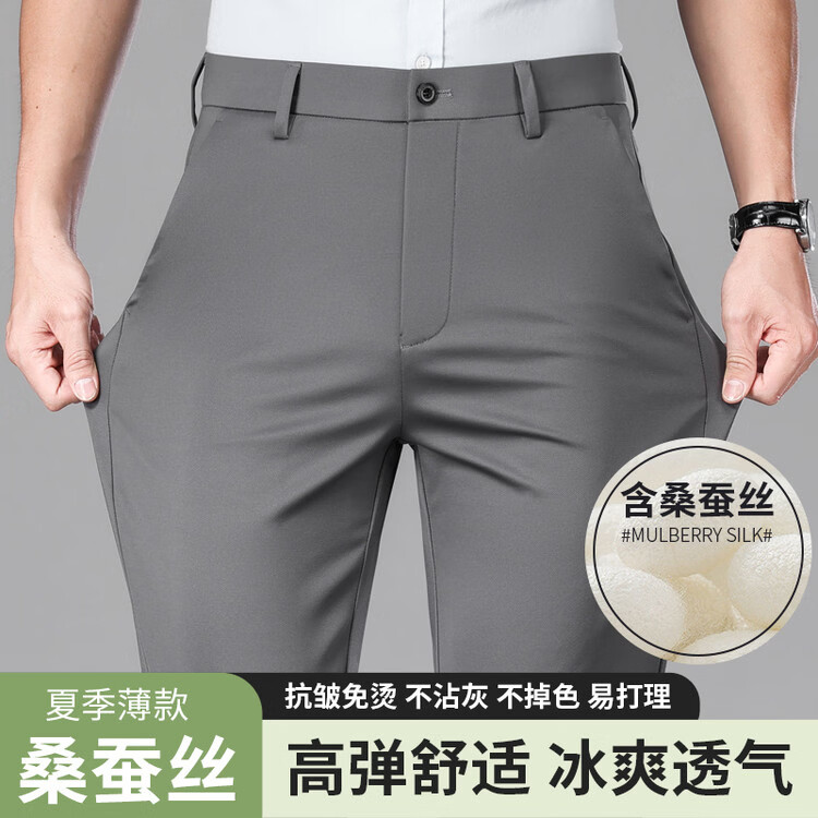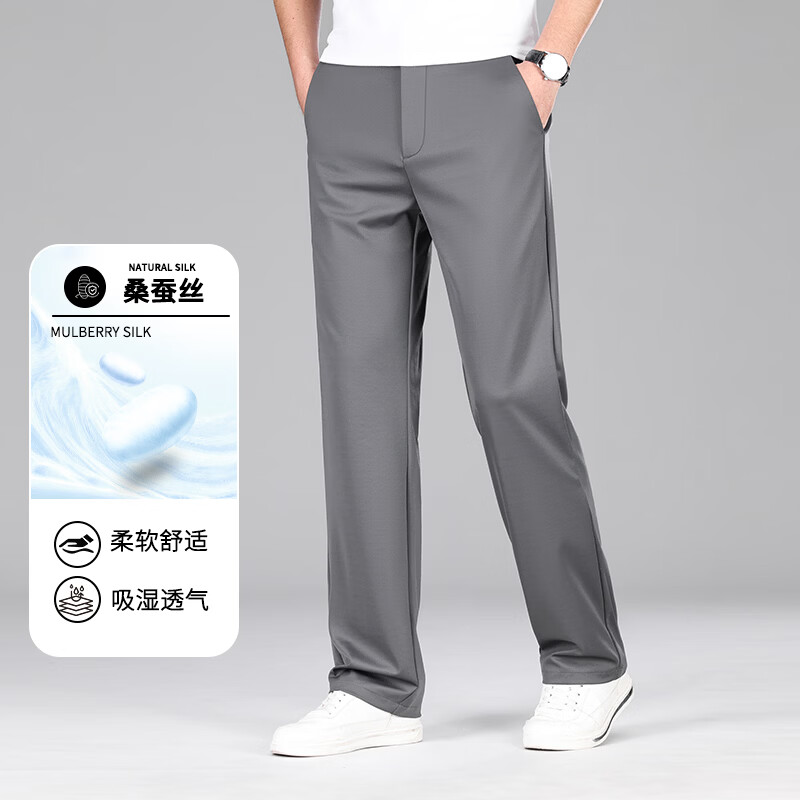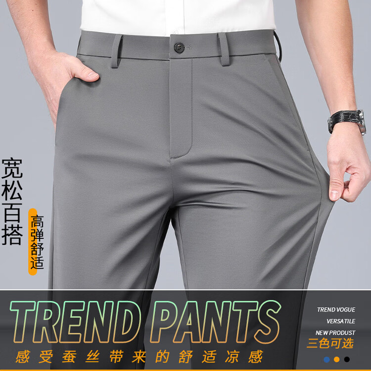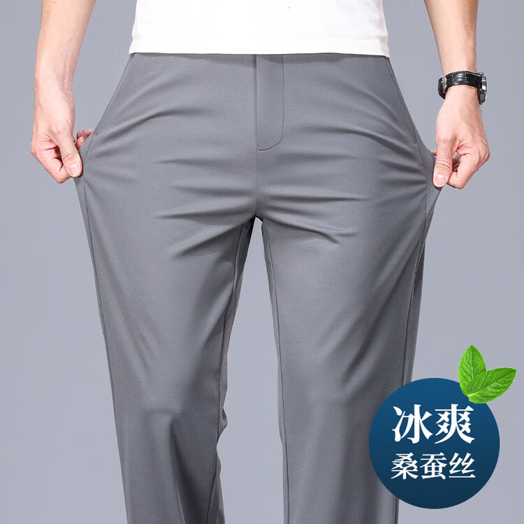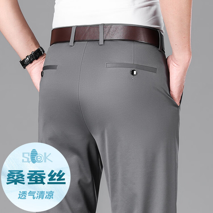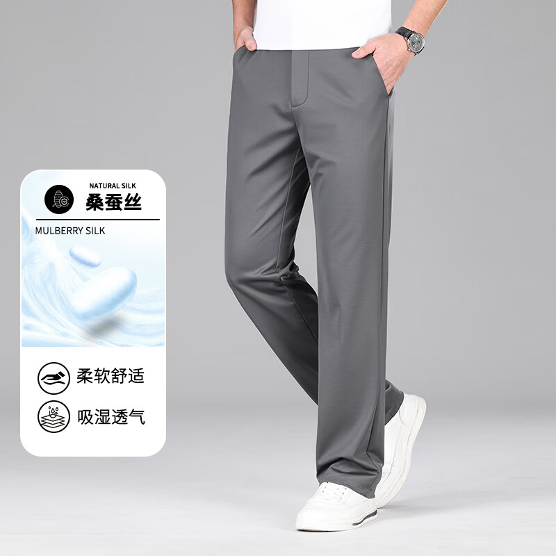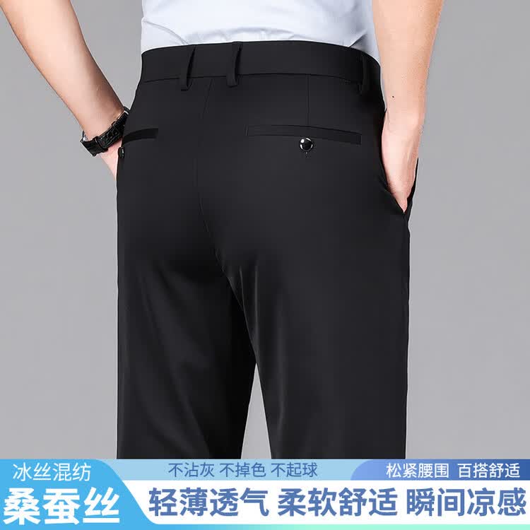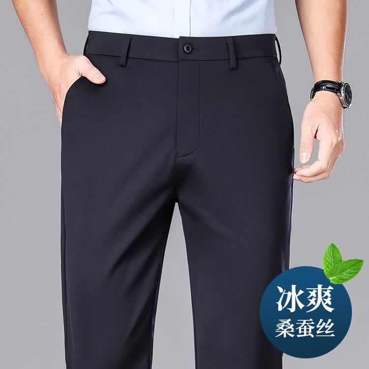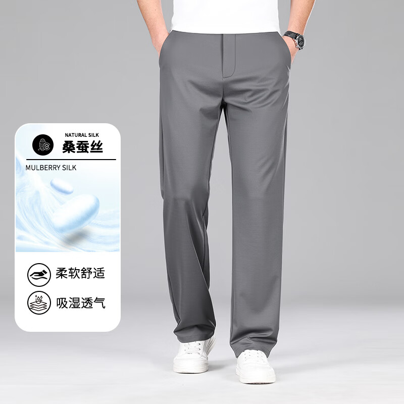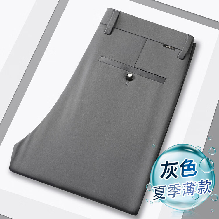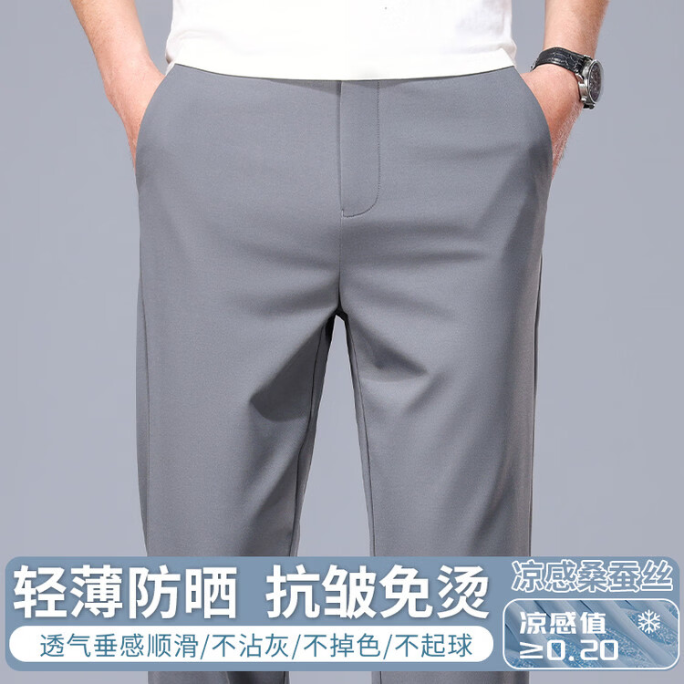 九牧王(JOEONE)2026年春夏新款男士高弹冰丝商务休闲西裤舒适透气百搭长裤 黑色 40