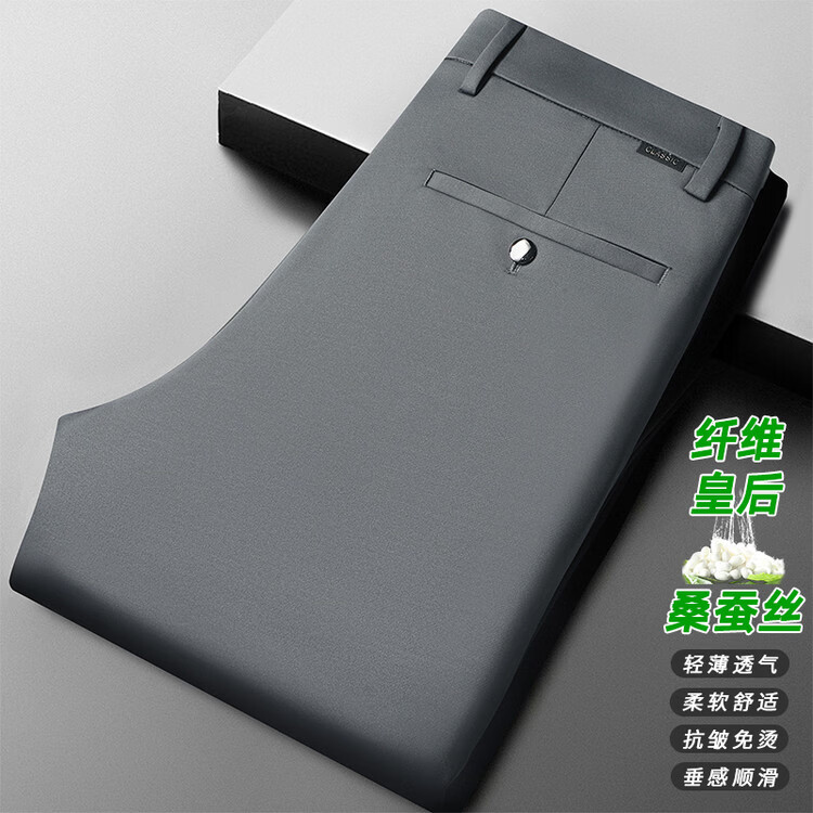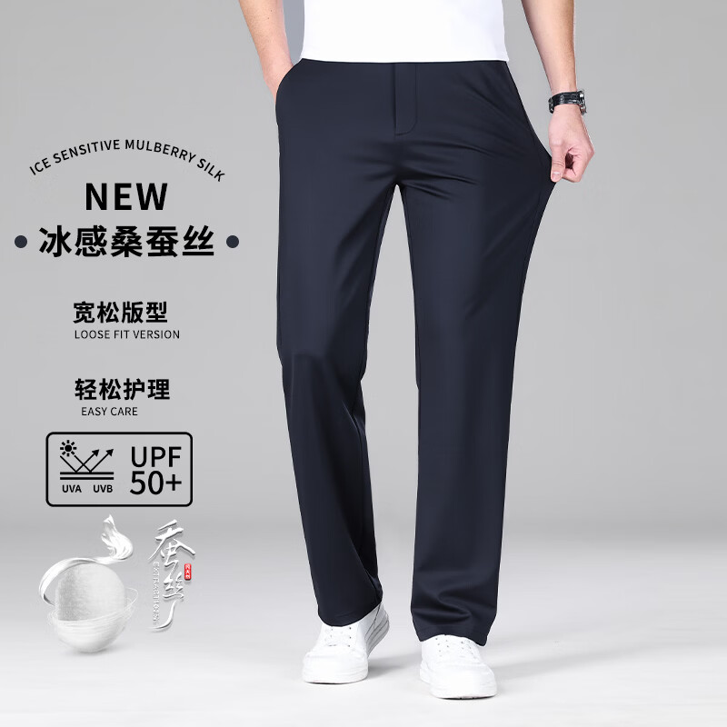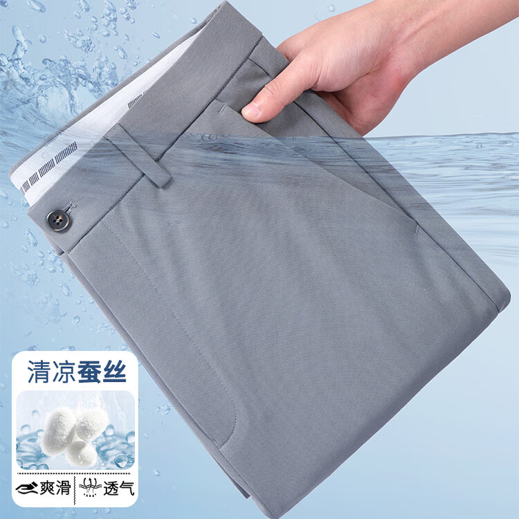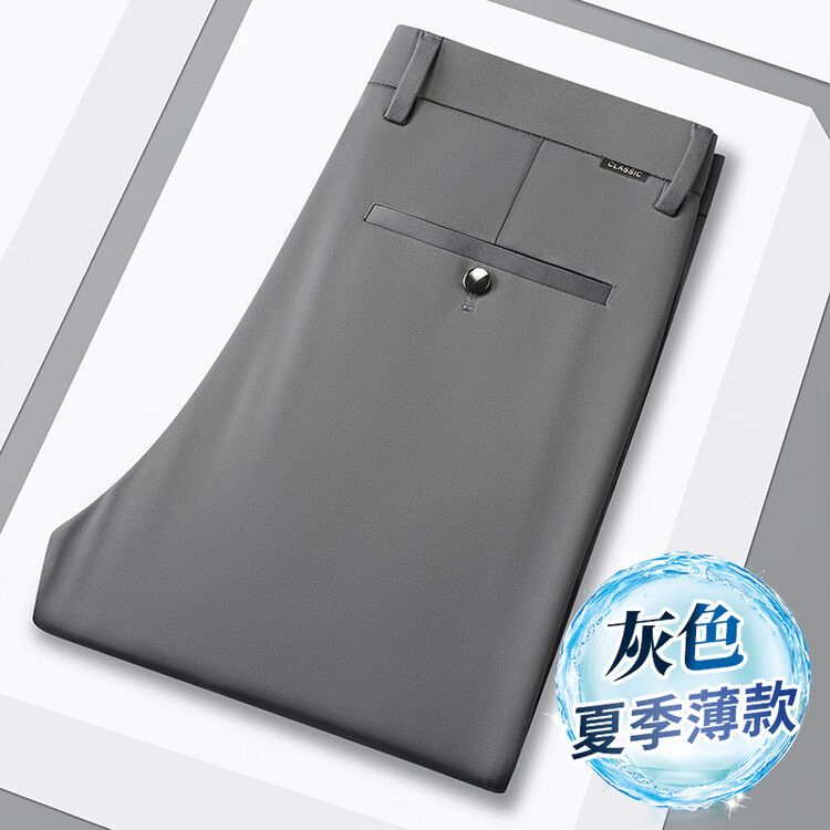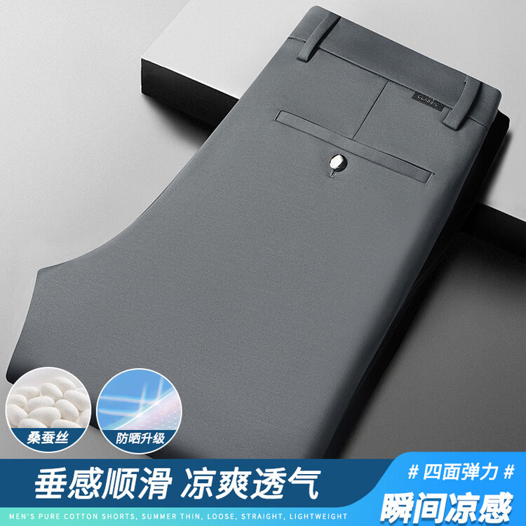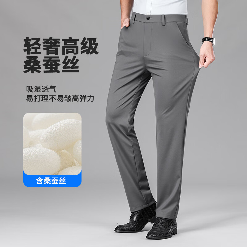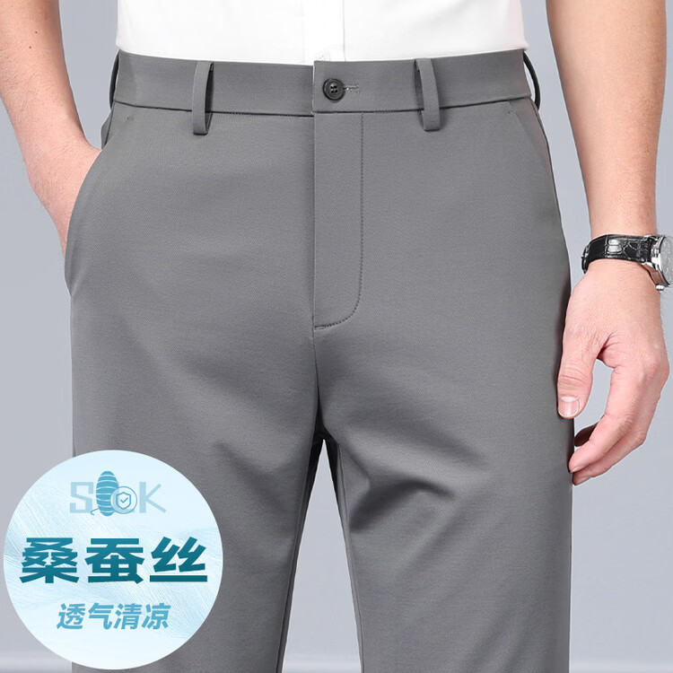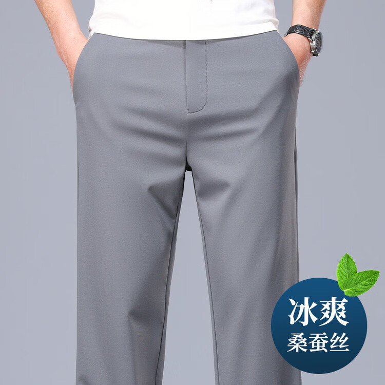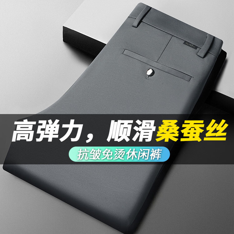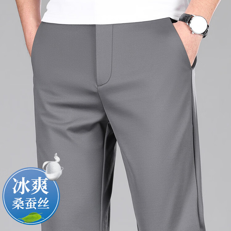 九牧王(JOEONE)2026年春夏新款男士高弹冰丝商务休闲西裤舒适透气百搭长裤 黑色 40