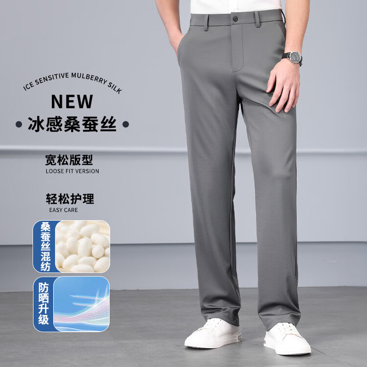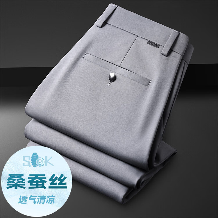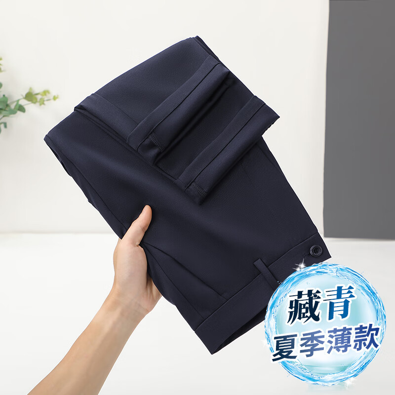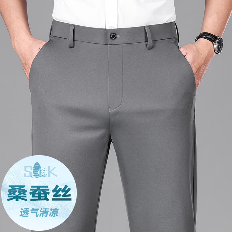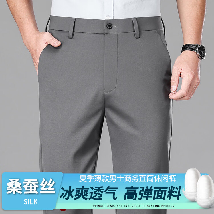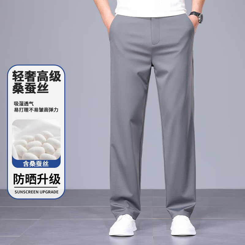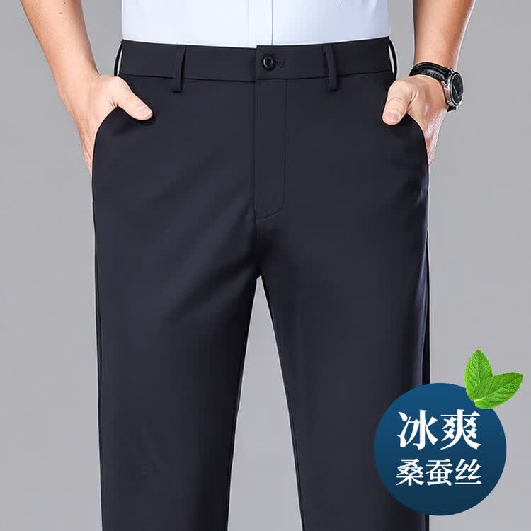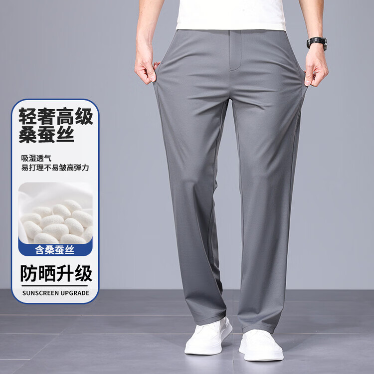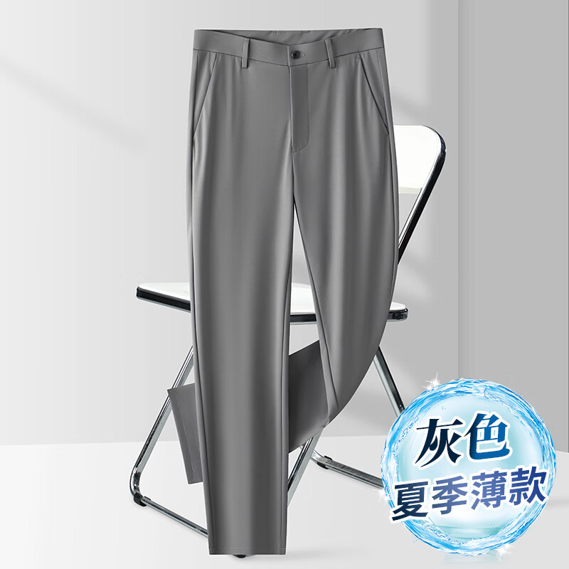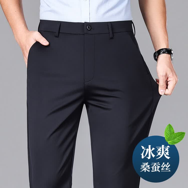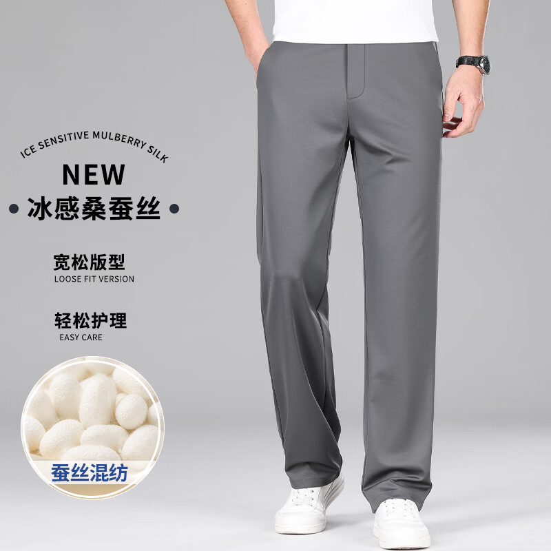九牧王(JOEONE)2026年春夏新款男士高弹冰丝商务休闲西裤舒适透气百搭长裤 黑色 40