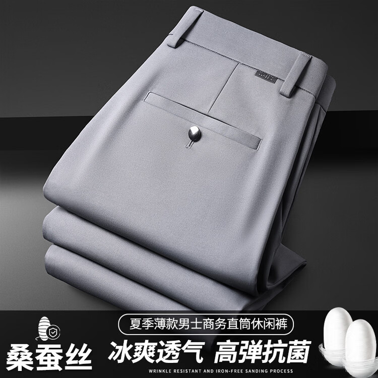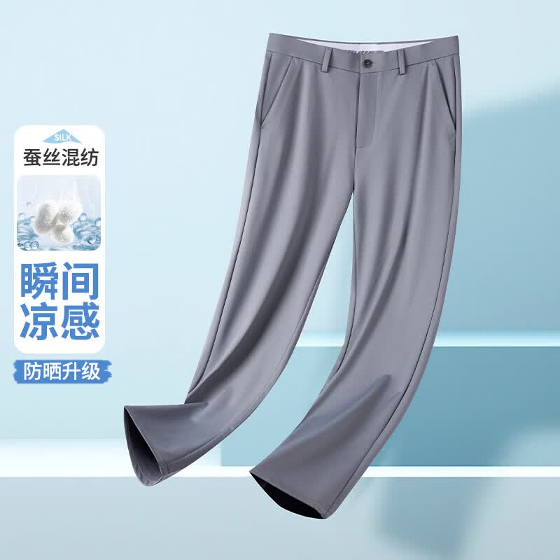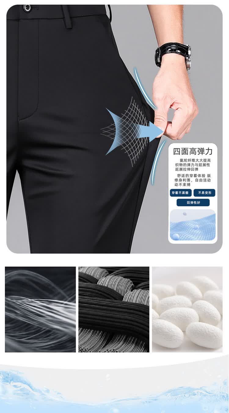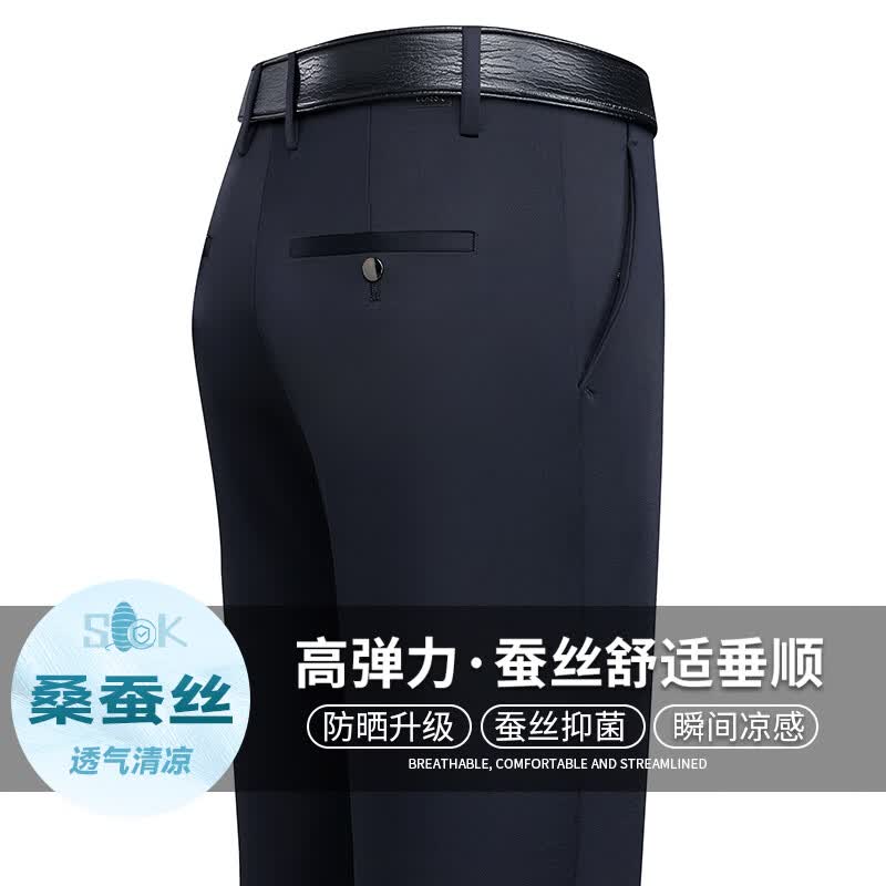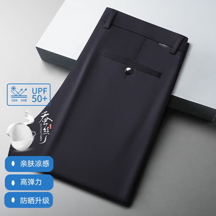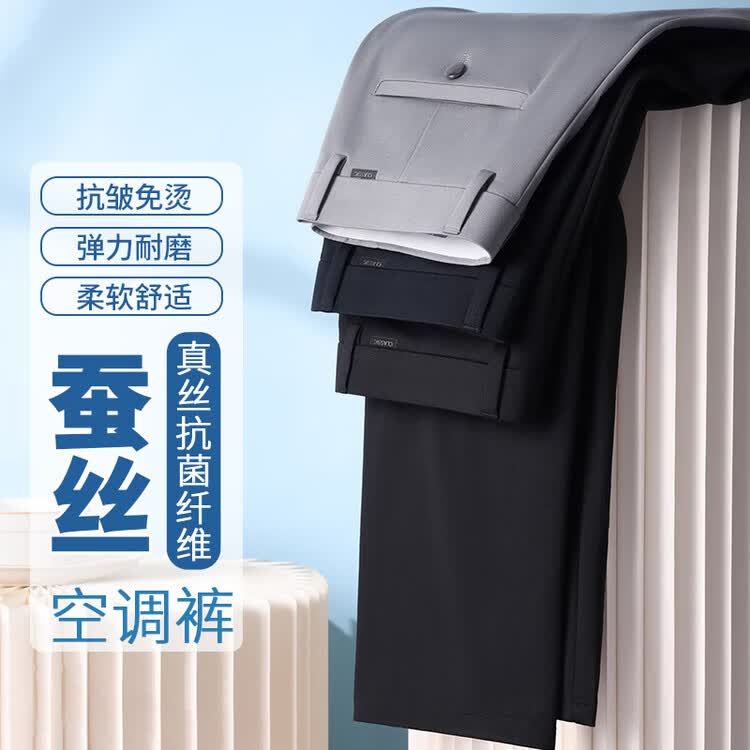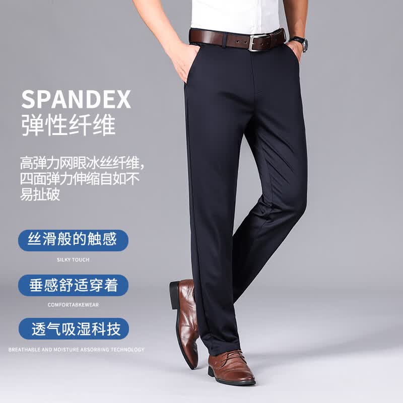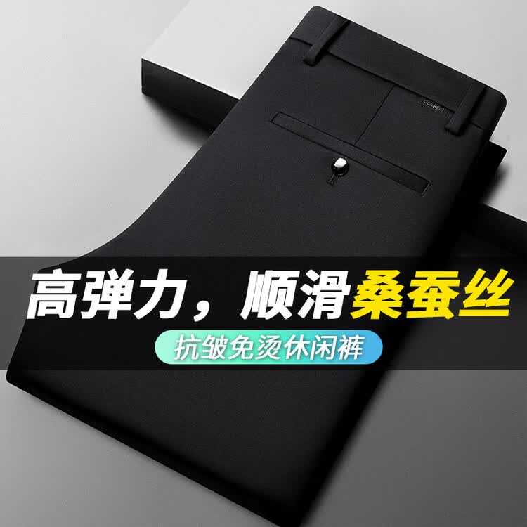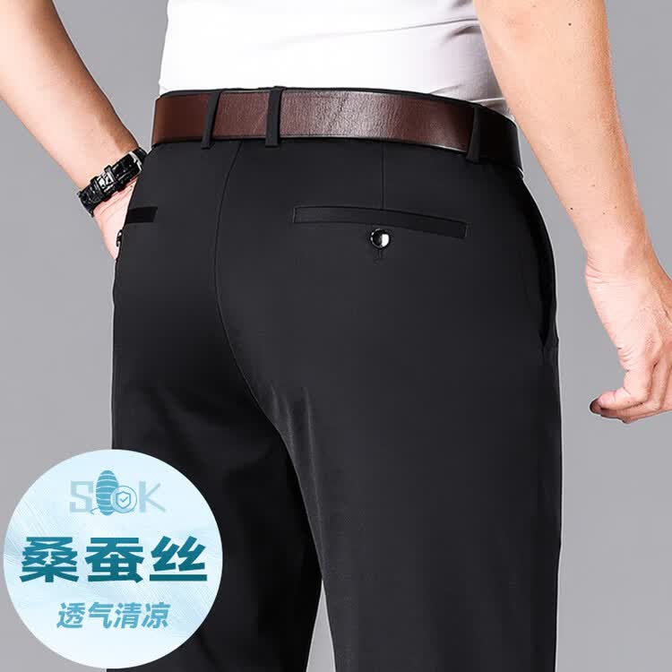 九牧王(JOEONE)2026年春夏新款男士高弹冰丝商务休闲西裤舒适透气百搭长裤 黑色 40