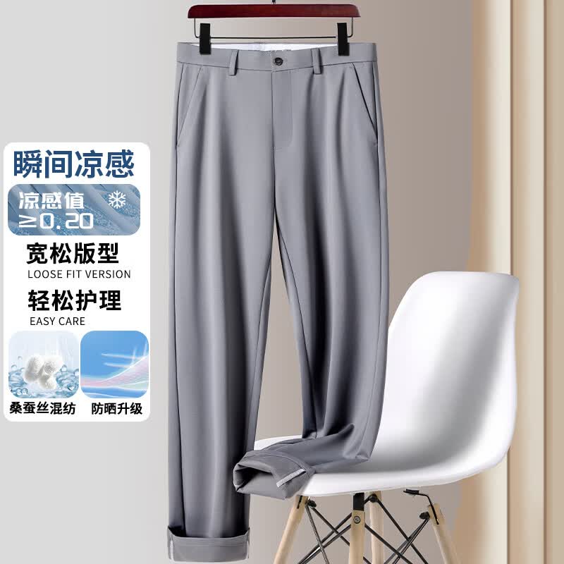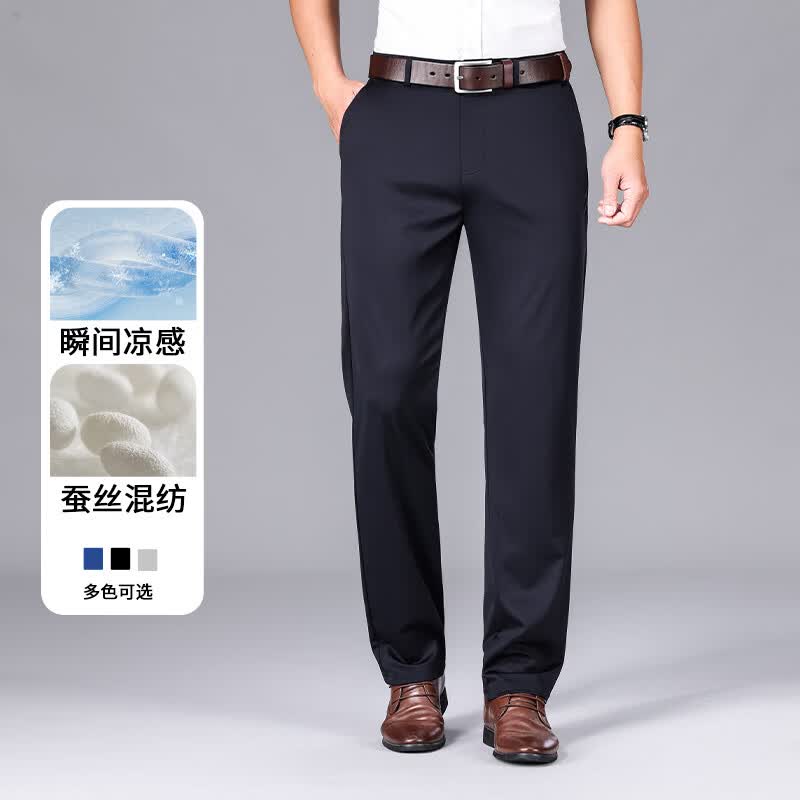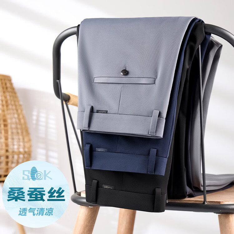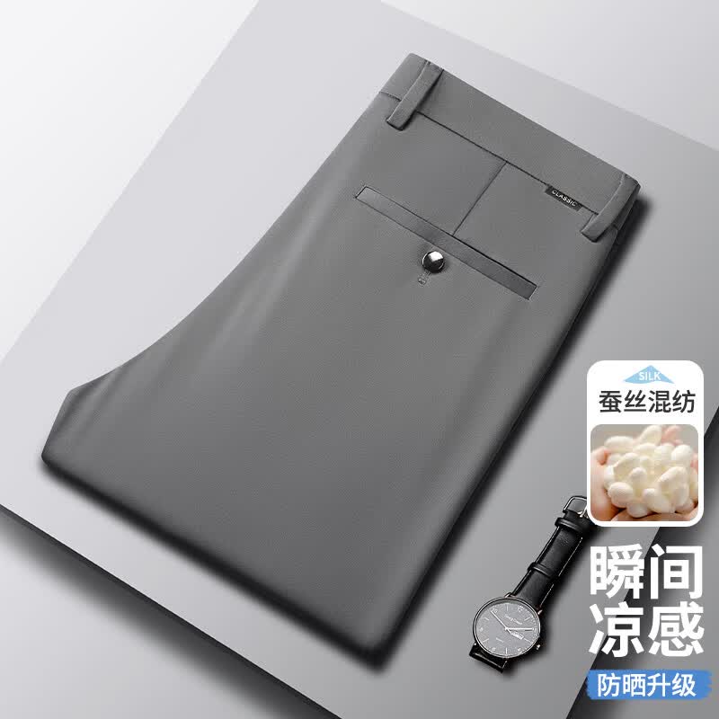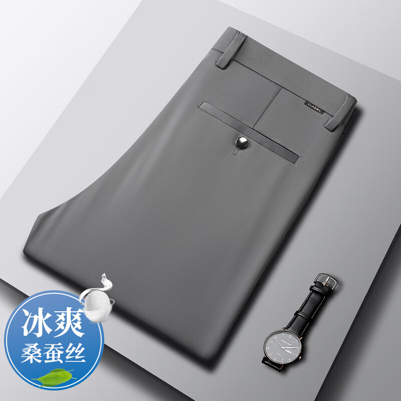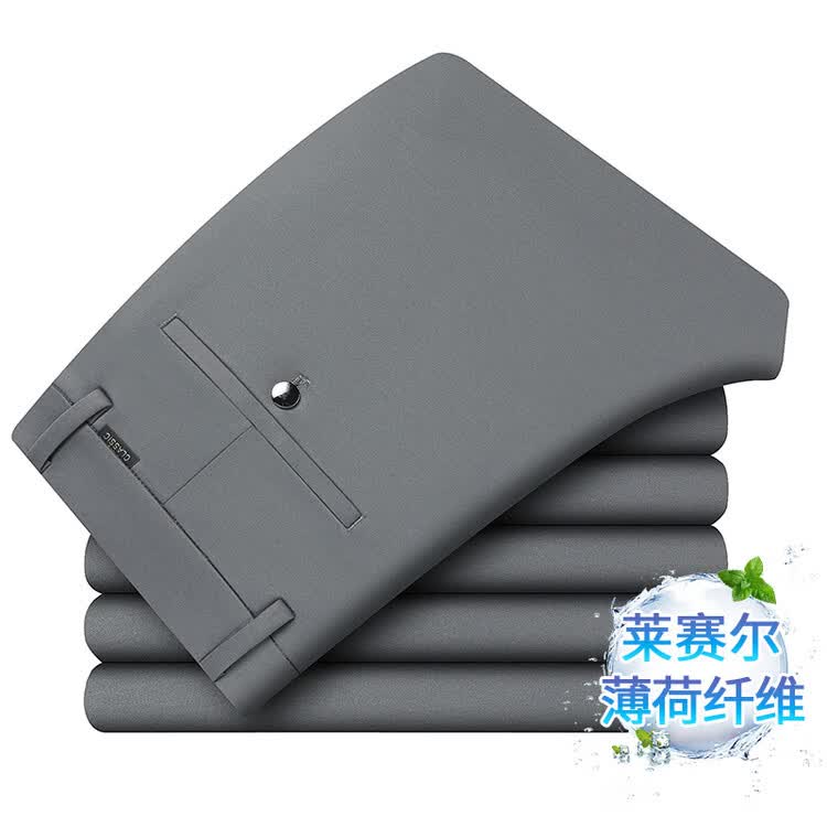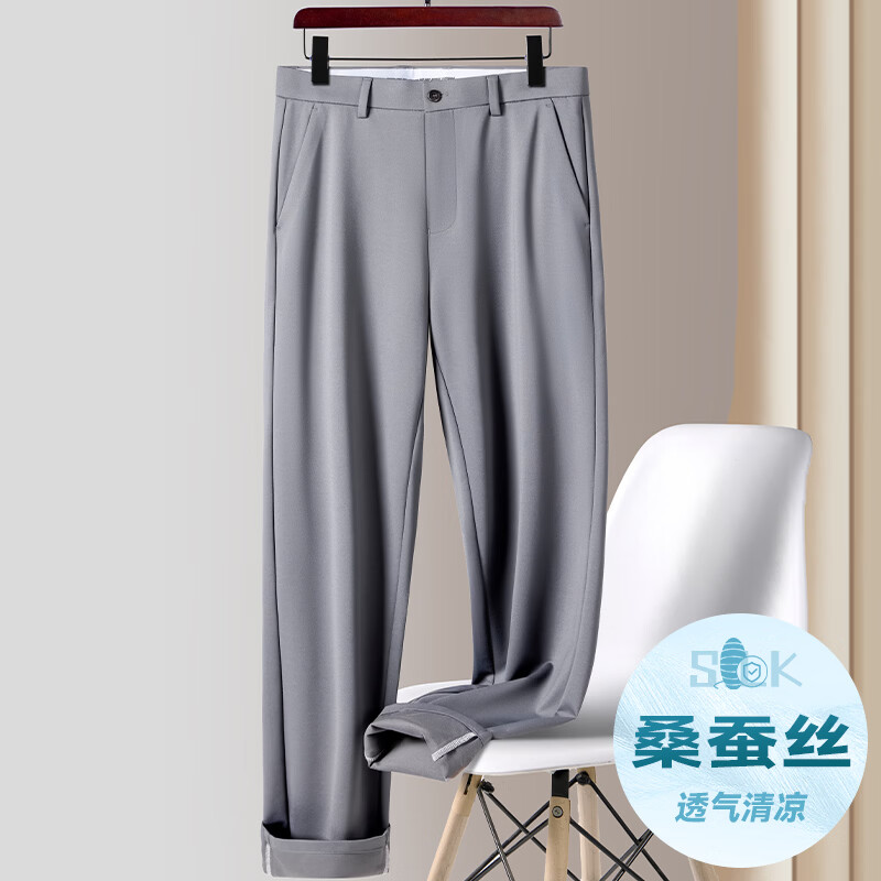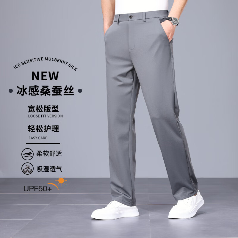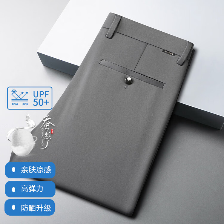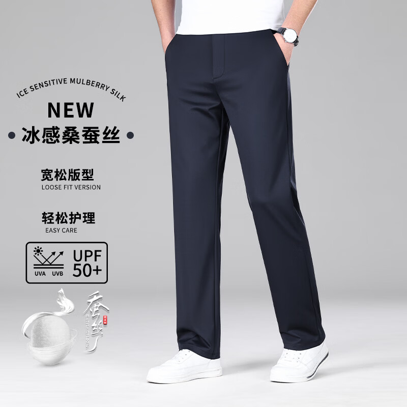 九牧王(JOEONE)2026年春夏新款男士高弹冰丝商务休闲西裤舒适透气百搭长裤 黑色 40