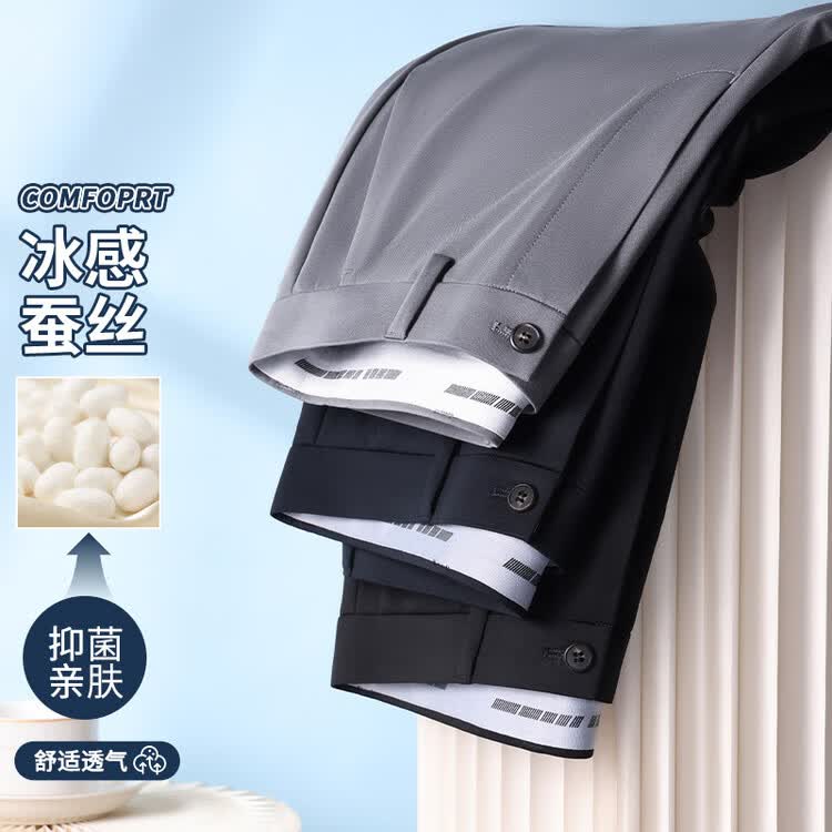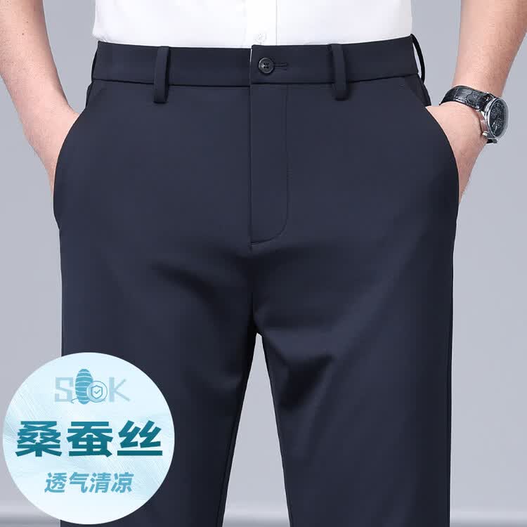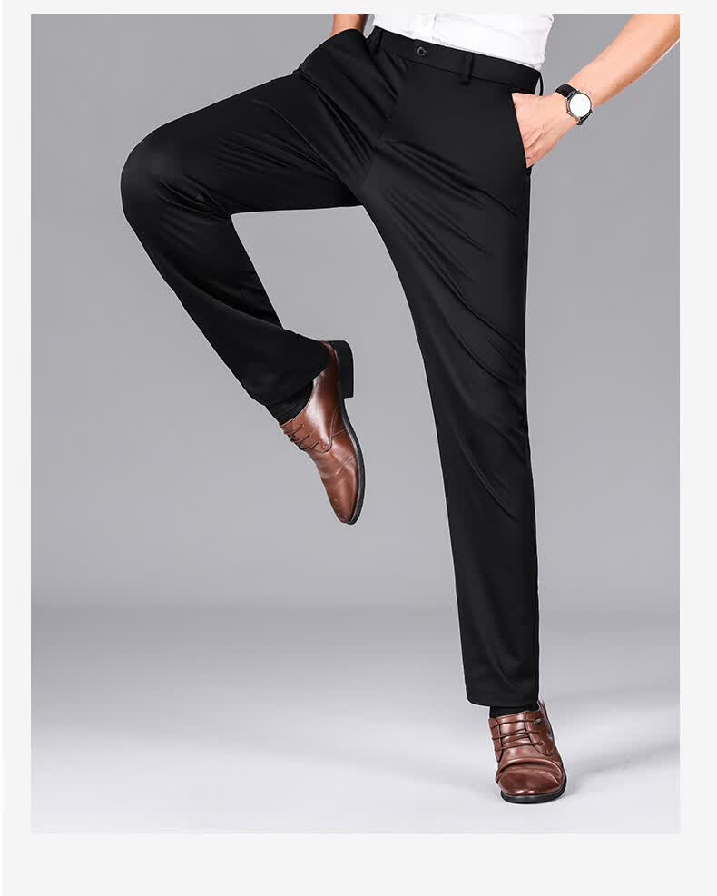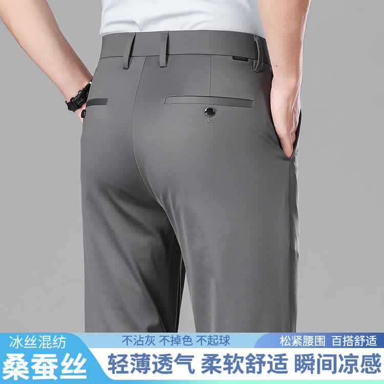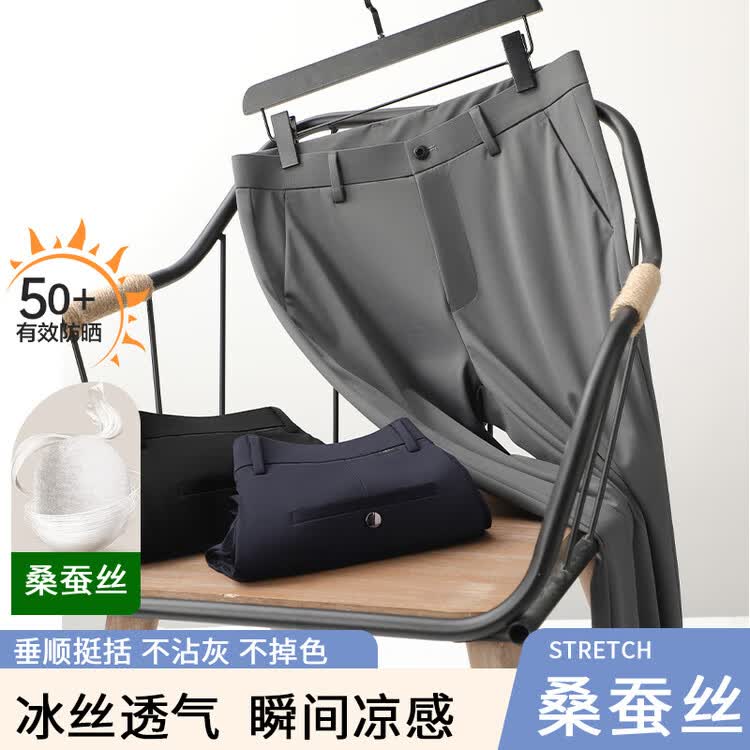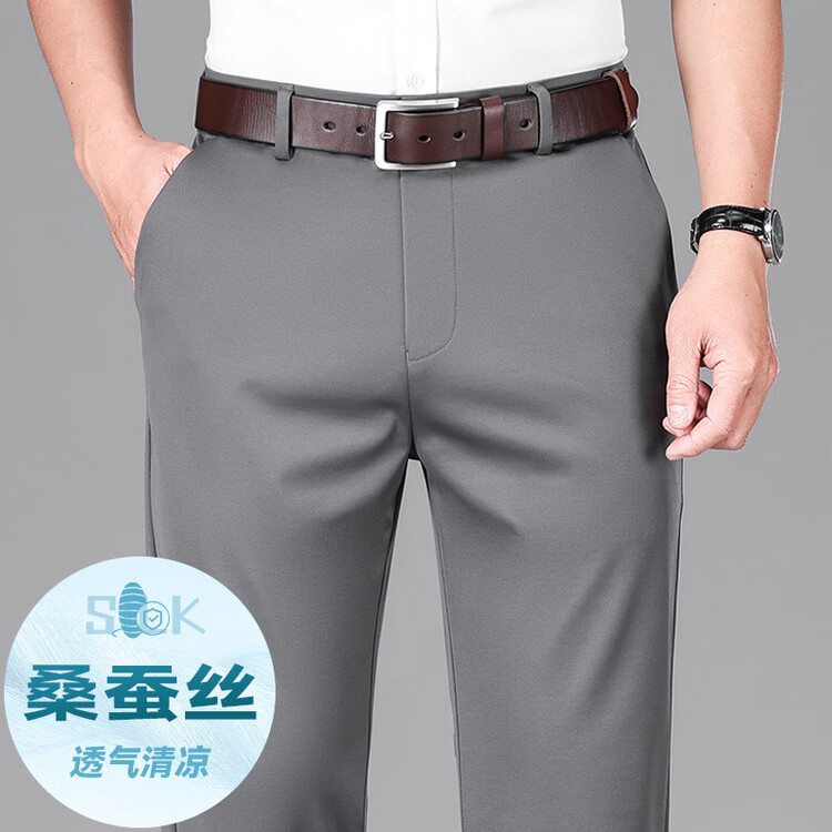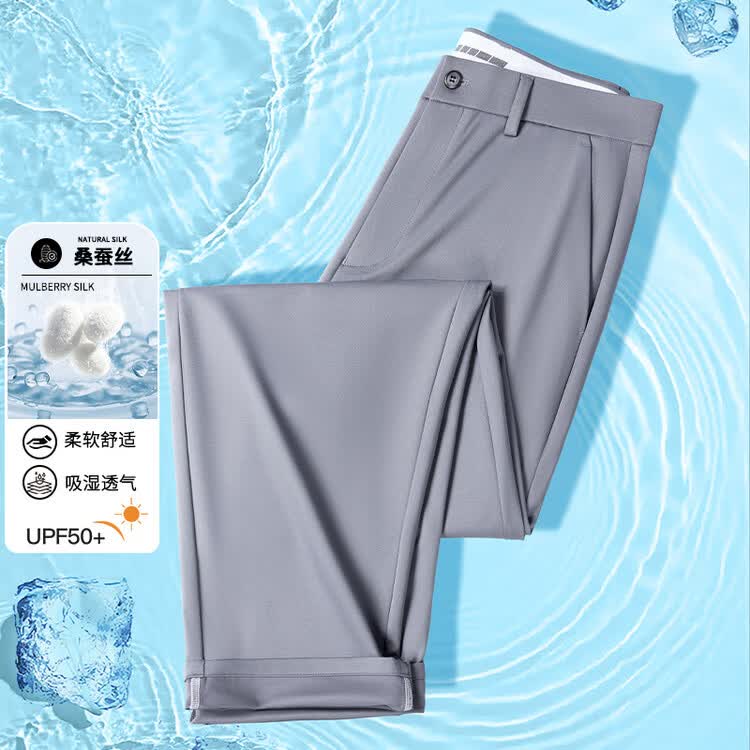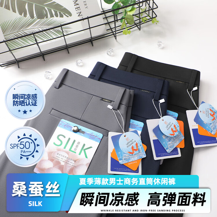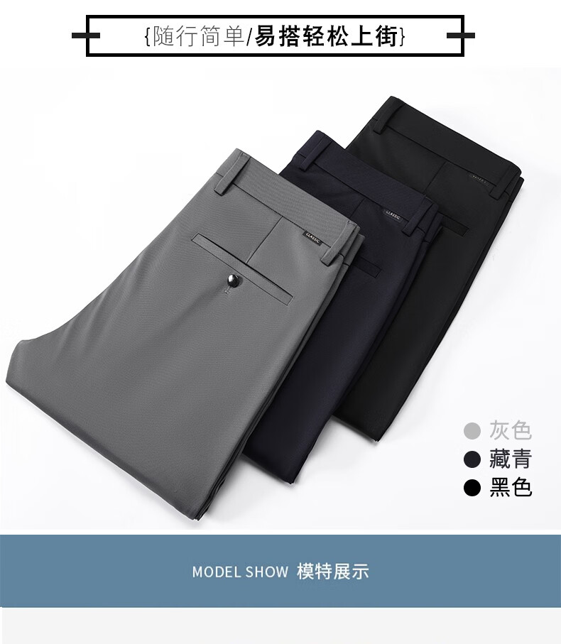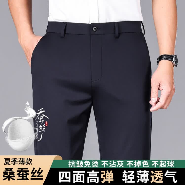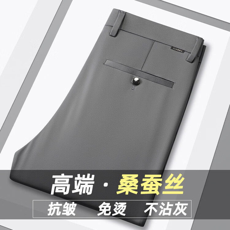 九牧王(JOEONE)2026年春夏新款男士高弹冰丝商务休闲西裤舒适透气百搭长裤 黑色 40