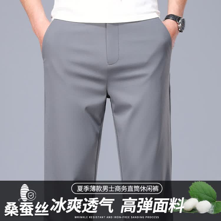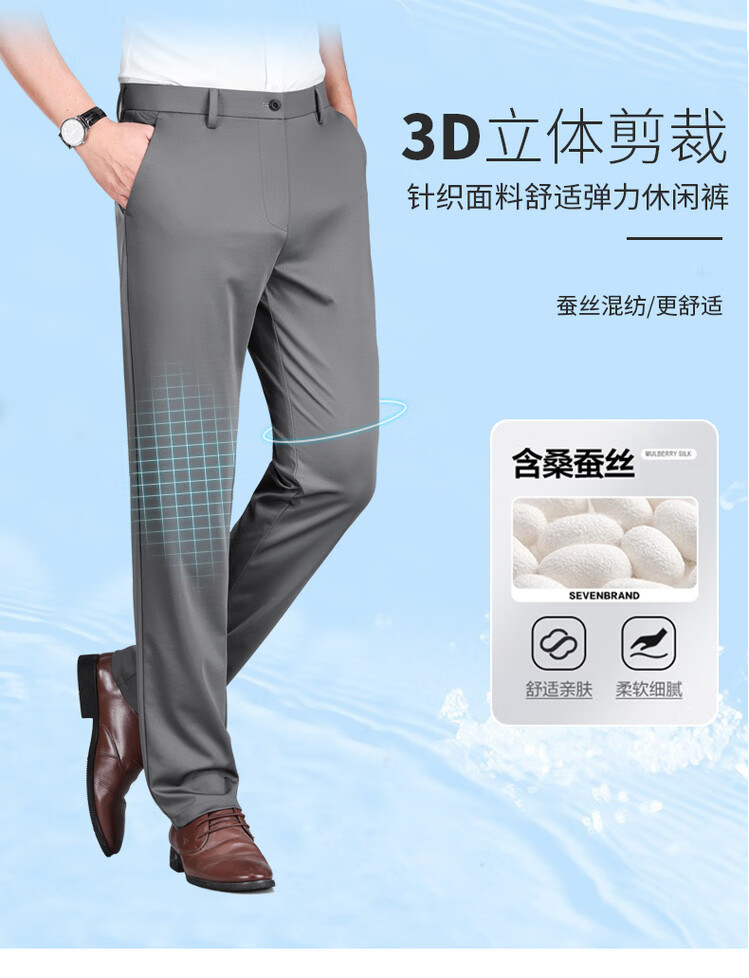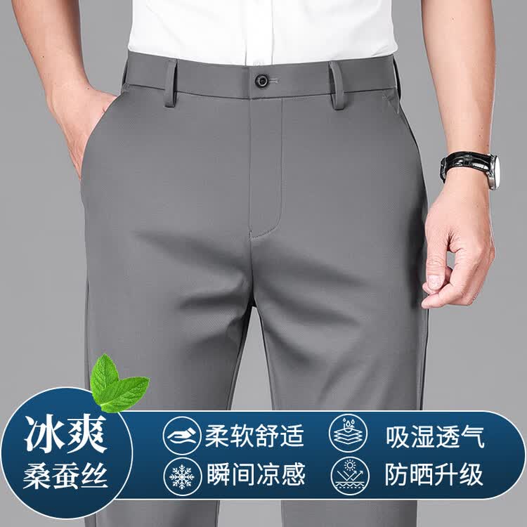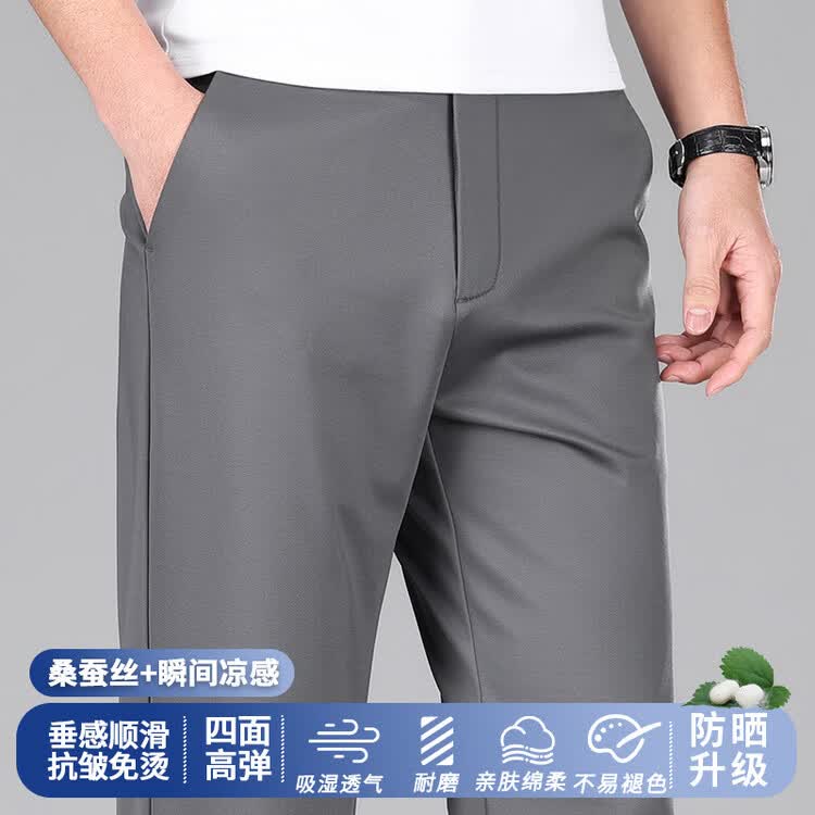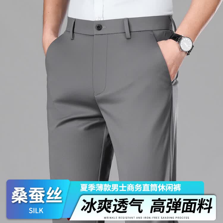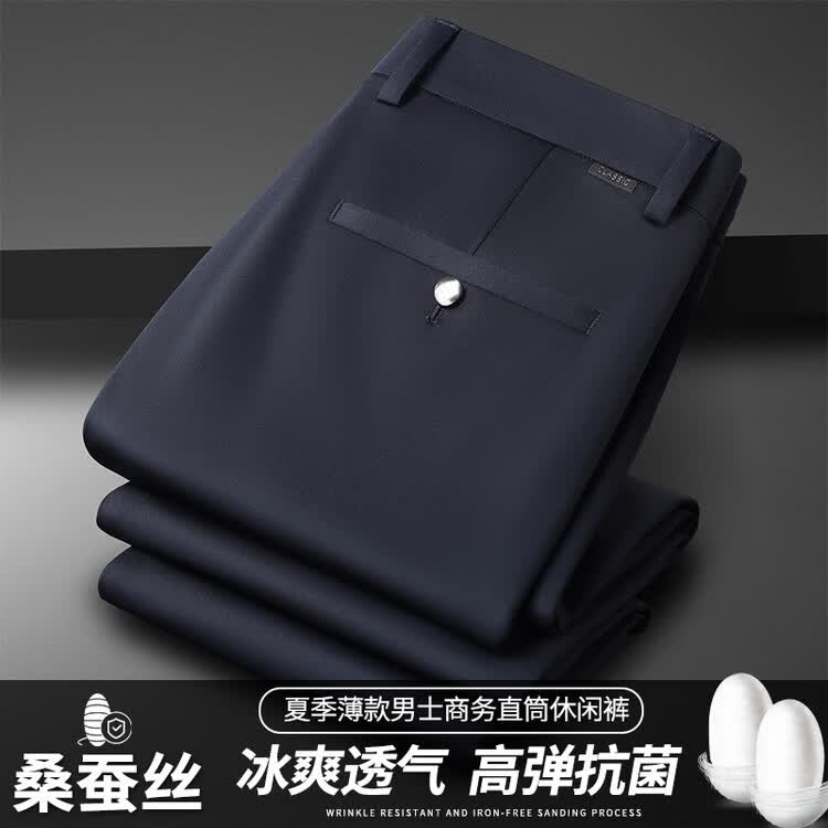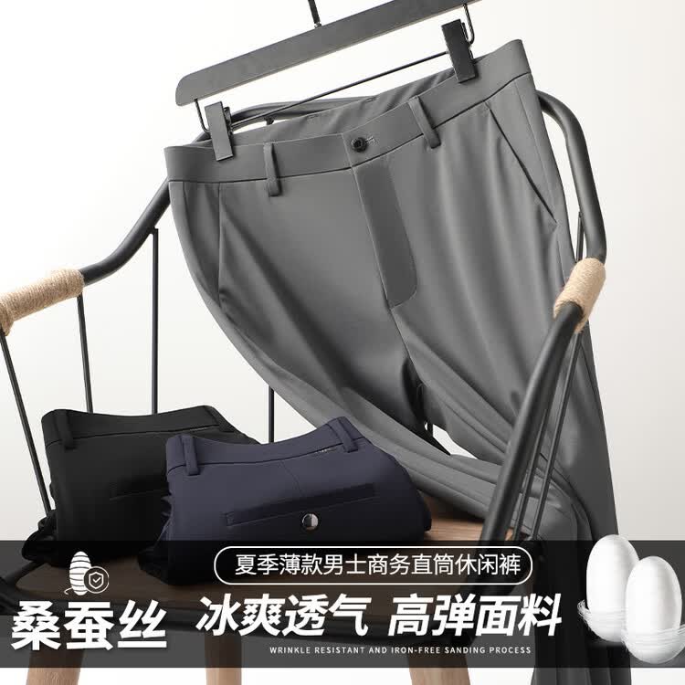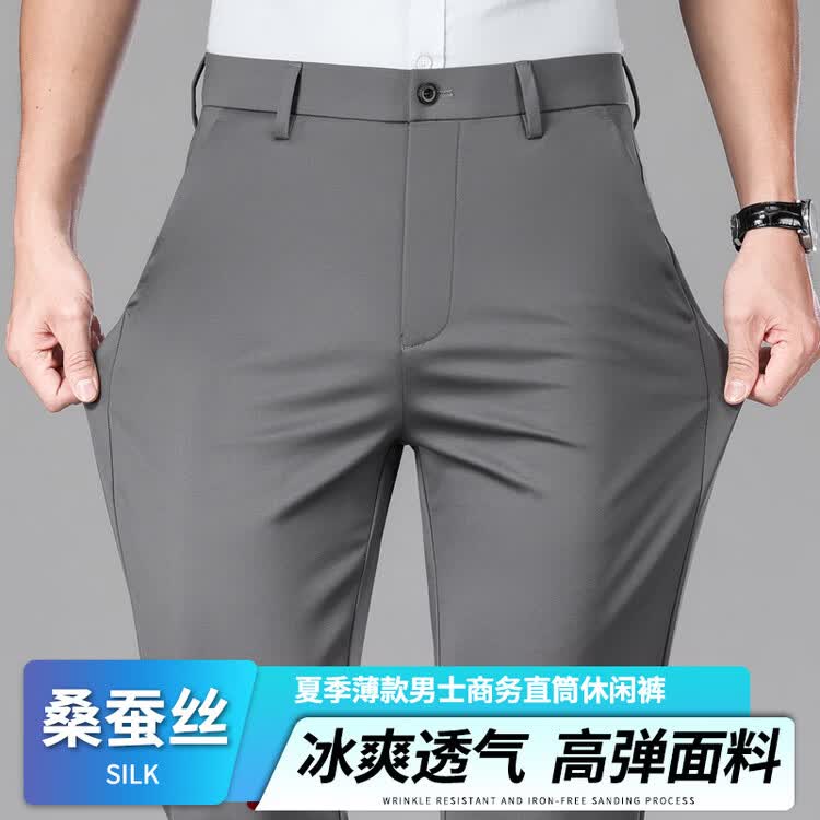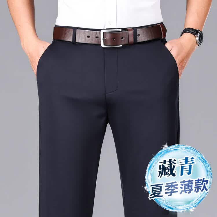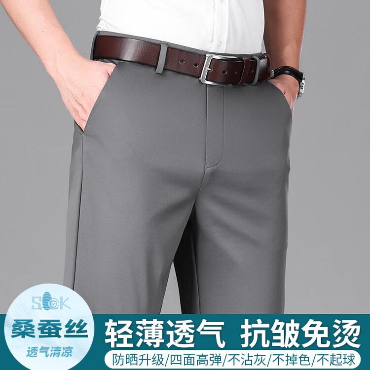 九牧王(JOEONE)2026年春夏新款男士高弹冰丝商务休闲西裤舒适透气百搭长裤 黑色 40