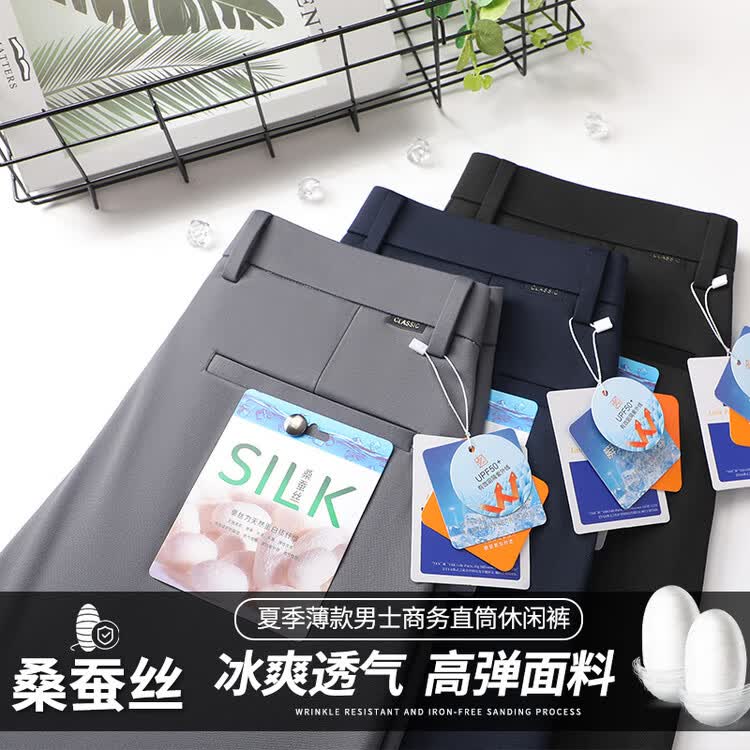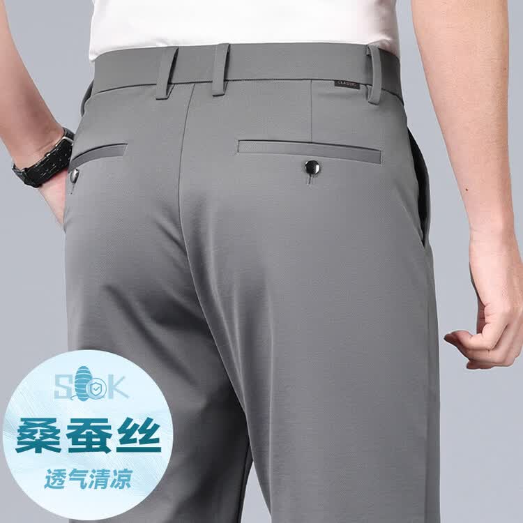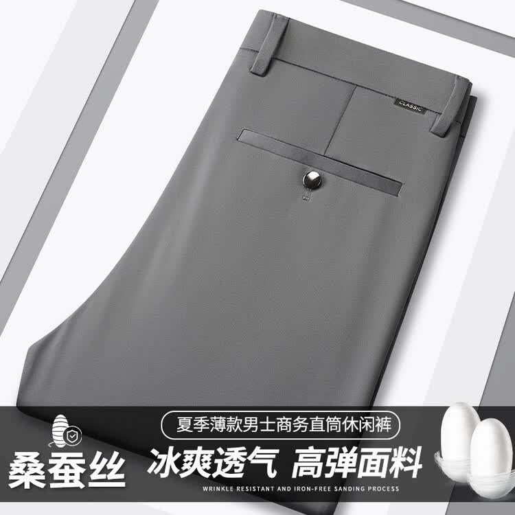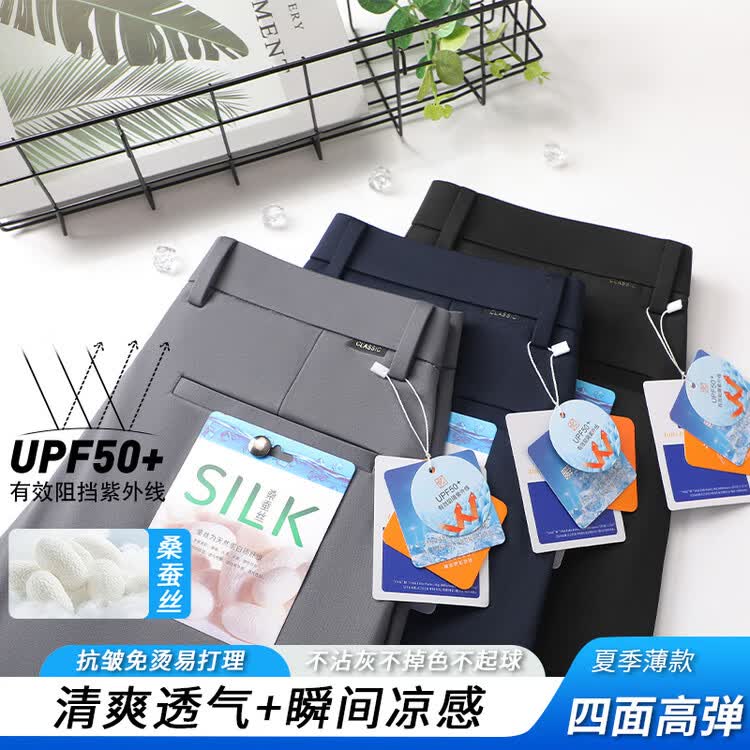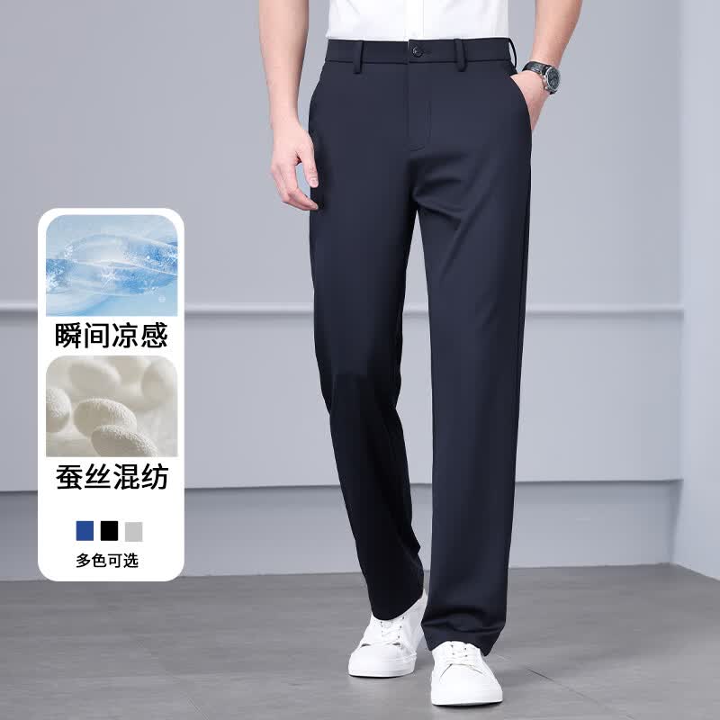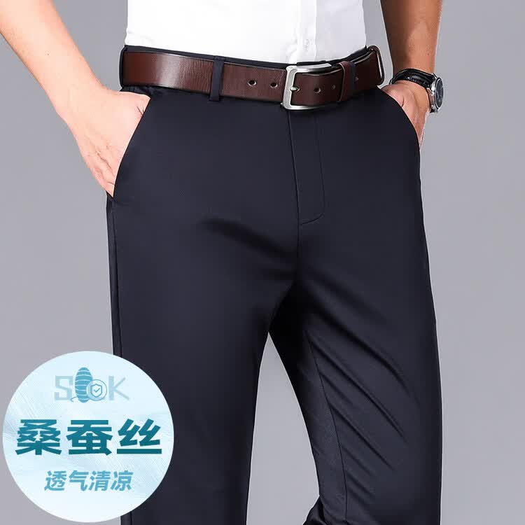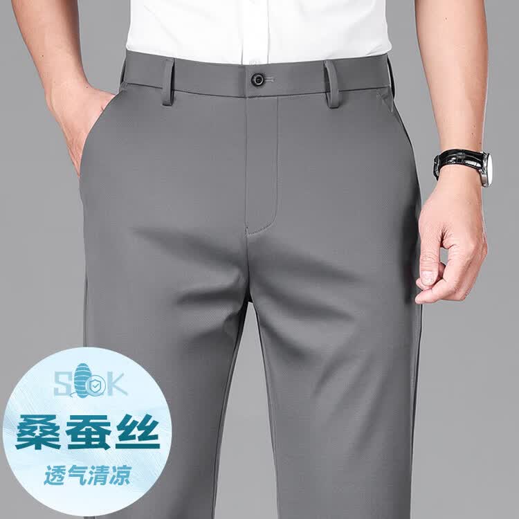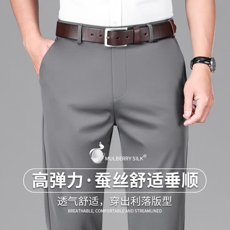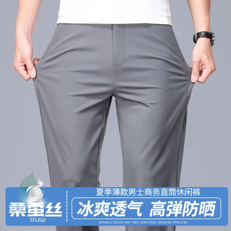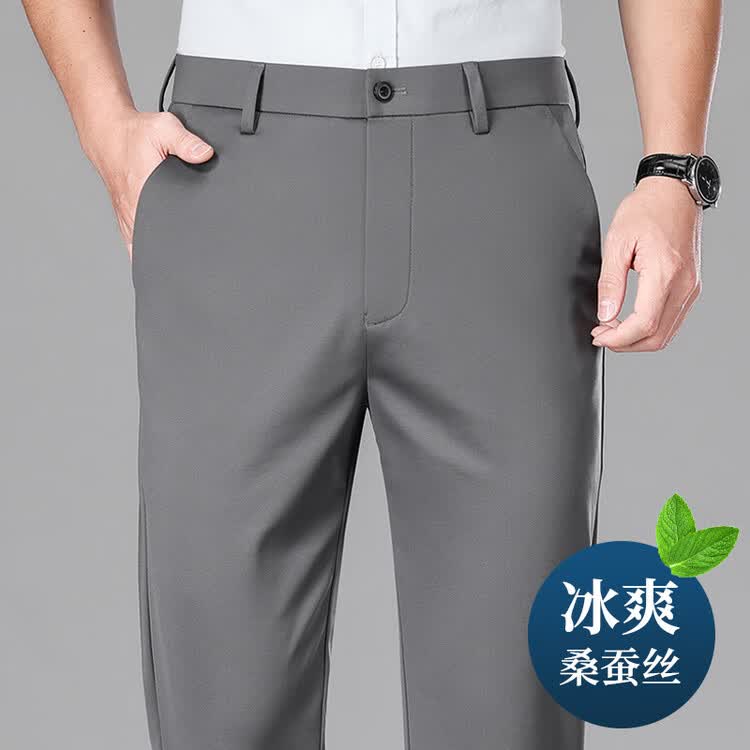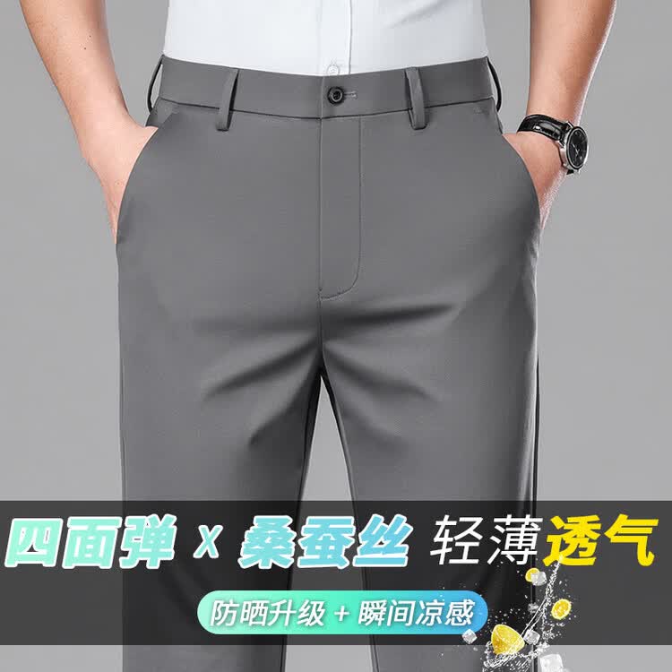 九牧王(JOEONE)2026年春夏新款男士高弹冰丝商务休闲西裤舒适透气百搭长裤 黑色 40