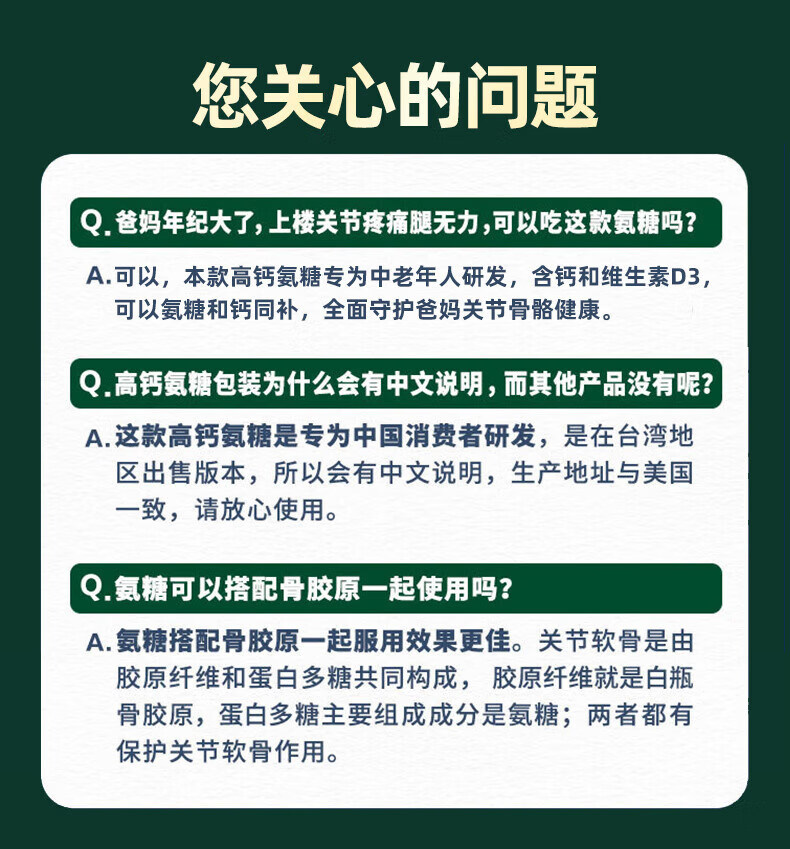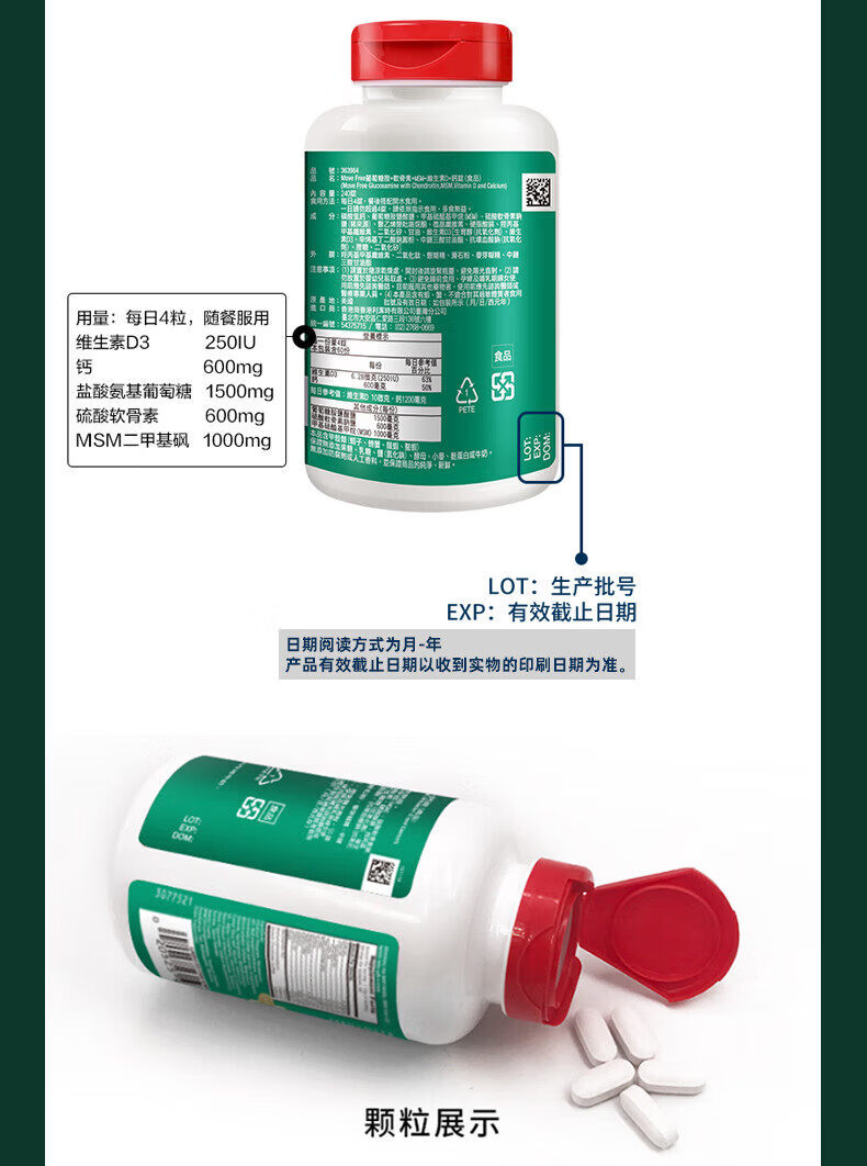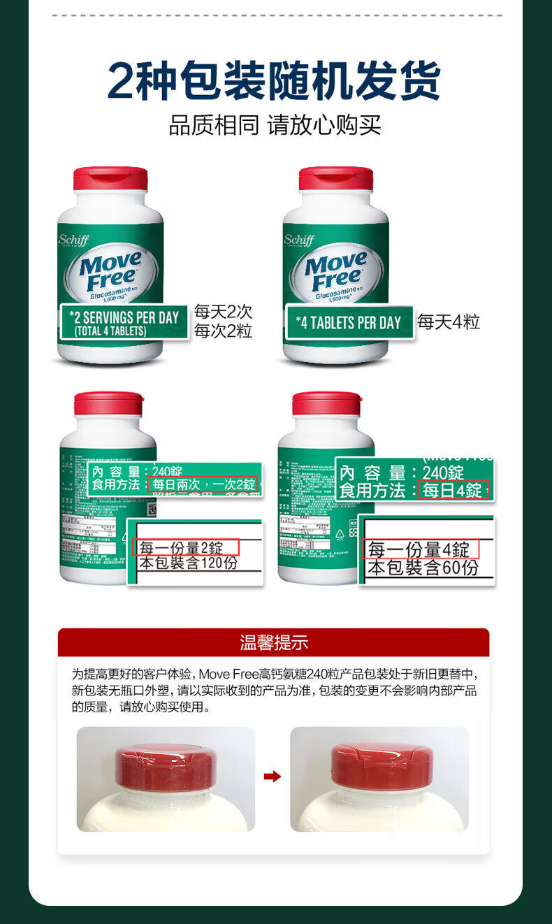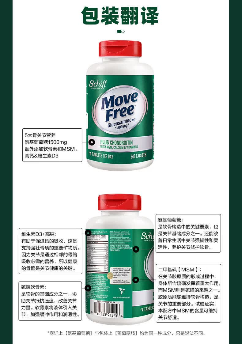 旭福益节美国MoveFree维骨力氨糖软骨素高钙片中老年护关 高钙氨糖240粒 补钙新升级高钙氨糖 240粒*3瓶