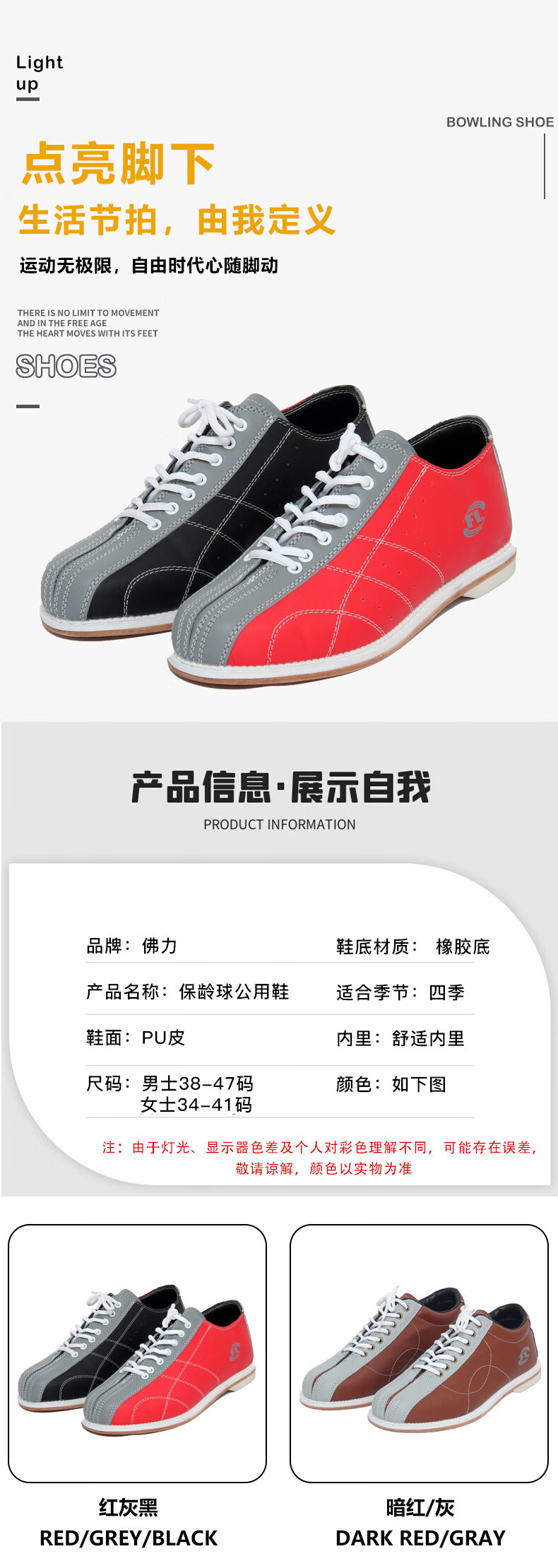 衣普西隆保龄球鞋新款大底保龄球公用鞋系带款多色选 红黑色(A-12) 53