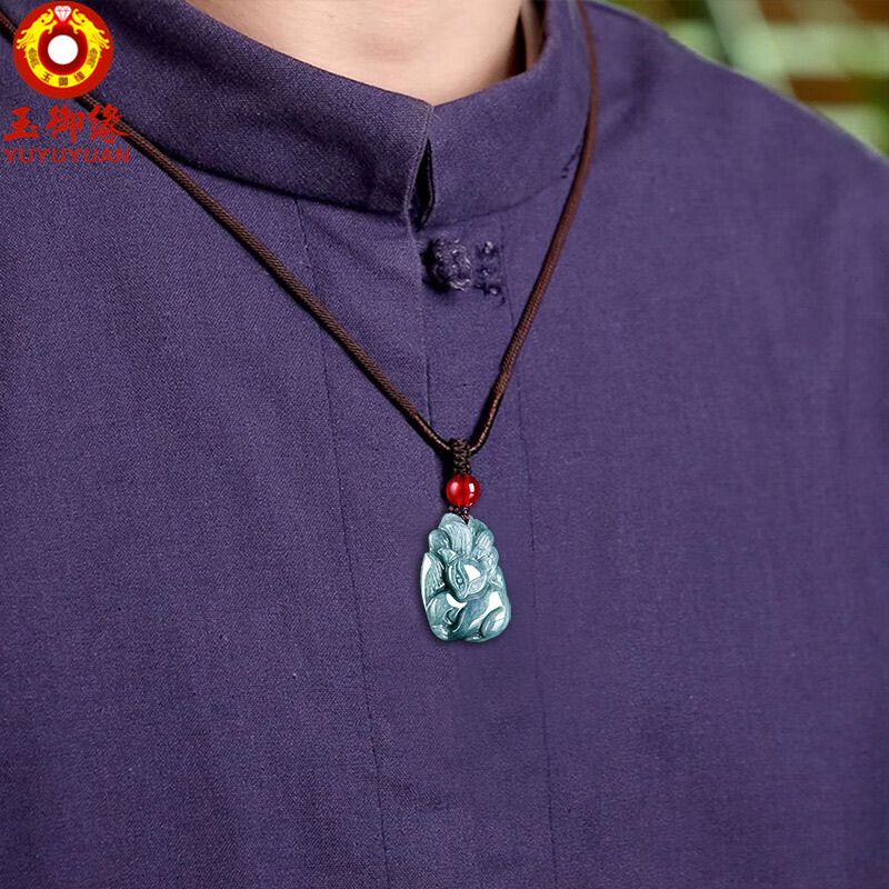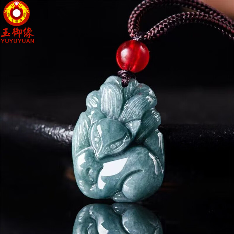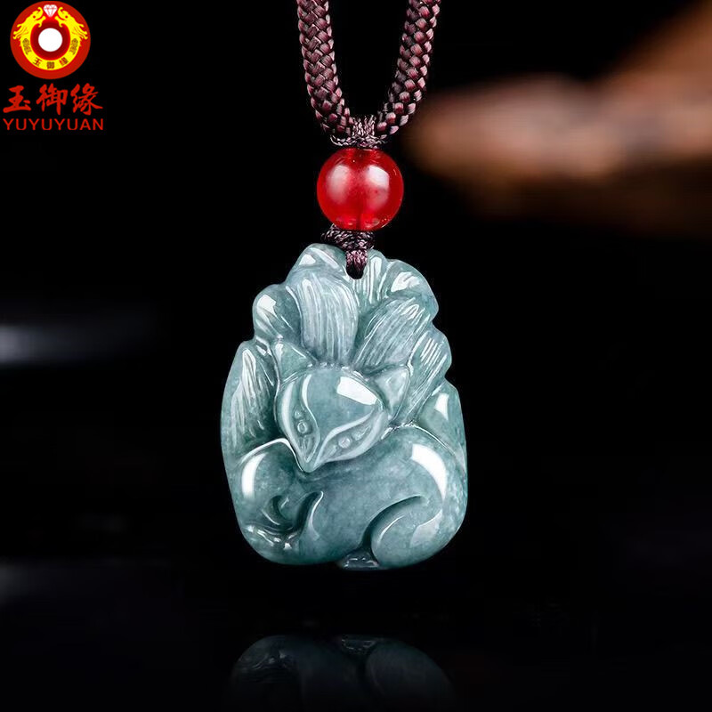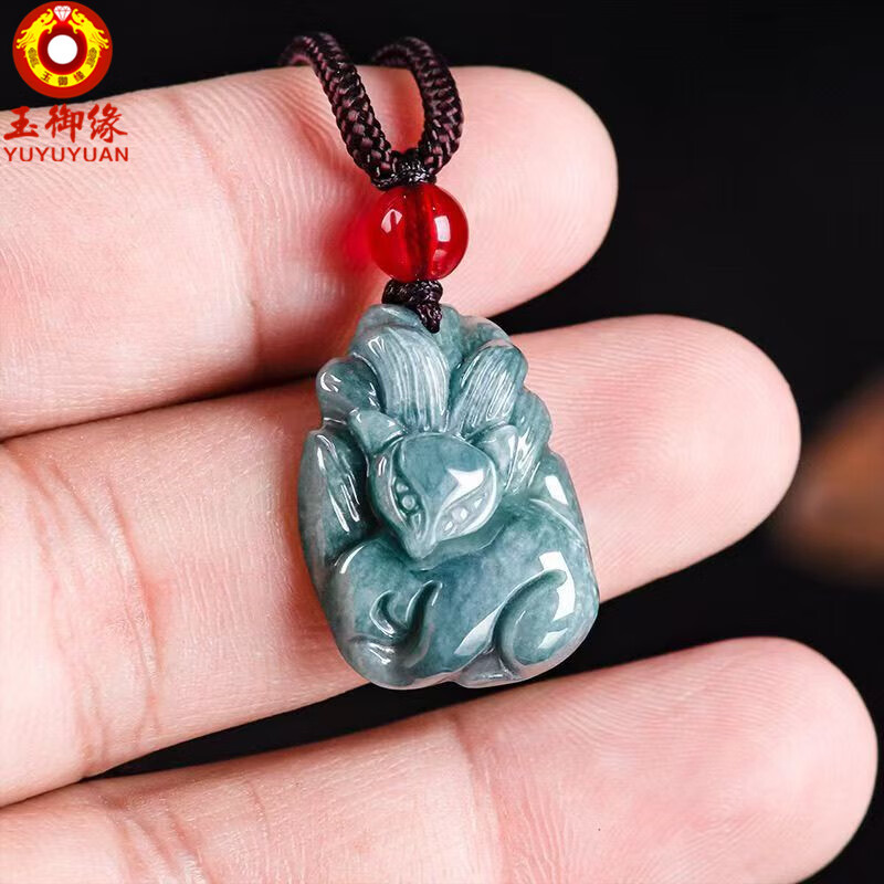 玉御缘原创正品天然A货翡翠蓝水狐狸九尾狐糯种玉石吊坠挂件高档男女款