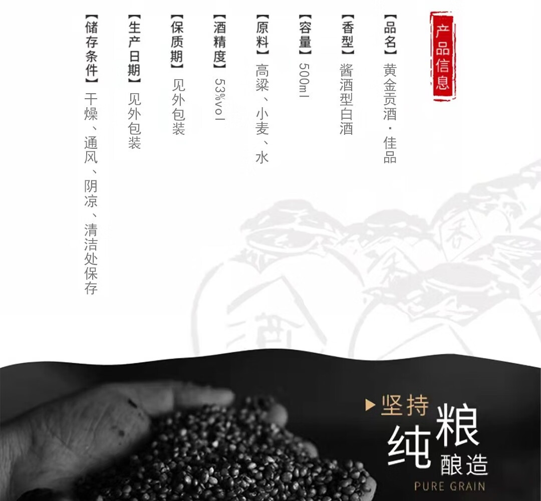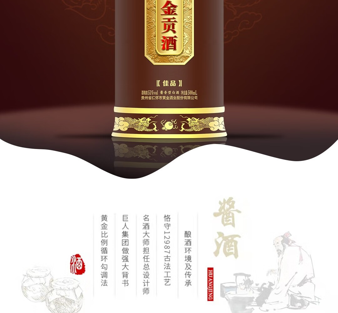 黄金酒黄金贡酒佳品茅台镇酱香型白酒 53%vol 500mL 1瓶