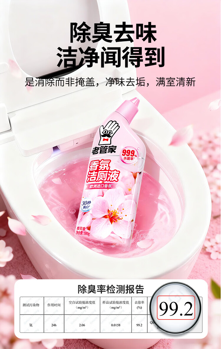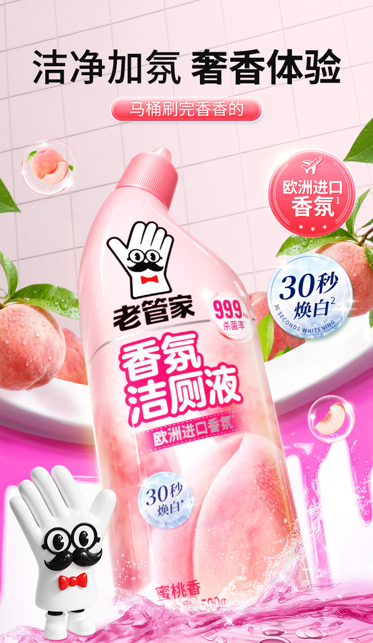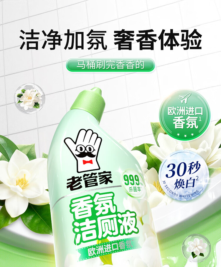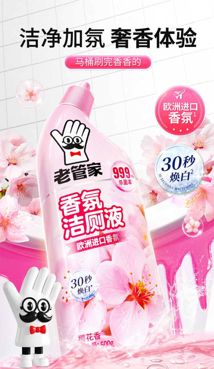 老管家洁厕灵液厕所马桶清洁洗剂洁洗厕所神器强力除垢臭去异味黄渍留香 3瓶洁厕液【樱花清香】