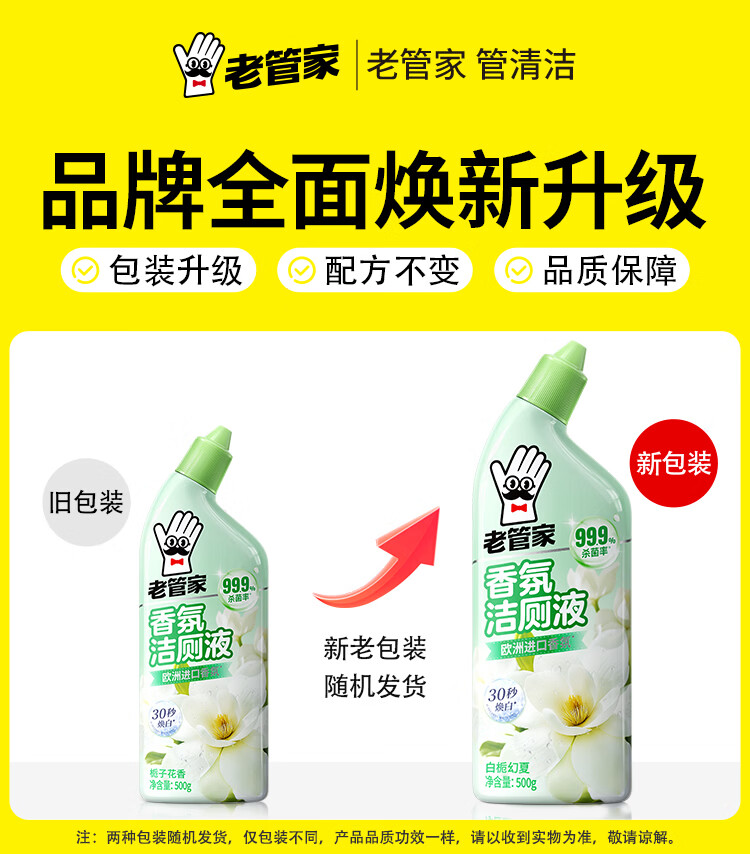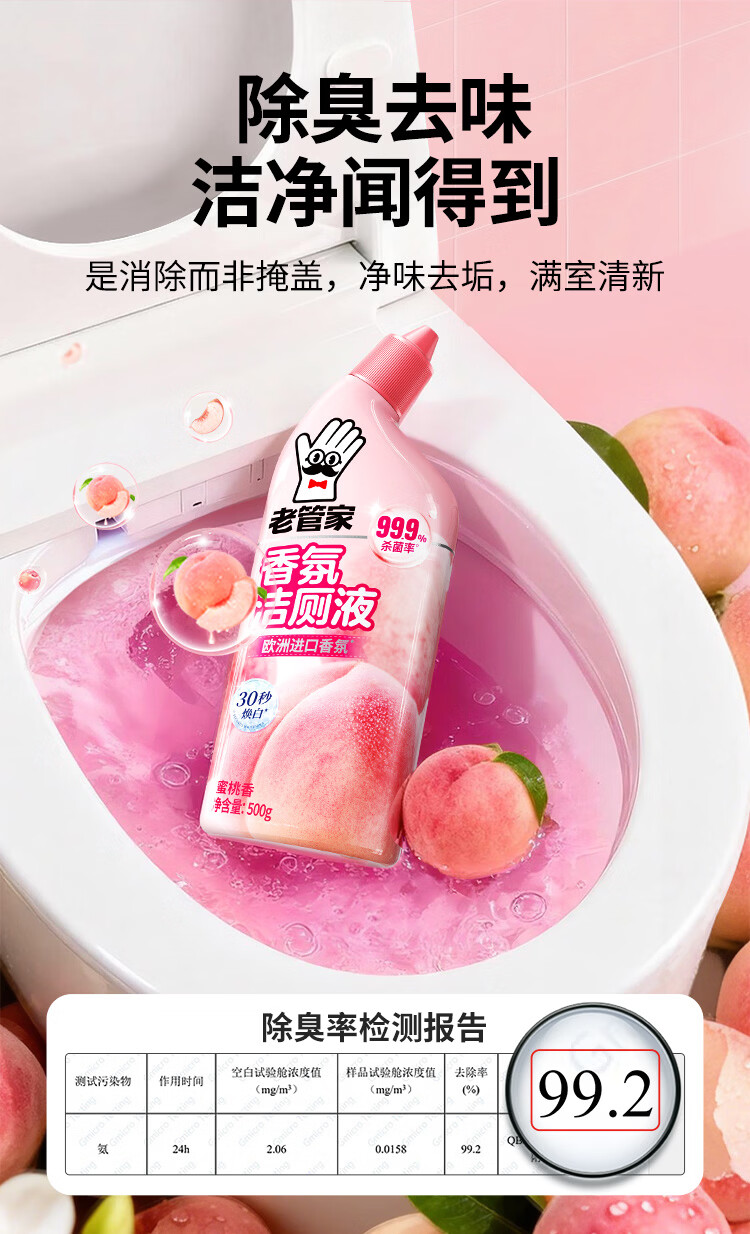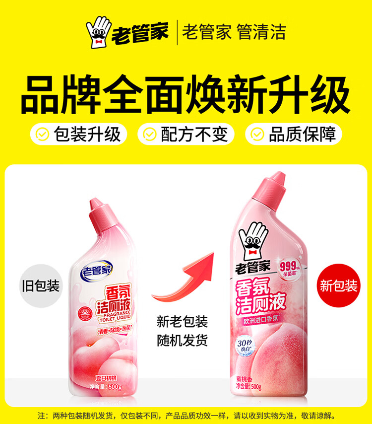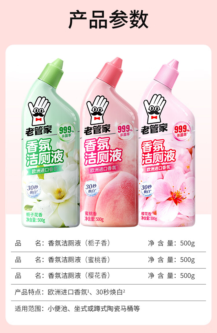 老管家洁厕灵液厕所马桶清洁洗剂洁洗厕所神器强力除垢臭去异味黄渍留香 3瓶洁厕液【樱花清香】
