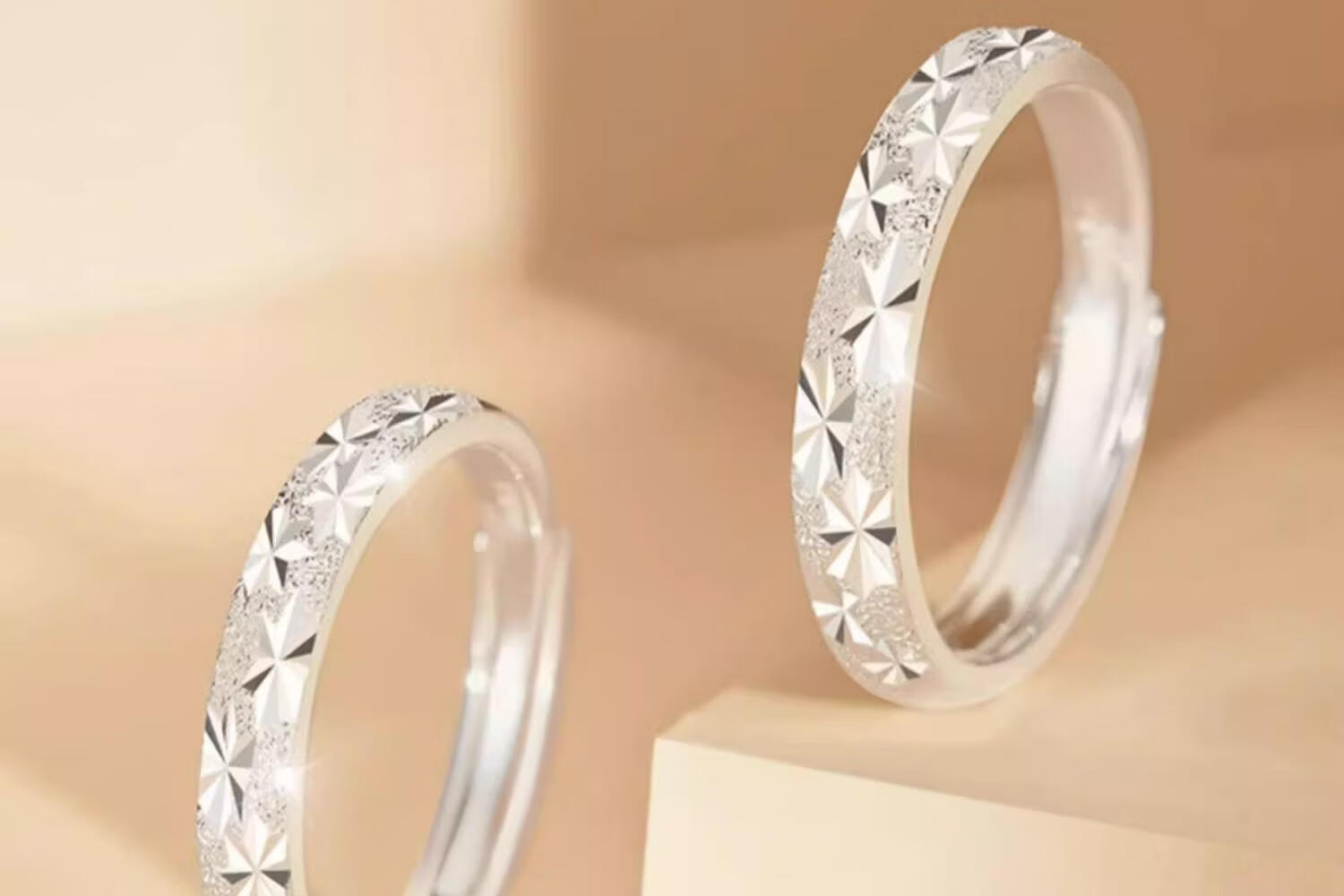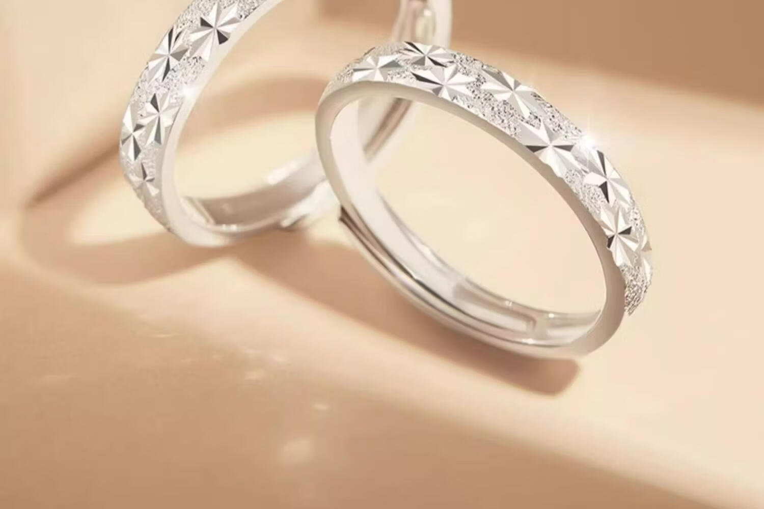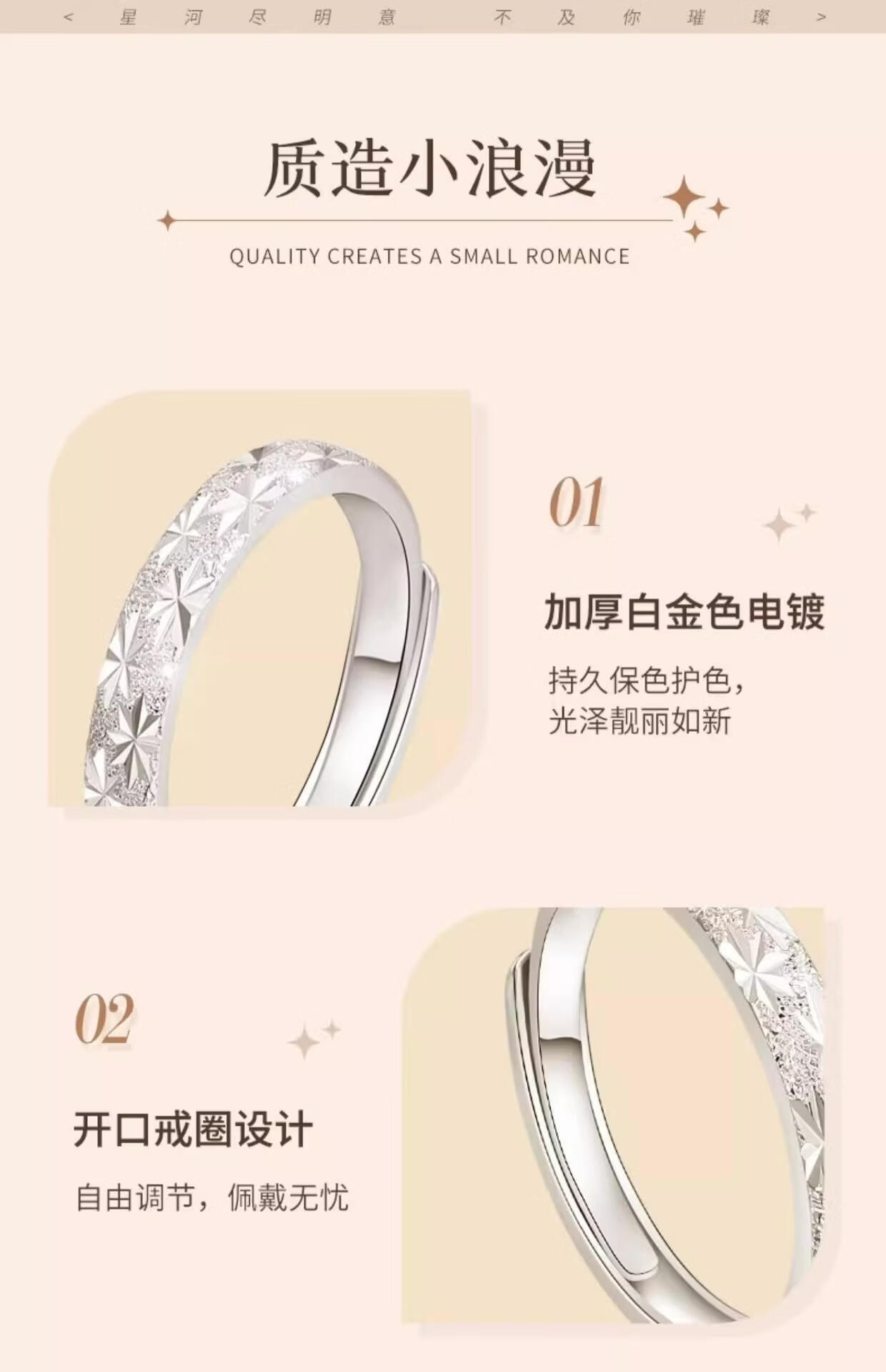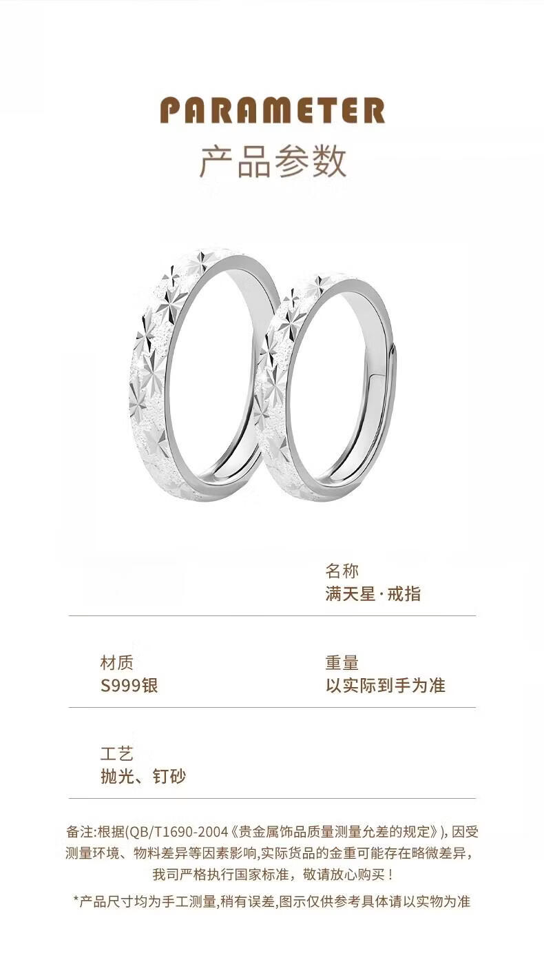宝恋999纯银爆闪满天星情侣对戒一对轻奢小众素圈活口可调节520礼物 足银满天星情侣对戒+真爱花盒+证书 【开口可调节】支持异地分开发货