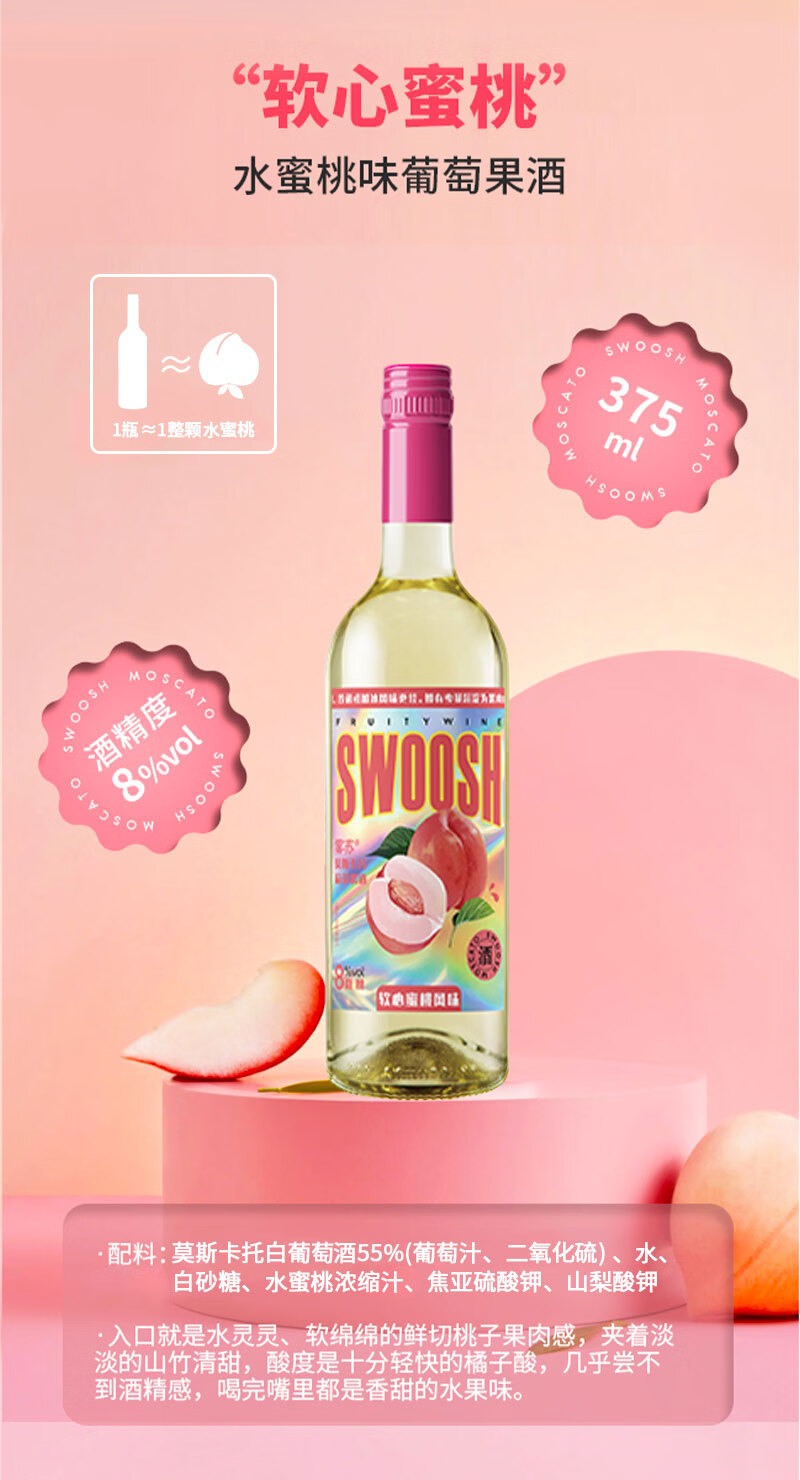 金羊毛【4项大奖 自然清甜】蜜桃葡萄果味葡萄酒甜酒莫斯卡托果酒 软心蜜桃*2瓶+多肉葡萄*2瓶
