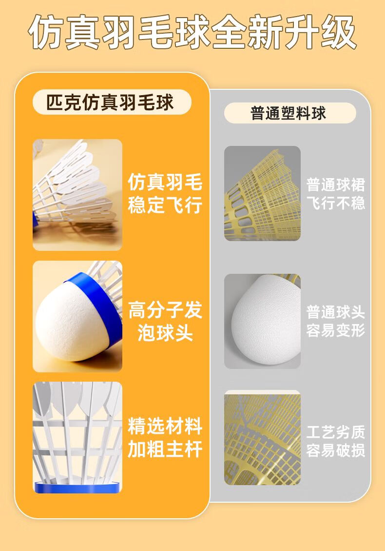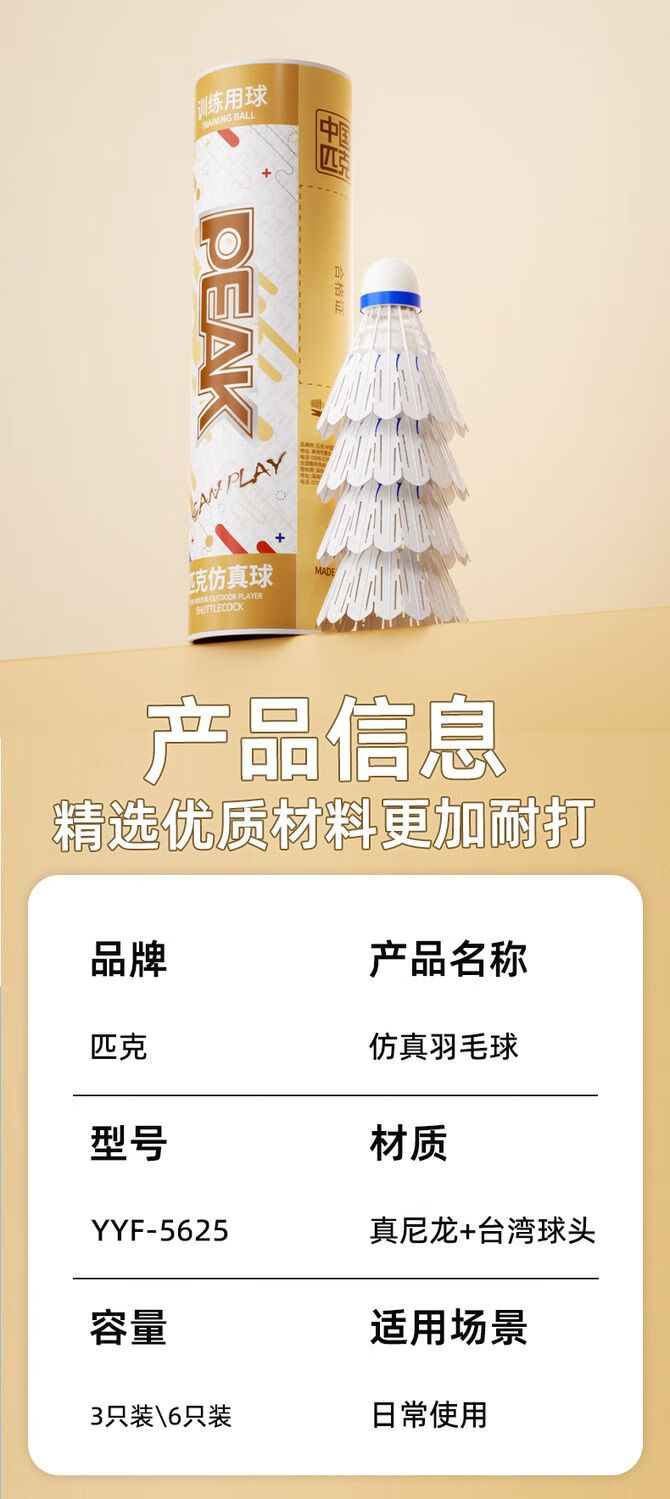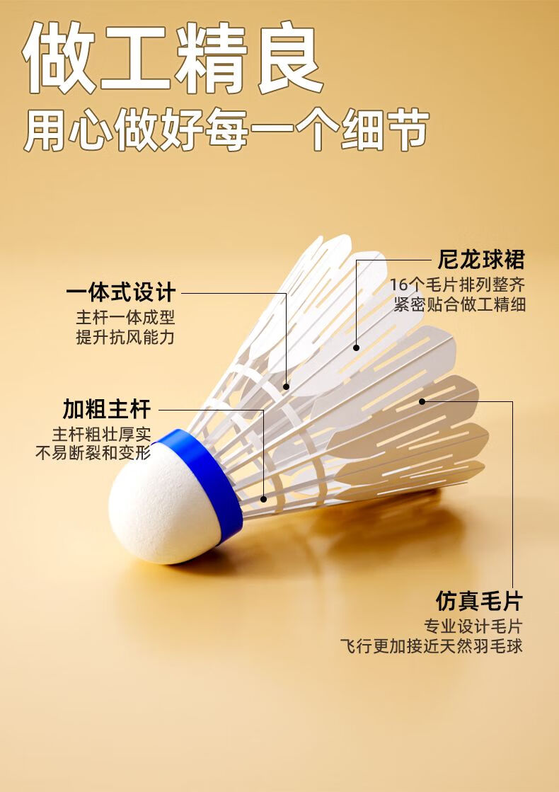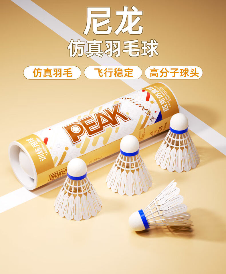 匹克(PEAK)羽毛球超耐打仿真尼龙球室内室外防风塑料球专业训练比赛胶球 【活动款】12只装/仿真羽毛超耐打 2筒 高分子发泡球头/飞行稳定