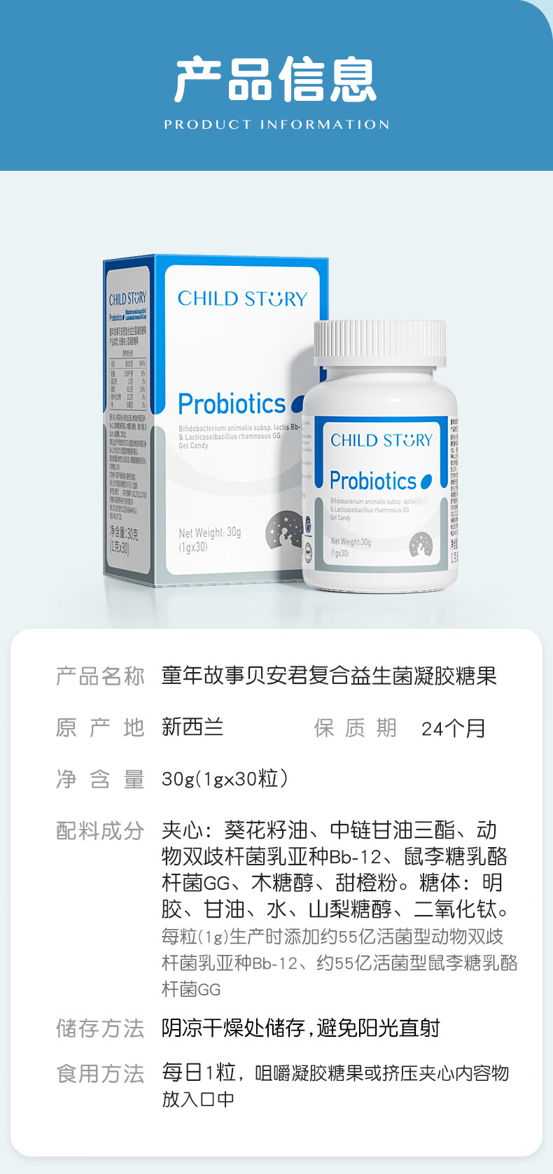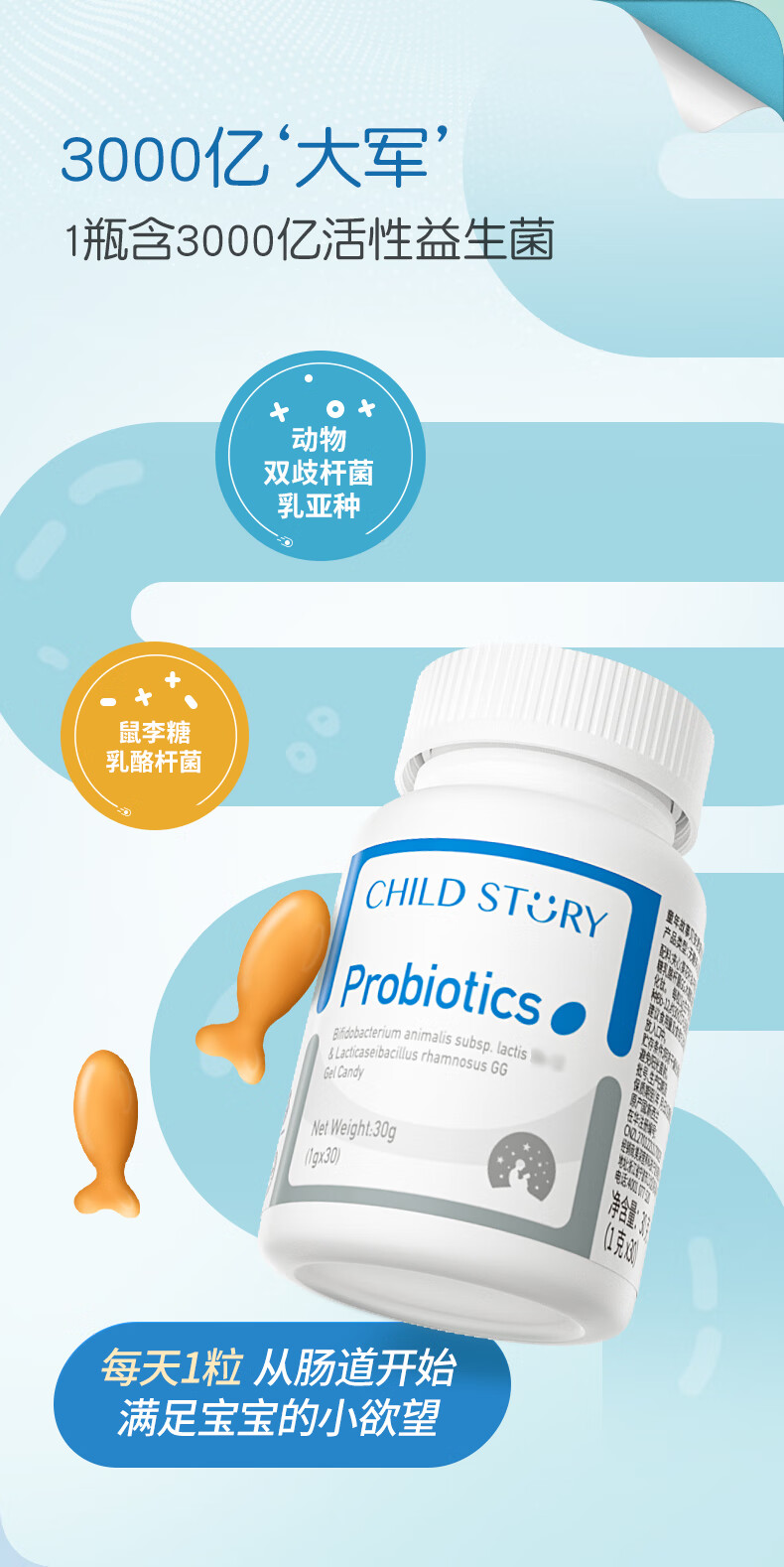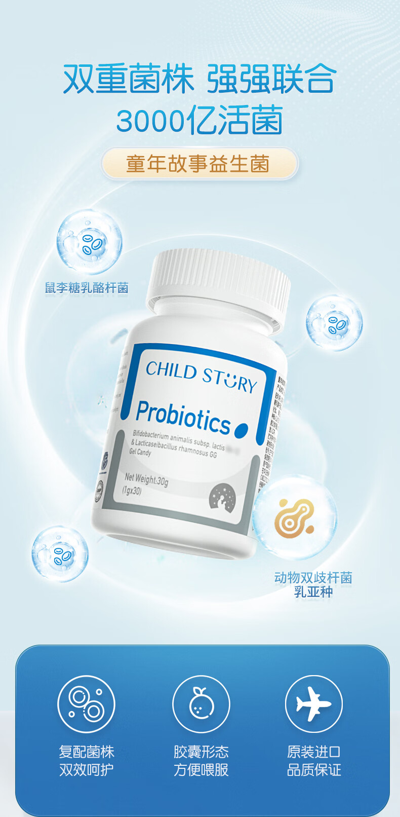 童年故事Child Story动物双岐杆菌+鼠李糖乳杆菌 复合益生菌胶囊 益生菌胶囊30粒 25年新日期