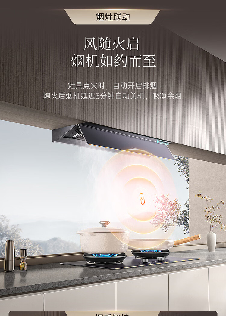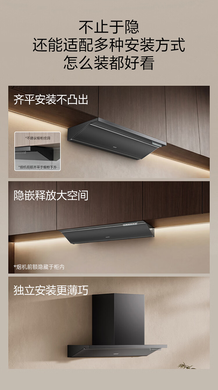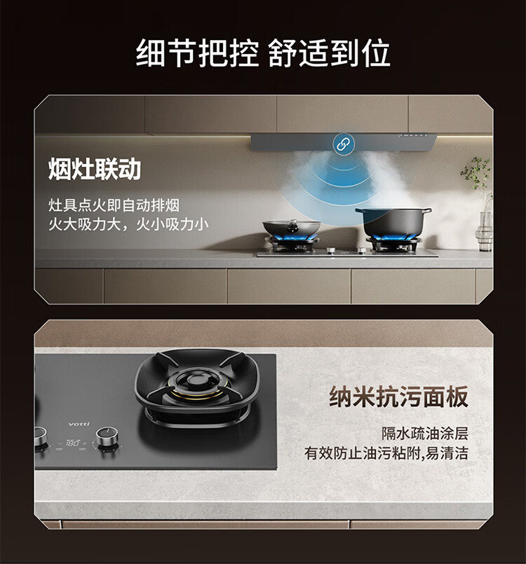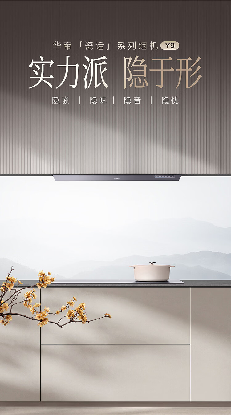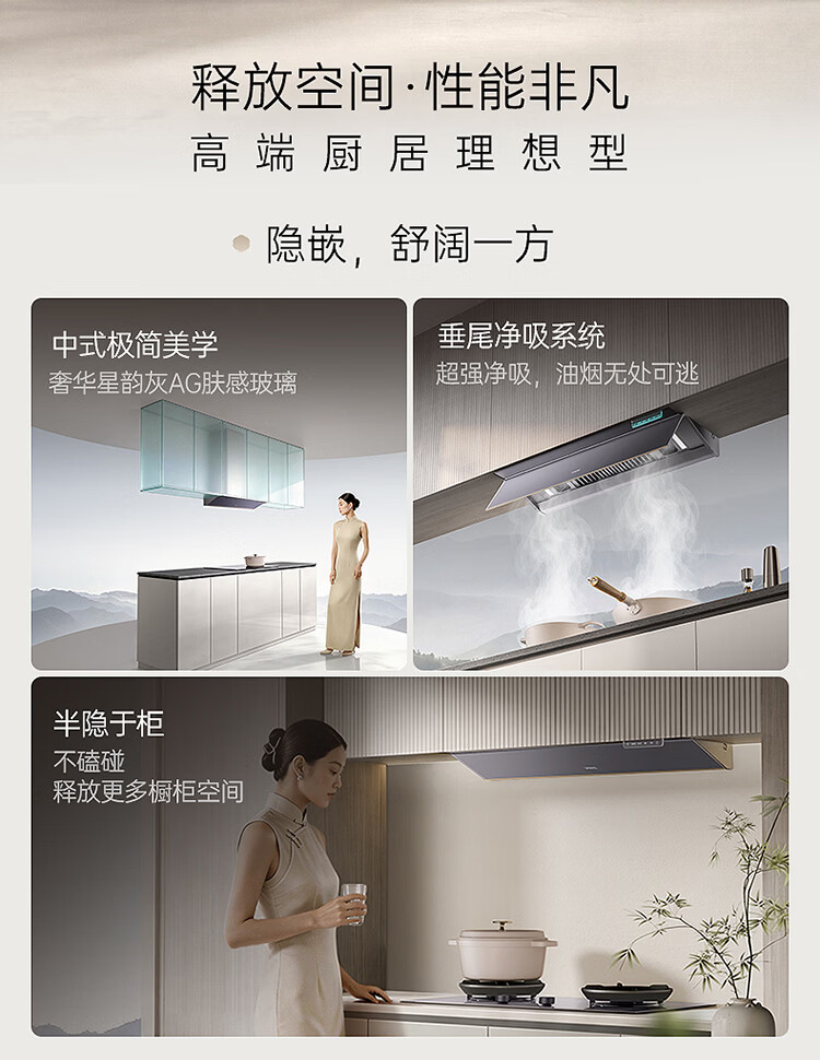 华帝(VATTI)【隐系列Y9】张凌赫同款半隐油烟机家用32风量大吸力蒸汽热水洗哨兵模式抽油烟机烟灶联动套装 【星韵灰套装】Y9+318F(韵灰)
