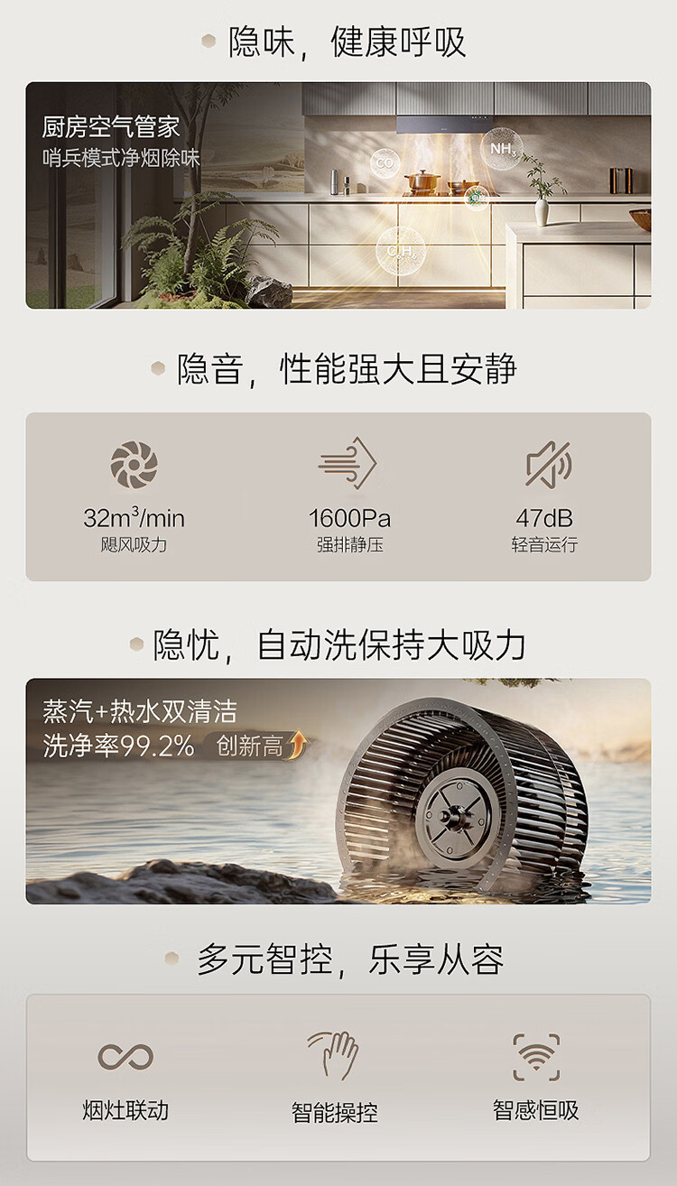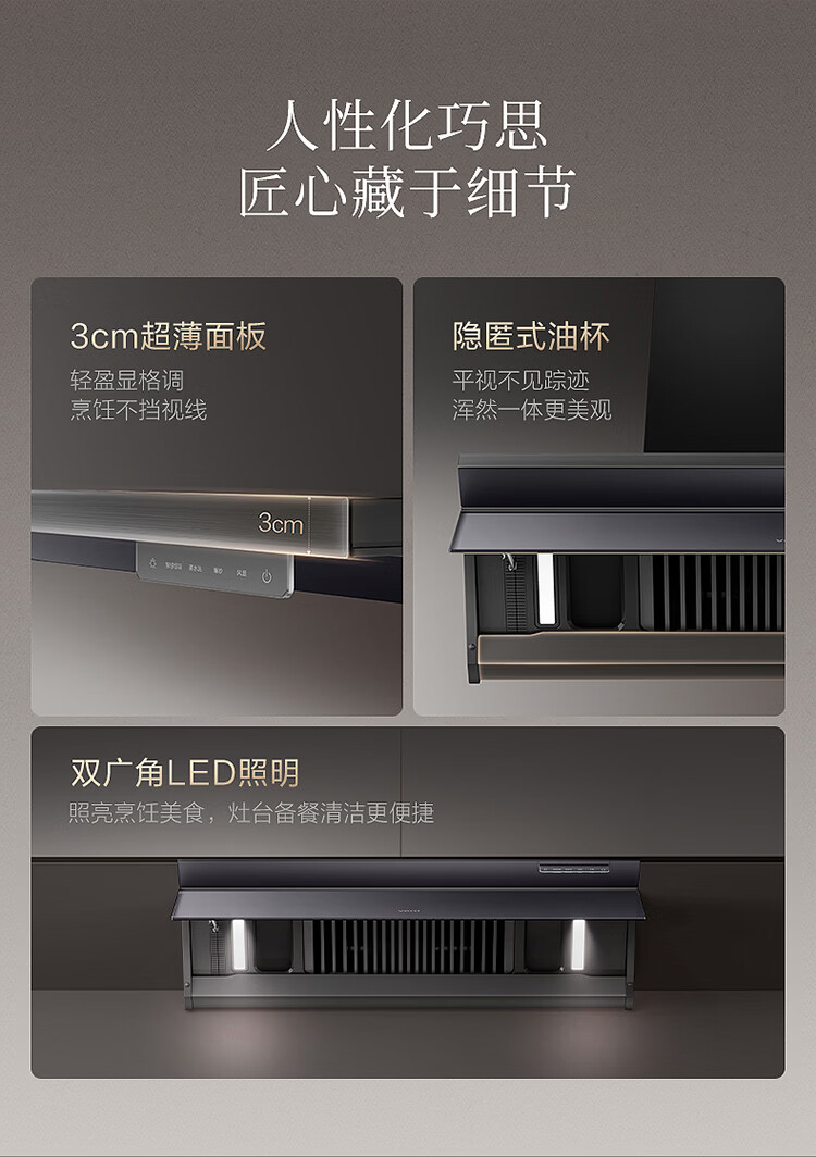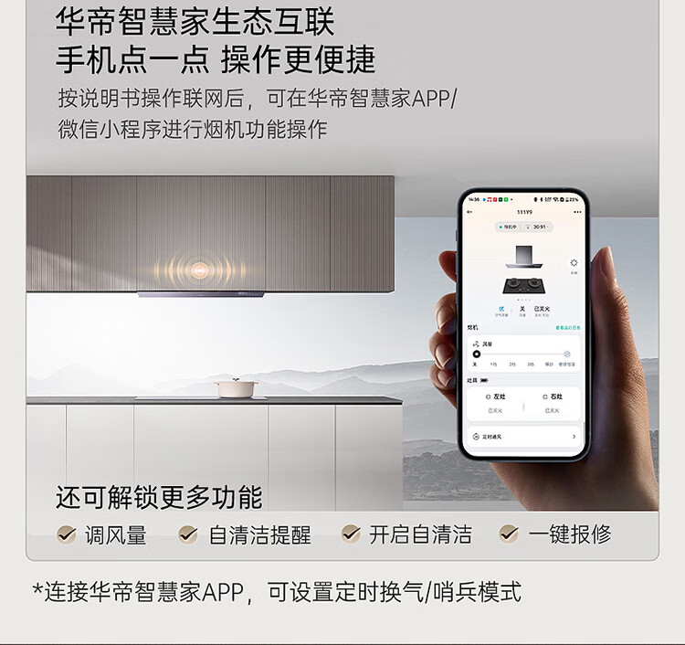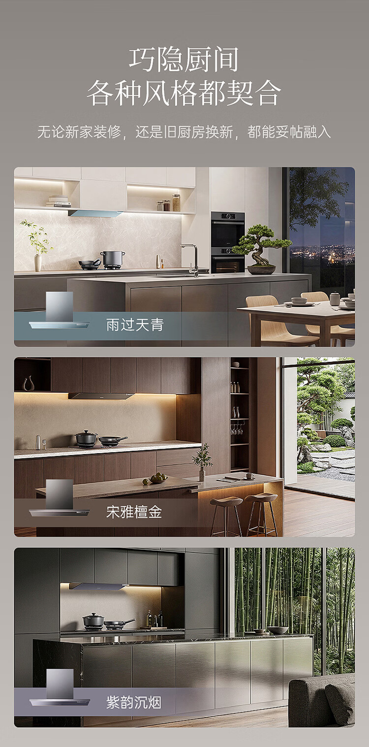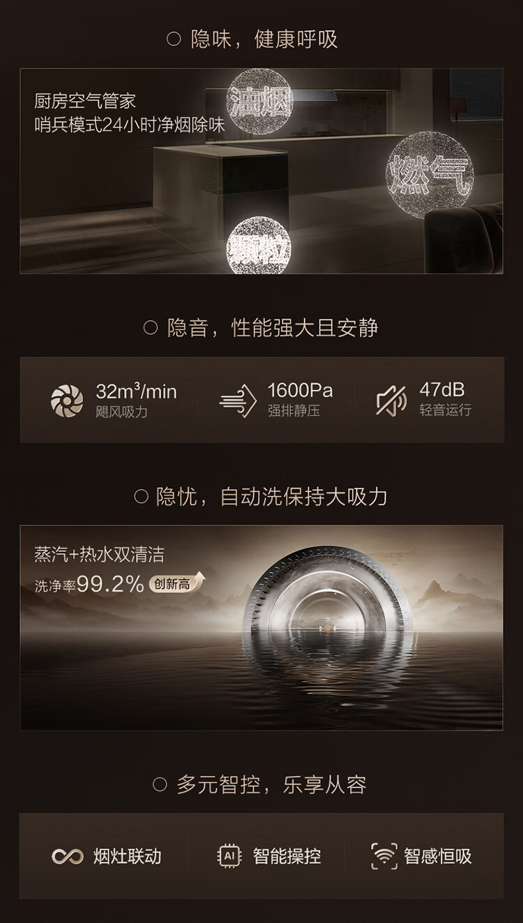华帝(VATTI)【隐系列Y9】张凌赫同款半隐油烟机家用32风量大吸力蒸汽热水洗哨兵模式抽油烟机烟灶联动套装 【星韵灰套装】Y9+318F(韵灰)