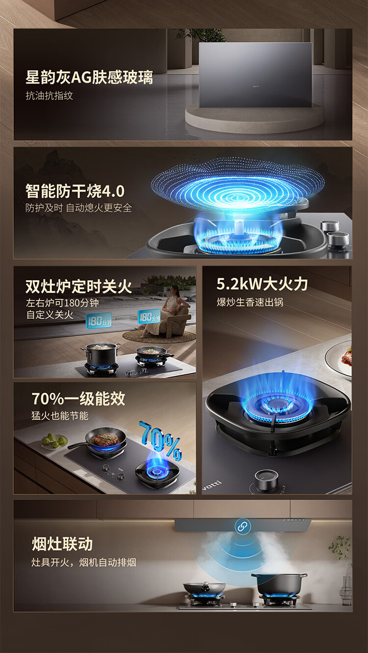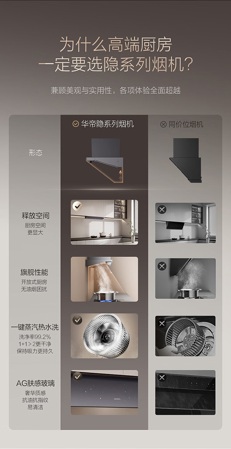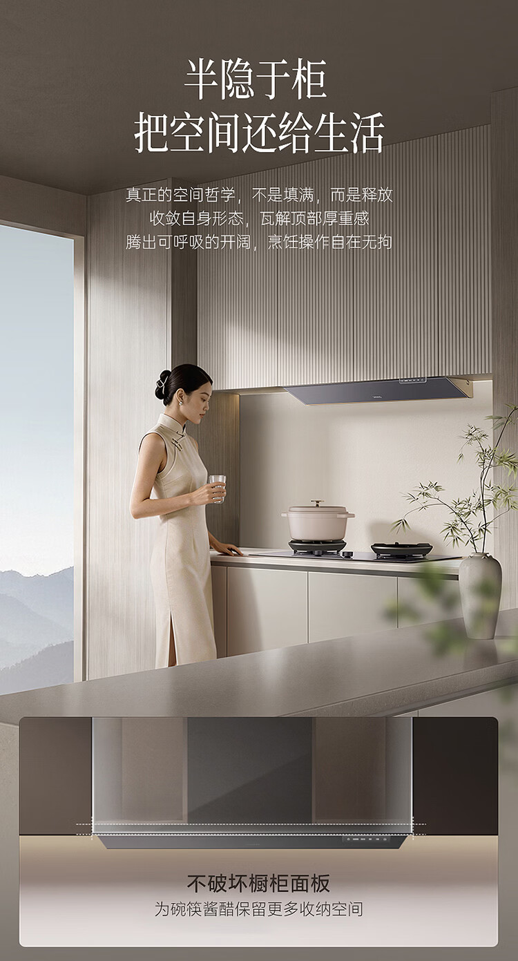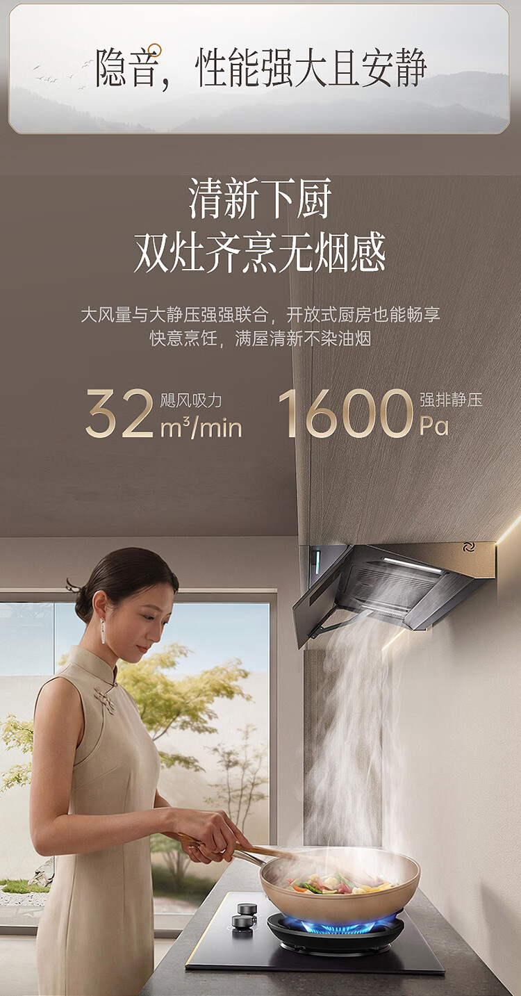 华帝(VATTI)【隐系列Y9】张凌赫同款半隐油烟机家用32风量大吸力蒸汽热水洗哨兵模式抽油烟机烟灶联动套装 【星韵灰套装】Y9+318F(韵灰)