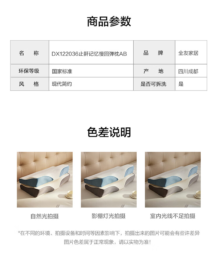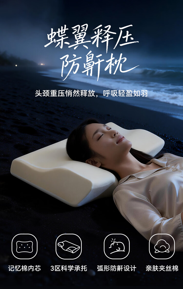 全友家居零压深睡枕分区慢回弹记忆棉枕头护颈枕芯可拆洗睡眠低枕KD 【白灰色】50*30cm蝶翼记忆棉防鼾枕