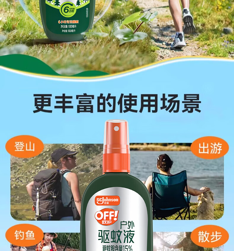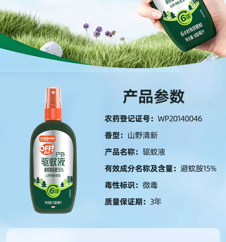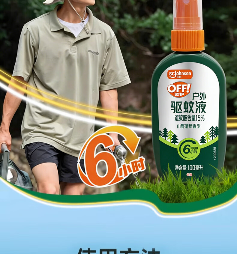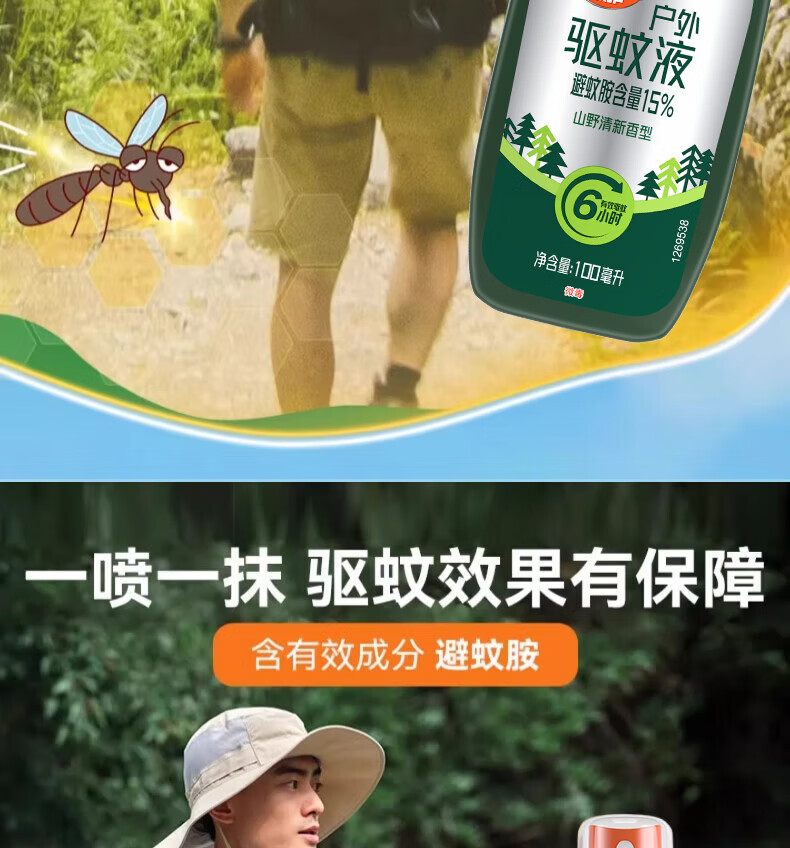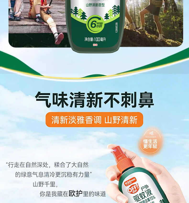 雷达(Raid)欧护15%避蚊胺户外驱蚊喷雾100ml山野清新香型 花露水驱蚊液
