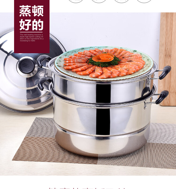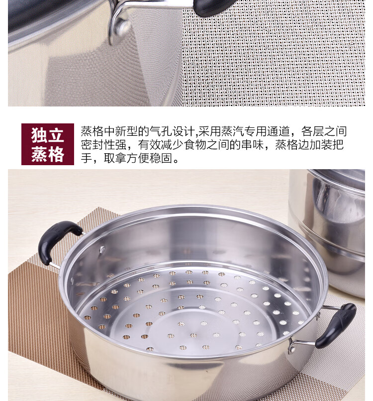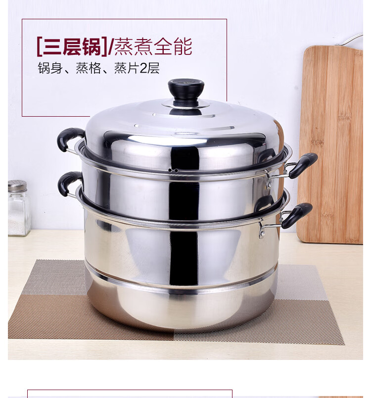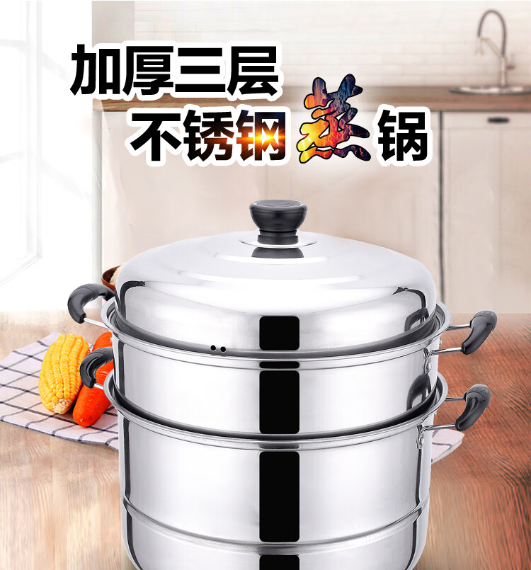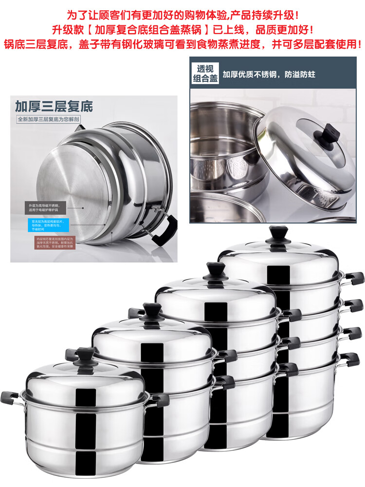 摩洛森蒸锅不锈钢三层加厚蒸笼3层蒸格1层二2层汤锅双层家用电磁炉锅具 二层加厚 26cm 厂家直销