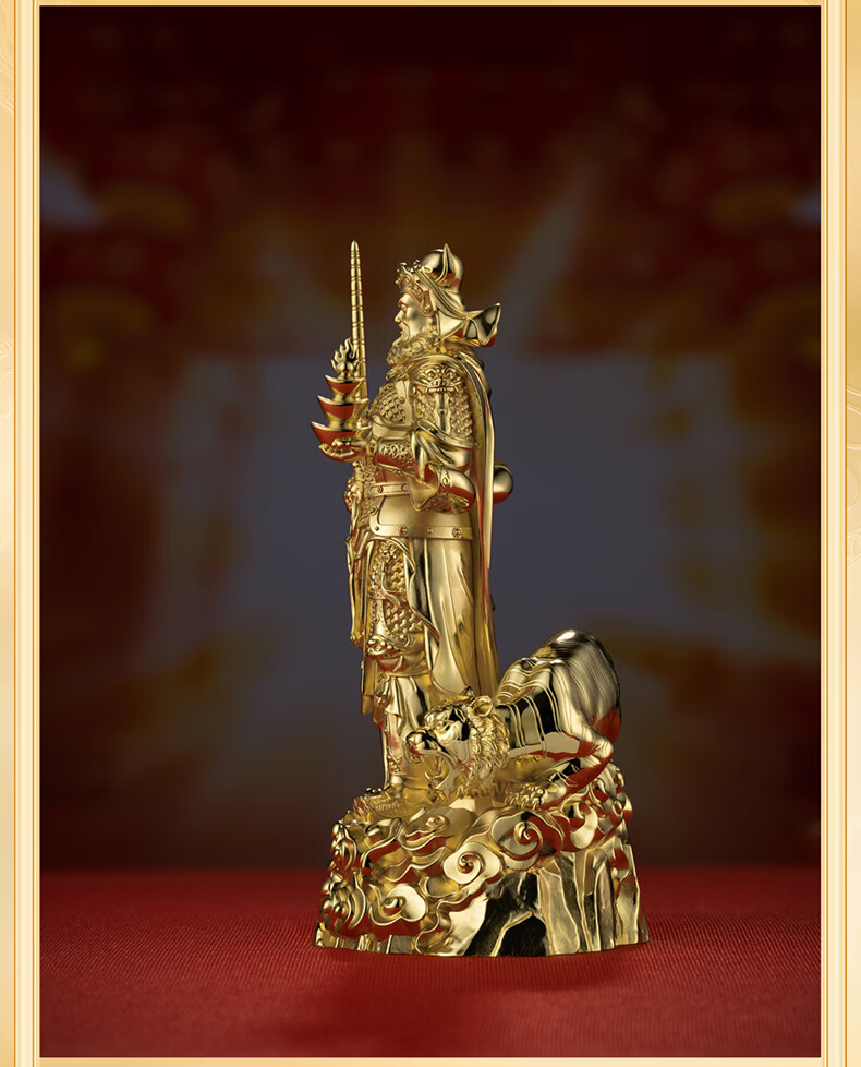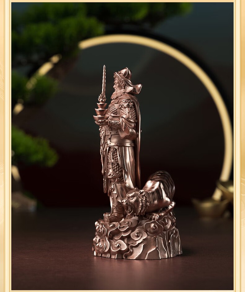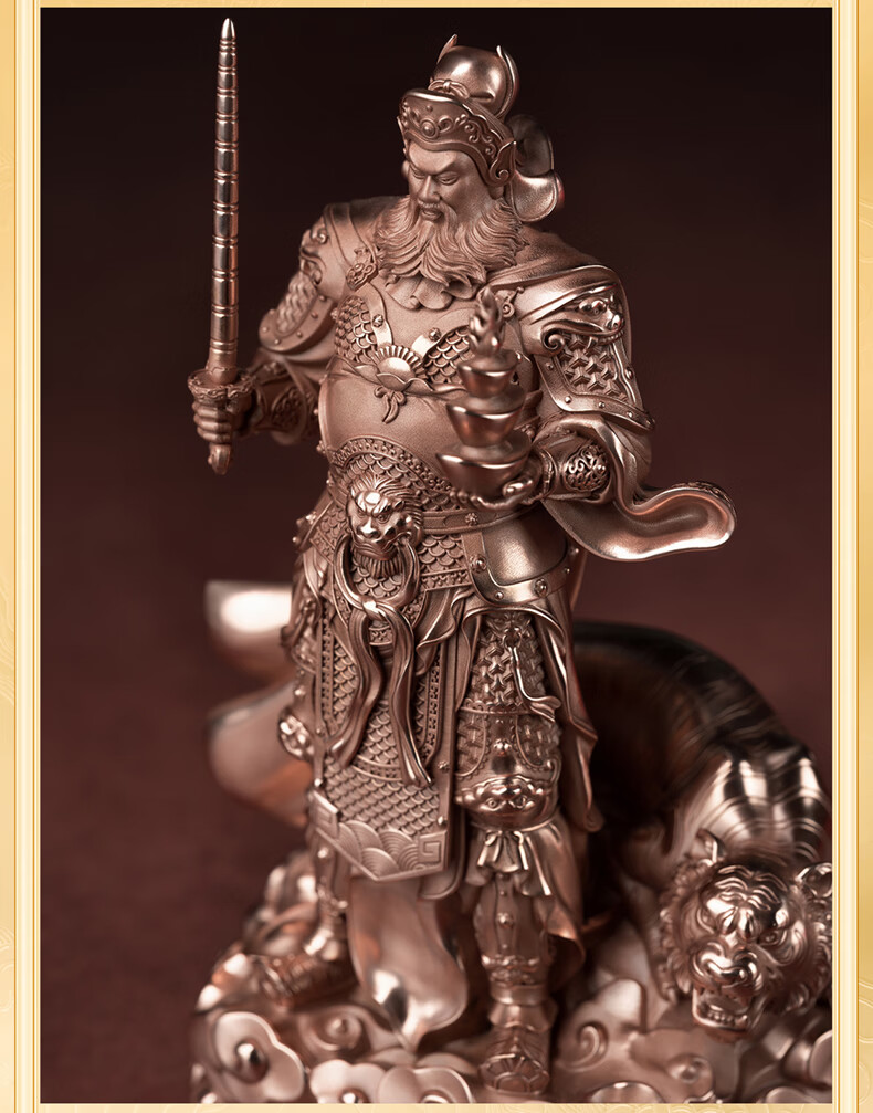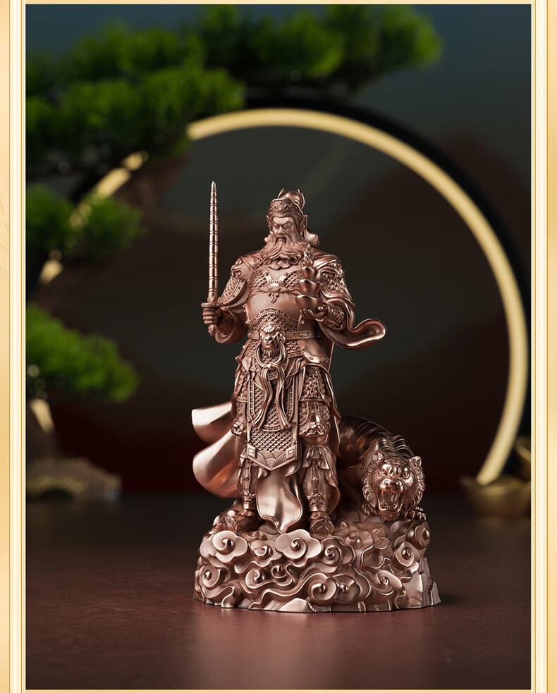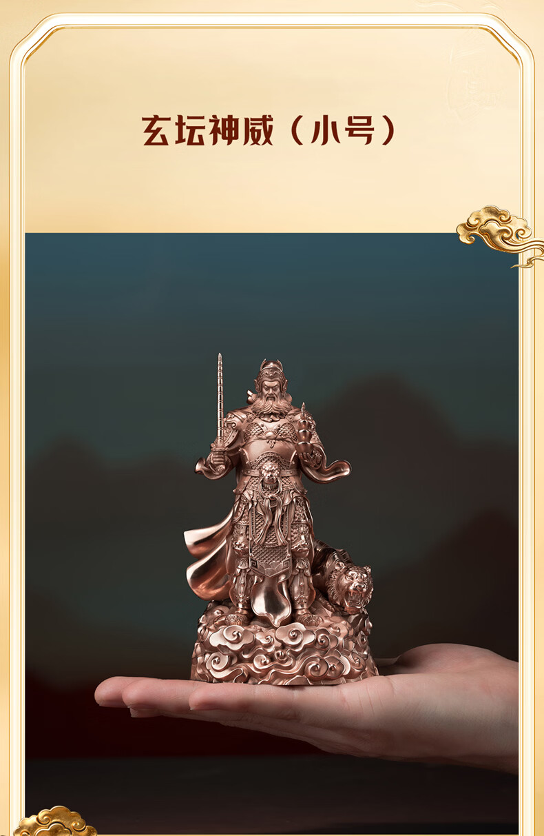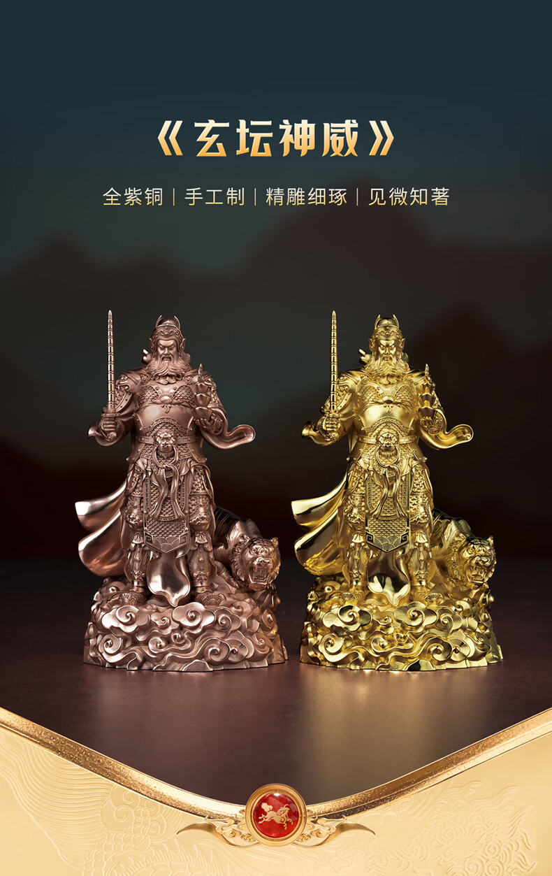 铜师傅见微系列《玄坛神威》武财神赵公明佛像紫铜工艺品摆件 小号镀真金版