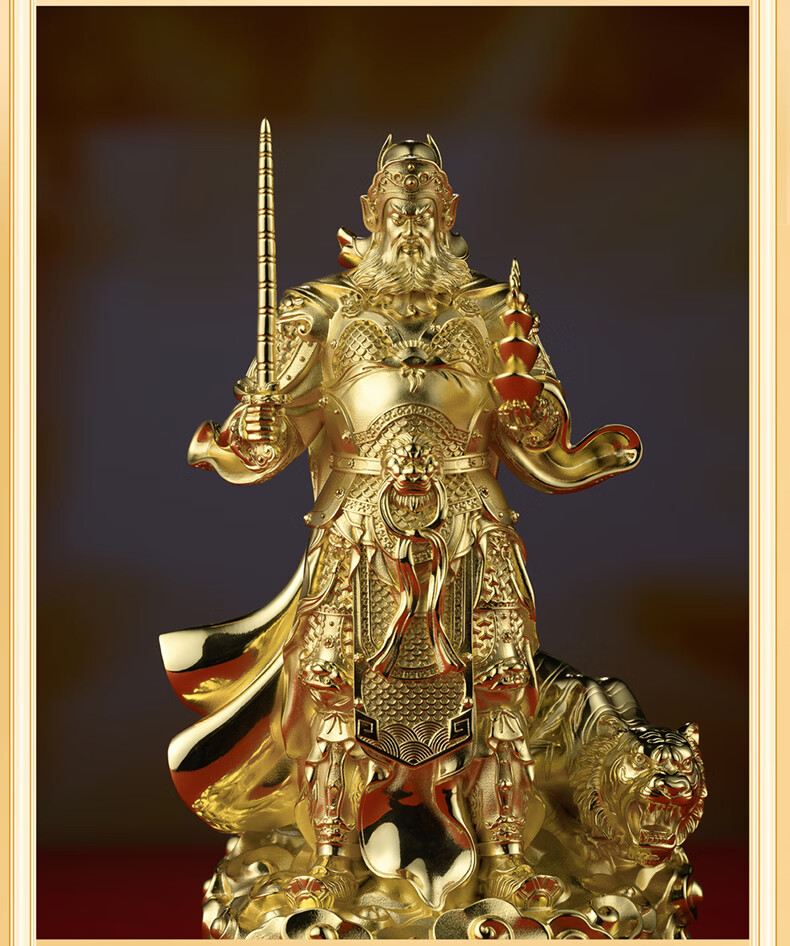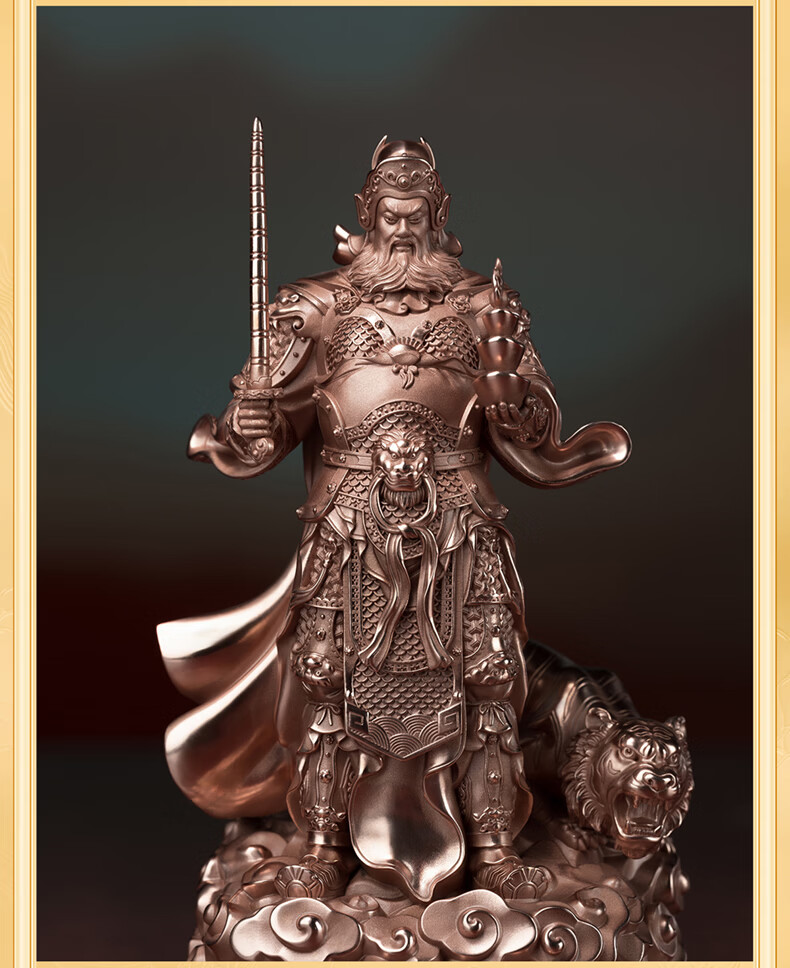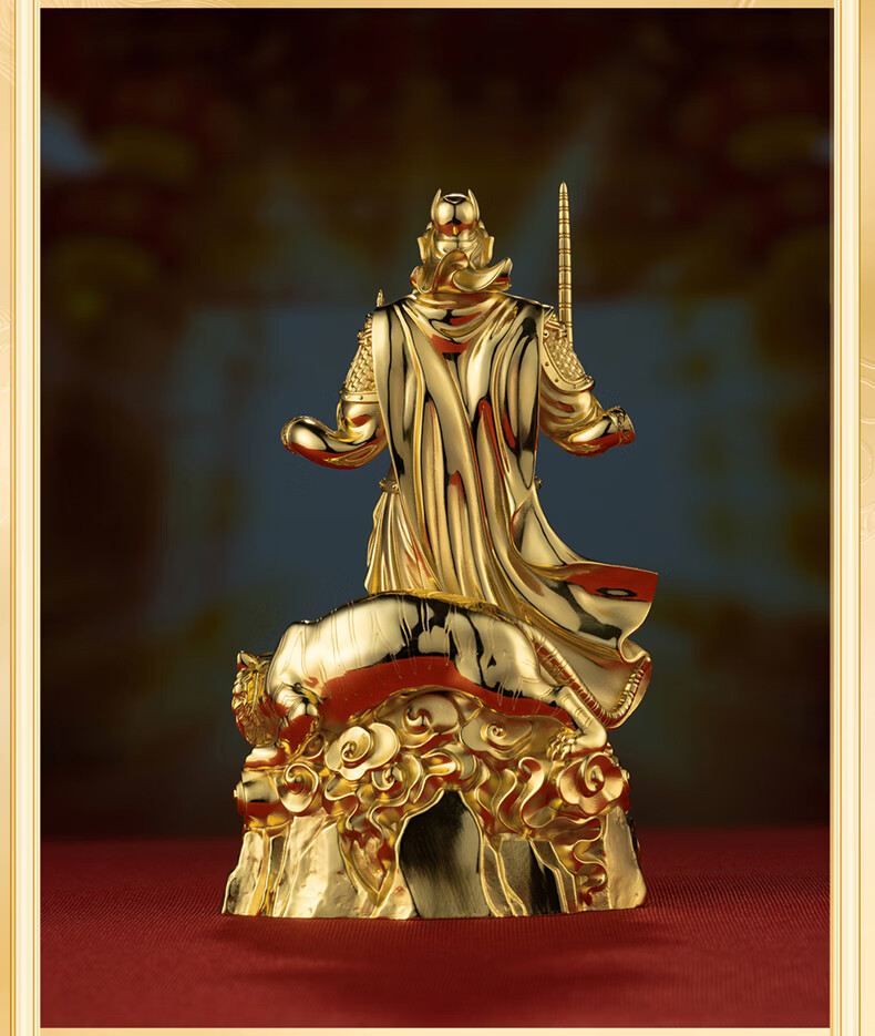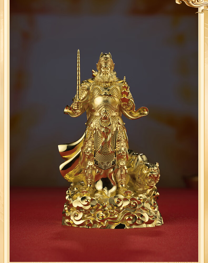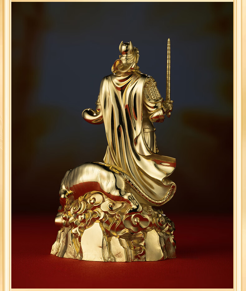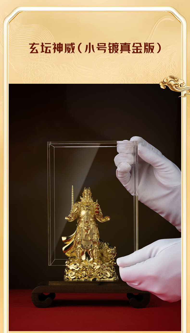 铜师傅见微系列《玄坛神威》武财神赵公明佛像紫铜工艺品摆件 小号镀真金版