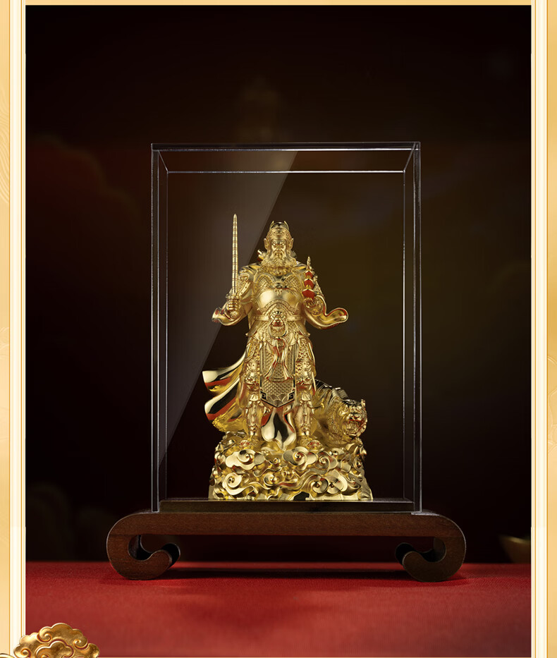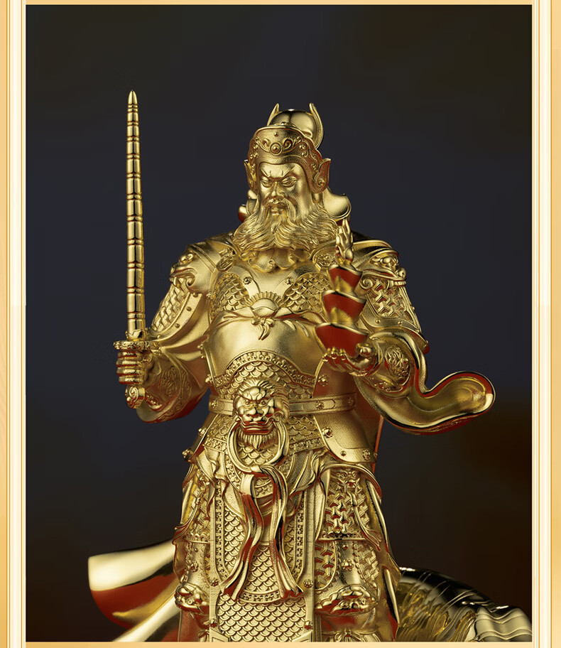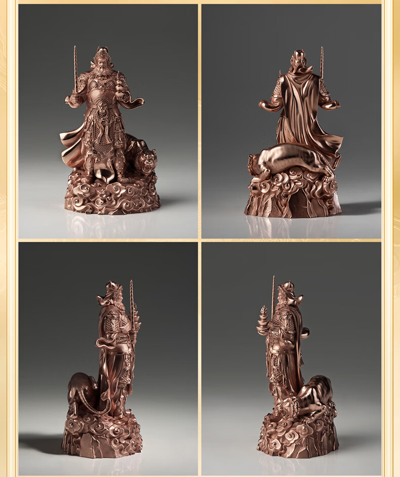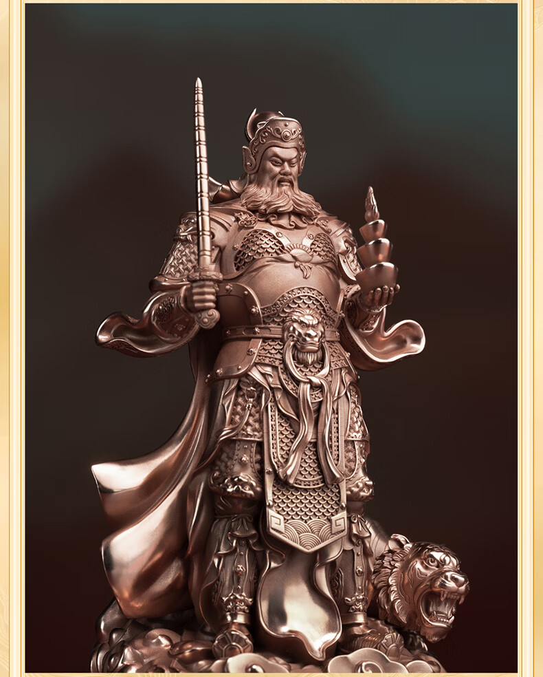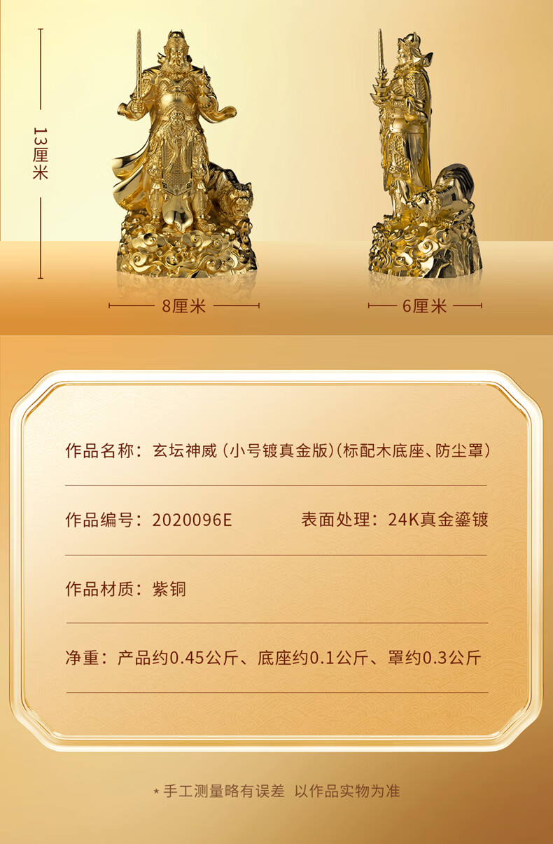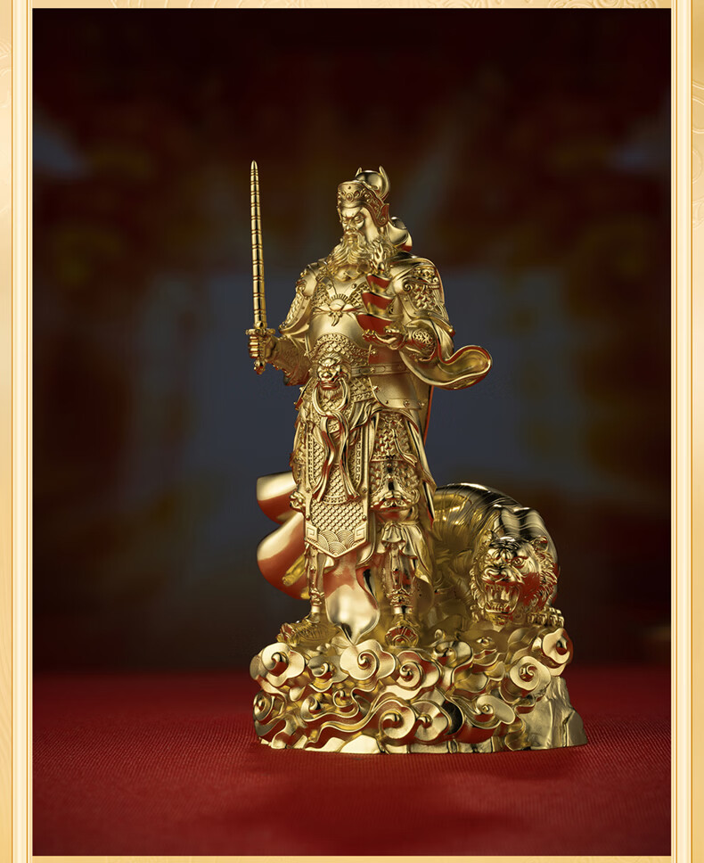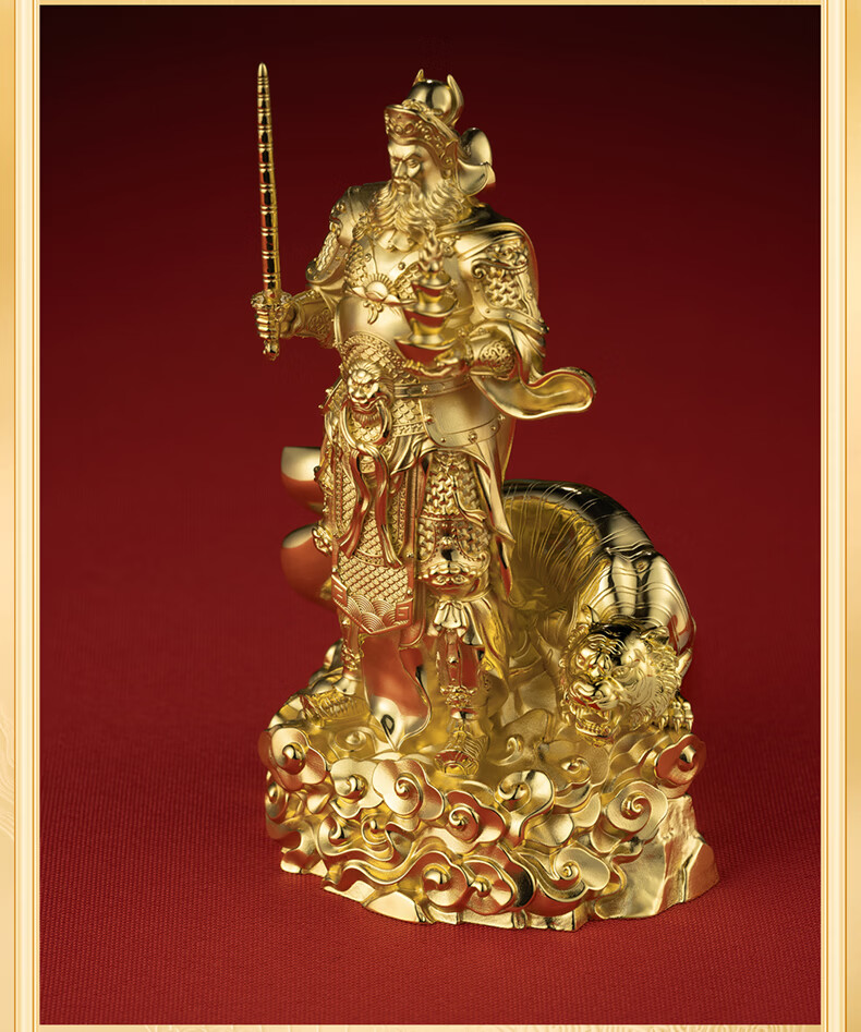铜师傅见微系列《玄坛神威》武财神赵公明佛像紫铜工艺品摆件 小号镀真金版