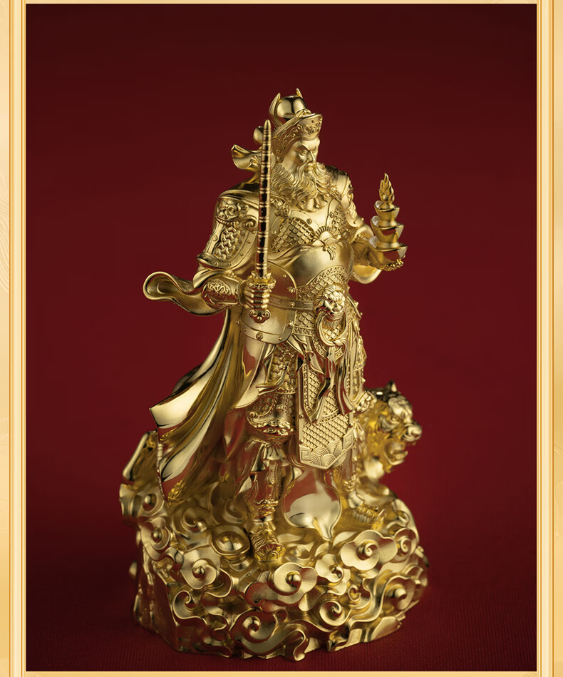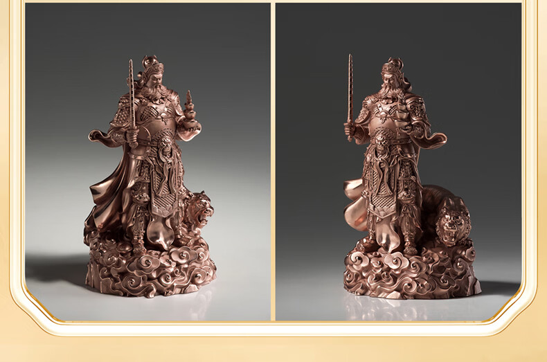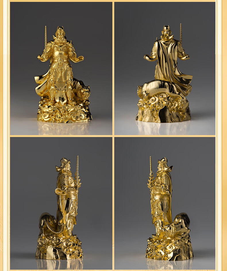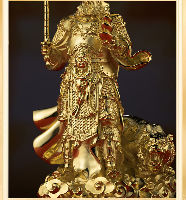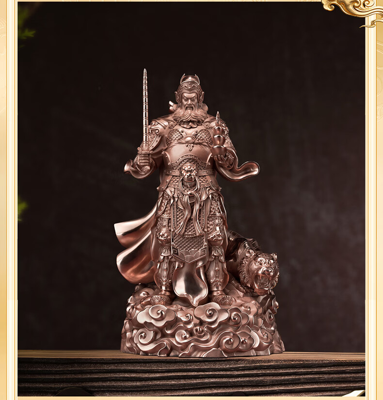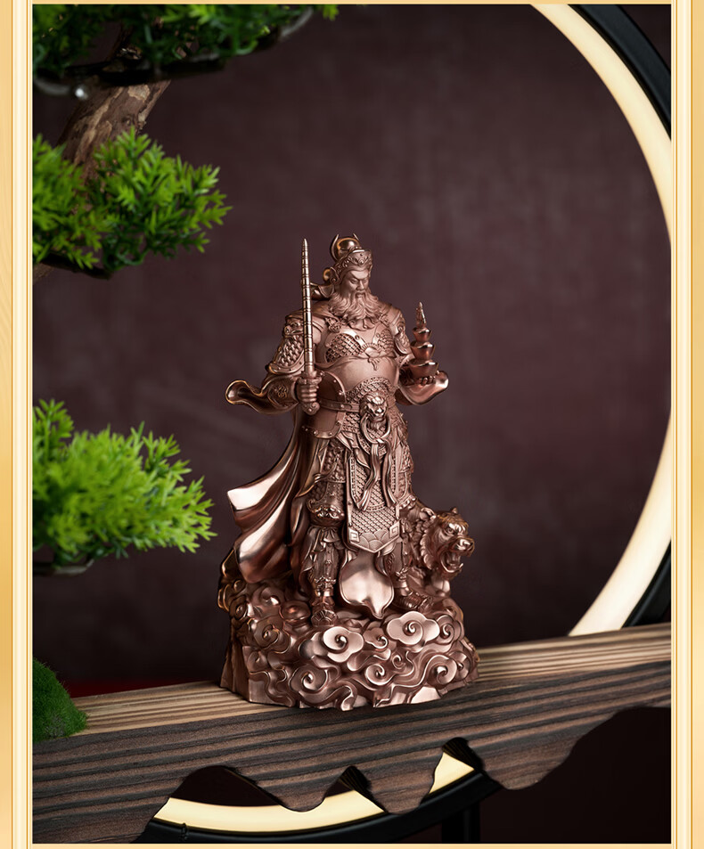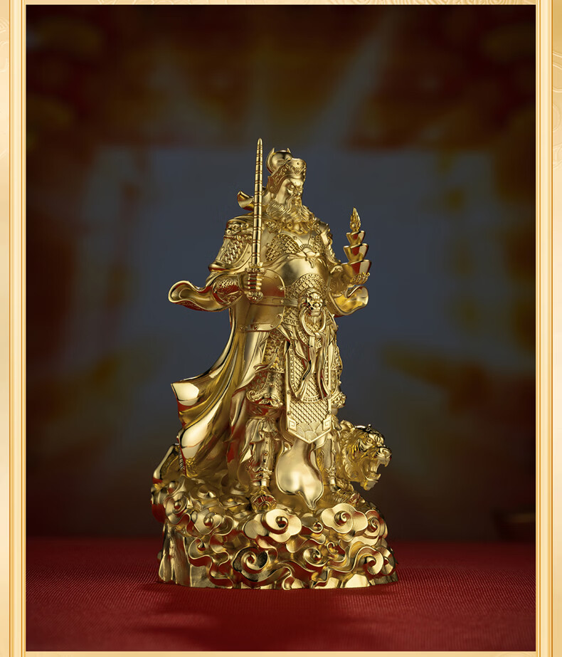 铜师傅见微系列《玄坛神威》武财神赵公明佛像紫铜工艺品摆件 小号镀真金版
